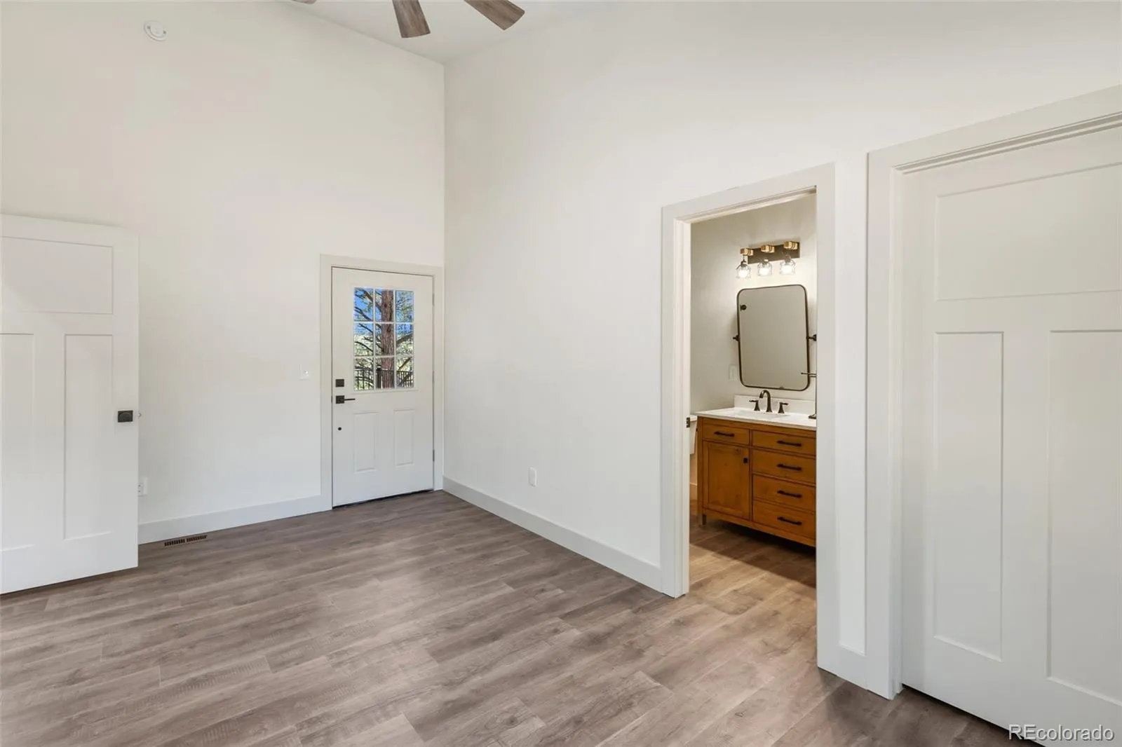 Brand-New modern mountain retreat is nestled behind a grove of trees conveniently located off the paved road at the entrance of the coveted Colorado Mountain Estates Neighborhood. Enter this stucco and stone clad gem with an inviting 9×18 entry that could double as an office space. The vaulted ceiling climbs until it meets the great room’s grand 18’ wall of windows. Adjacent to the great room which features a fireplace, is an ample kitchen featuring Fabuwood cabinets with extended height to allow for additional storage, quartz countertops with a leathered granite island, custom tile backsplash and stainless-steel Whirlpool appliances. The master bedroom features a walk-in closet, ceiling fan, recessed lighting, as well as an en-suite bathroom with a double-vanity and custom-tiled walk-in shower. The great room and the master bedroom share access to the covered patio with tongue and groove ceiling, composite decking and beautiful views of the surrounding area. Off the covered patio is a 200 square foot deck with stairway access to the backyard offering ample space for outside entertainment. Above the covered patio is a roomy loft area that provides additional flexible space to the new owner. The guest bedroom is located on the other side of the house to ensure maximum privacy. The second bathroom is a full bath with bath/shower combination accessible from the bedroom and great room. Check out the nooks and crannies to find a pantry off the kitchen and a closet for a washer and dryer. Full attention has been given to key construction elements including High quality duration shingles, Delta fixtures and premium LVP flooring throughout. The full length crawl space is insulated with a 9 foot ceiling. This beautiful home is perfectly placed on this 1/2-acre lot. With proximity to world class fishing, amazing hiking, four wheeling, skiing, amenities and a gambling town make this the ideal Colorado location! It’s just Beautiful! STRs are permitted in this subdivision.