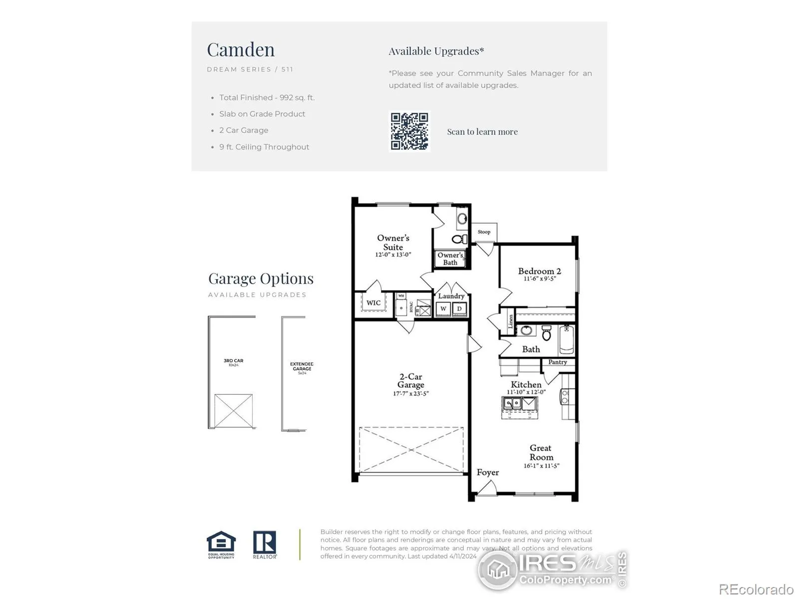 Builder offering $10,000 incentive with use of preferred lender. The Camden is a thoughtfully designed 992 sq ft floor plan, meticulously crafted for attainability. Discover a perfect blend of functionality and comfort in this charming open-concept living space, boasting modern features and a smart layout of two bedrooms and two full baths. HOA includes trash, non-potable water & neighborhood pool! Upgrades – Refrigerator, 42″ Cabinets, Gas Range, LED disc light package, Front landscape, backyard landscape, Cedar privacy fencing,