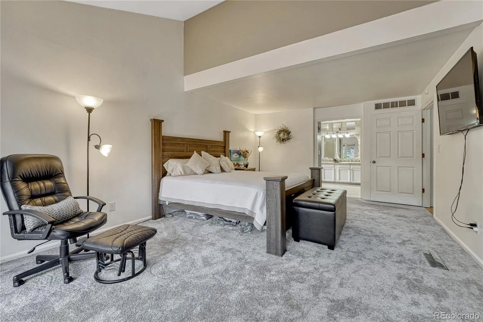 Lovely Smoky Hill neighborhood with beautiful cul-de-sacs, parks and trails. Minutes from The Trails Recreation Center. Hard to find main floor primary bedroom with FIREPLACE! Vaulted ceiling and slider to outdoor patio in private backyard. Ensuite primary bathroom with walk in closet. Entering the home you will be delighted with the bright and sunny interior. Staircase that beautifully turns to second floor. Sunken Living room and a space for formal dining room overlooks the living room. The kitchen has newer appliances. The floors are real wood..and the remainder of the house has new carpet. The upstairs overlooks the family room that has a cozy fireplace and a plumbed wet-bar. The two bedrooms upstairs share a full bath with new flooring. There is a half bath on main floor. The basement is partially finished with a large room that could become a bedroom. The remainder of the basement is unfinished and has so much room for storage. There is a three car garage and enclosed off street parking for three vehicles. Perfect for your trailer to pull your toys. Perfectly located for a quick commute to I25 or E470. Minutes to Southlands Shopping Center. Cherry Creek Schools. Smoky Hill is very desirable that it has a very well run homeowners association that charges an annual fee of $66.50. There are social events, family activities, pool and courts to enjoy within this wonderful City of Centennial community. Must see!