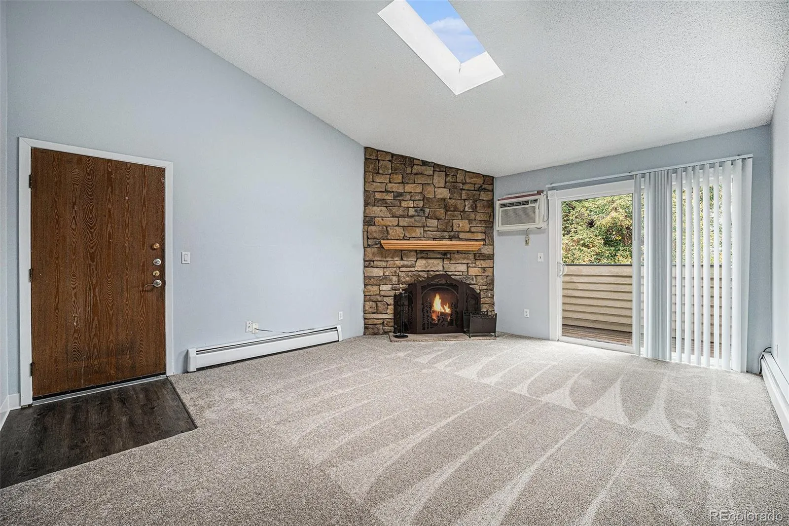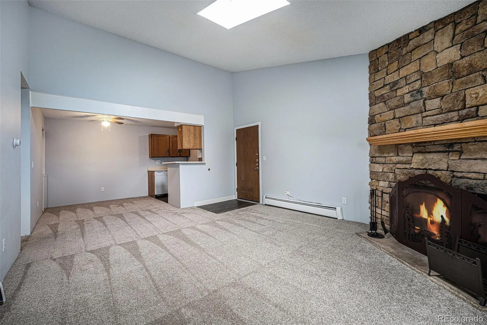 Welcome to this one bedroom, one bathroom condo in Oak Park gated community. 3rd floor unit. One reserved parking spot #478 and tons of amenities! Brand new carpet, brand new vinyl flooring in kitchen and full bathroom, brand new paint, brand new microwave and dishwasher! Don’t miss the cozy wood burning fireplace in the spacious family room with vaulted ceiling and skylight giving tons of natural light and balcony as well! Primary bedroom has walk in closet. Stackable washer and dryer in the unit and comes with the home. Amenities include pool, volleyball court, clubhouse, picnic pavilion and playground area. Lower HOA fees and includes exterior and grounds maintenance, trash, sewer, water and other amenities. Close to light rail, shops, restaurants, golf course, highland canal and more! Don’t miss this one!