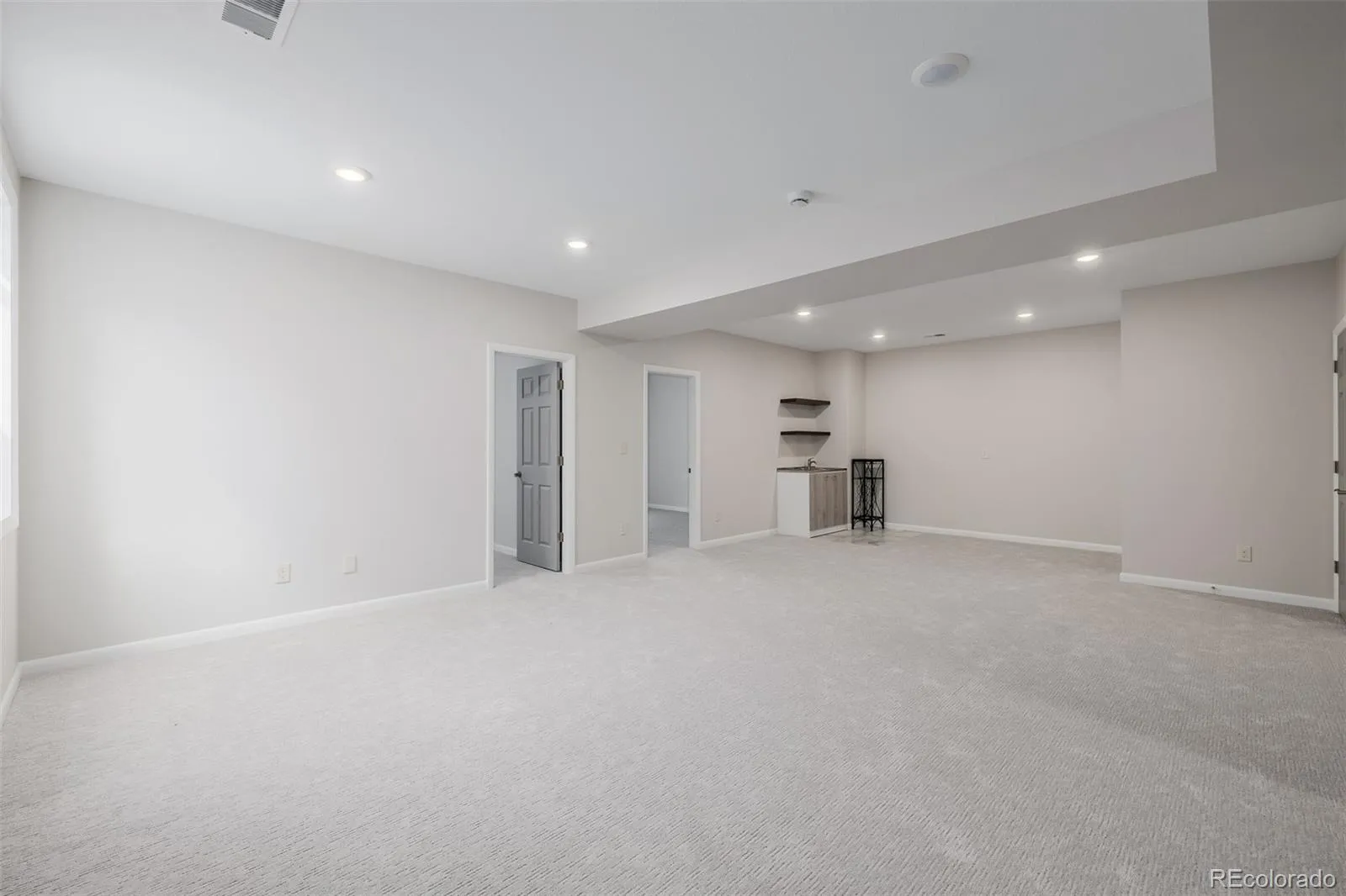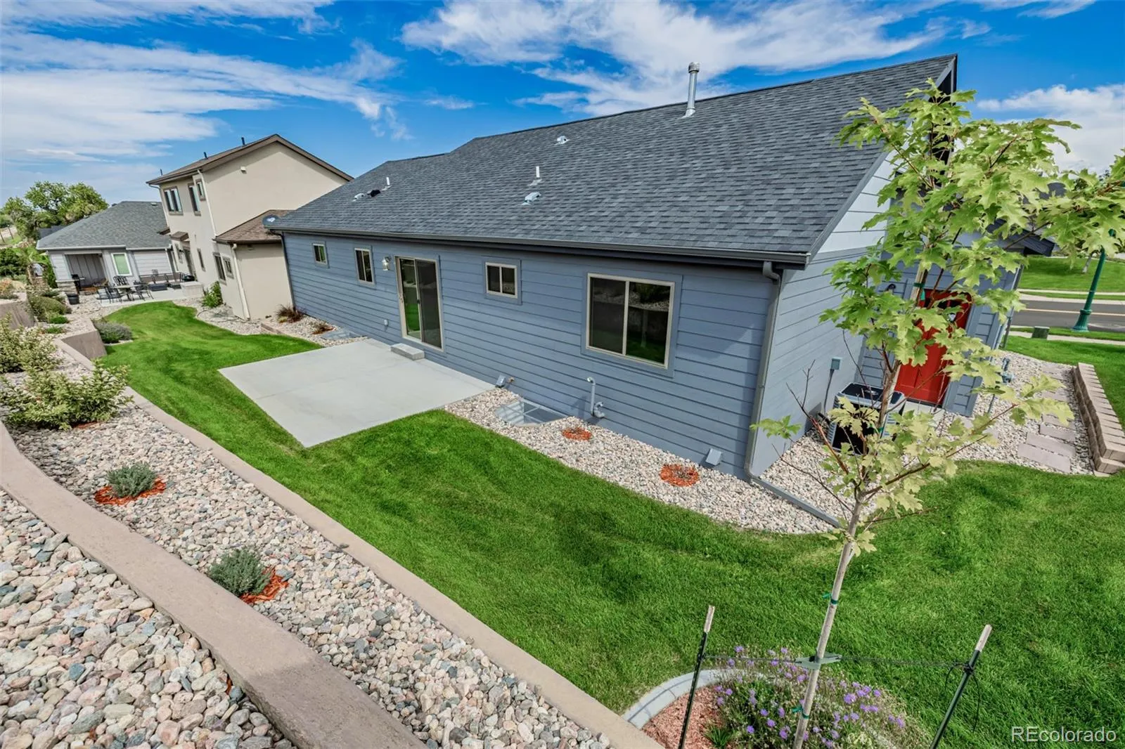 Discover a rare blend of elegance and ease in this thoughtfully designed custom patio home. Nestled in a low-maintenance community where snow removal, lawn care, and trash services are handled for you, this home is perfect for those seeking both comfort and convenience. With 5 generously sized bedrooms and 4 stylish bathrooms, the layout provides exceptional flexibility—ideal for multi-generational living, frequent guests, or simply spreading out in style. The main level includes a guest room and one of two luxurious primary suites, complete with dual vanities, a large walk-in shower, and a spacious closet designed for organization. At the heart of the home is a chef-inspired kitchen, outfitted with premium Woodmark cabinetry, sleek quartz countertops, and a 7-foot island that flows seamlessly into the expansive living and dining areas—perfect for entertaining or quiet nights in. The finished basement adds even more living space with a large family room, custom wet bar, open shelving, and the second primary suite, along with two additional bedrooms. Whether you’re hosting out-of-town visitors or creating the ultimate home office or hobby space, there’s room for it all. Outside, enjoy a fully landscaped yard framed by a three-tiered retaining wall, in-ground irrigation, and mature plantings including lilac, pear, and red oak trees. The oversized two-car garage includes a built-in sink and ample storage space—ideal for projects and outdoor gear. Complete with James Hardie exterior siding, this newly constructed 2024 home is as durable as it is beautiful. Located minutes from Poudre River Trail and Boomerang Links Golf Course, the lifestyle here is as exceptional as the home itself.