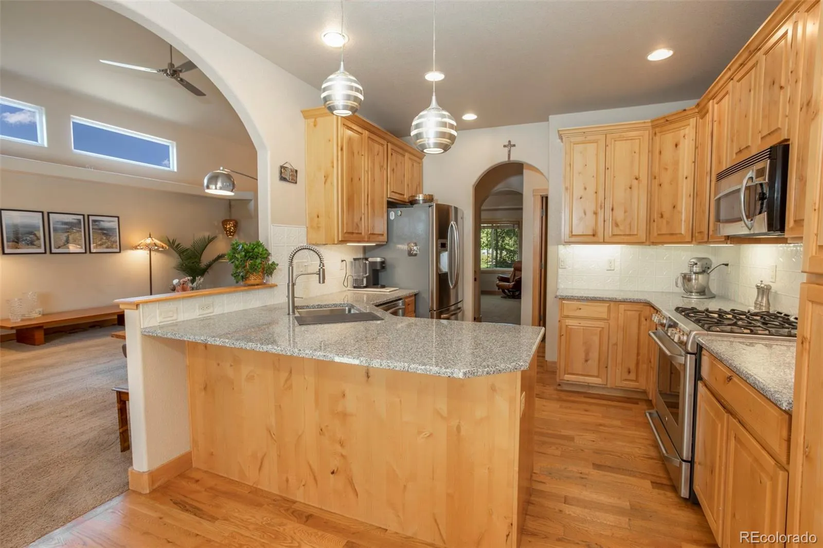 Nestled in the highly desirable Poudre Overlook subdivision, & a quick 10-minute ride to Horsetooth Reservoir, this well-maintained home with four bedrooms, four bathrooms provides a stylish yet comfortable haven. Throughout the main level, you’ll find vaulted 16-foot ceilings and large south-facing windows, creating a bright and airy ambiance. The large eat-in gourmet kitchen showcases GE Profile appliances, granite countertops, farmhouse sink with gooseneck faucet, freshly painted walls, ample counter space and plentiful knotty Alder cabinets and real Hardwood oak floors. Main-level Primary Suite with bay windows overlooking the lush backyard, and luxurious 5-piece master bathroom with onyx tile, dual vanity, and oversized Jacuzzi tub — provide a private, relaxing retreat. Upstairs, three more bedrooms await, also freshly painted. The finished basement offers an entertainer’s dream — real hardwood floors, kitchen/bar (granite countertops, dishwasher, cabinets, sink & fridge/freezer) plus a rec room, family room, two hobby rooms, a 3/4 bath, and an area currently used as a Gym. New Class 4 roof in 2018 with transferable warranty. Fully-fenced backyard features a patio and professionally landscaped yard & side yard, featuring a storage shed, exterior door to the garage, and functions as a lawncare storage or even a dog run. The 5-car tandem RV garage is a rare gem in this area — plenty of room for a workshop, second-level overhead storage & still enough room for cars, RV and a boat with an 11 foot High Door. Enjoy easy access to outdoor adventures, with Reservoir Ridge Trailhead three houses away, and the great Poudre River, including the bicycle trail, almost at your doorstep. Bicycle ride to Old Town Fort Collins, or nearby towns Laporte or Bellevue. To top it all off this home sits in unincorporated Larimer County, just outside city limits! Come take a look today; homes like this do not come up on the market very often. More info and pics at 3075Headwater.com