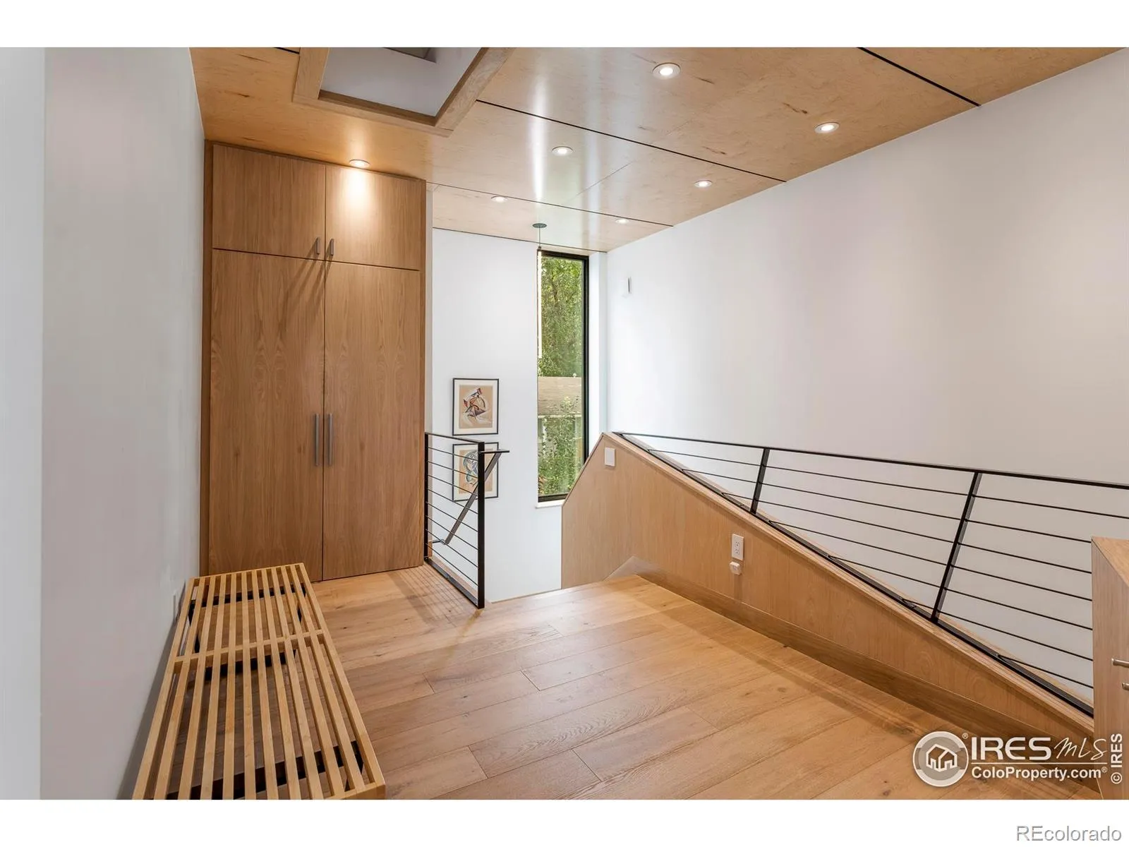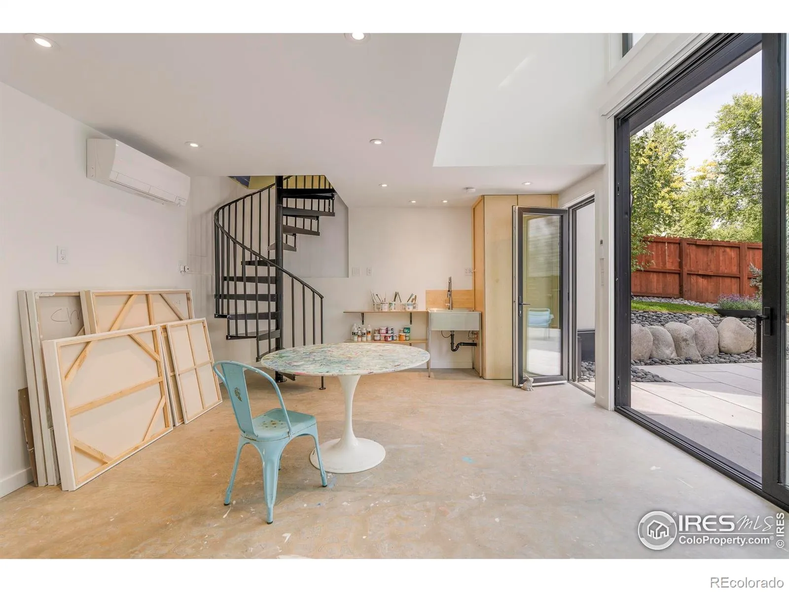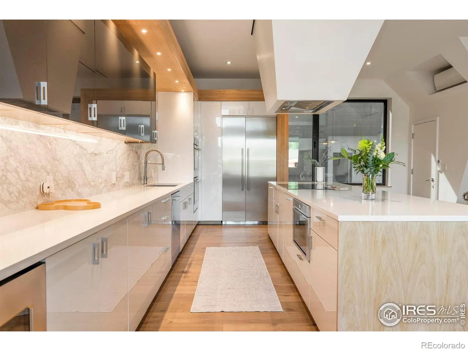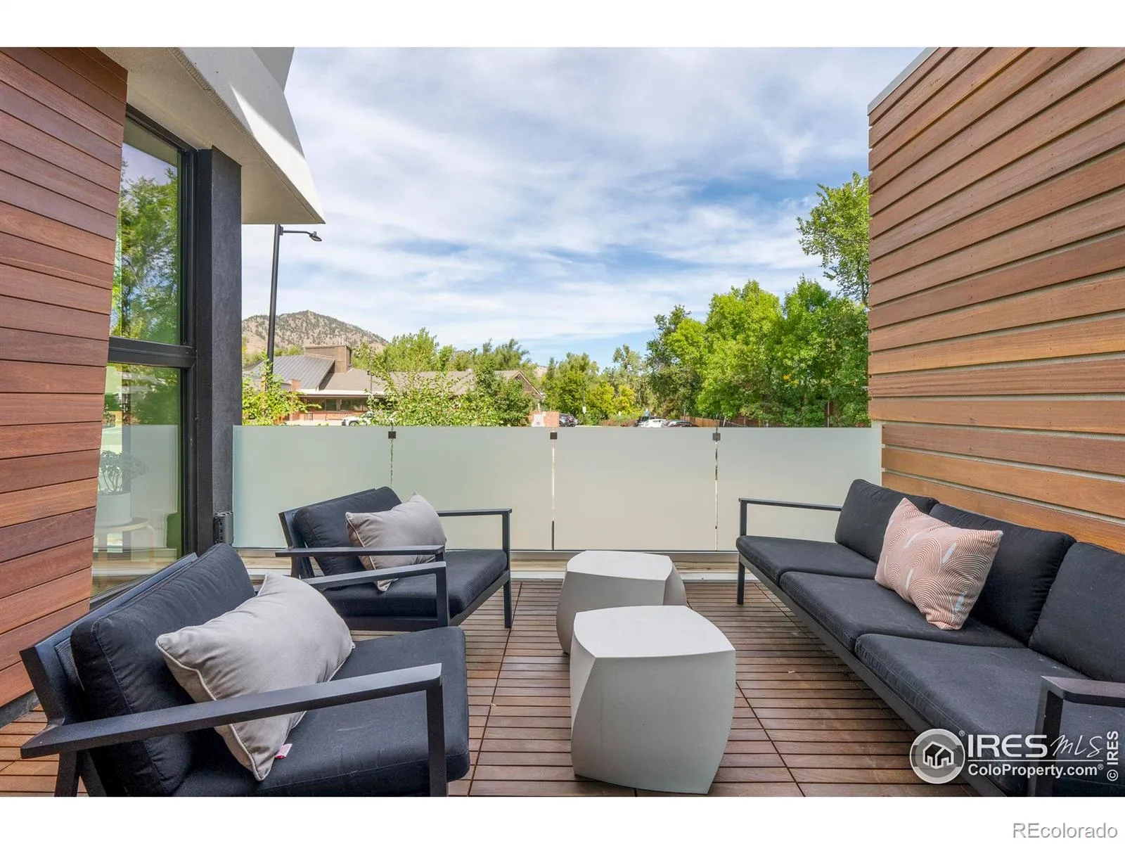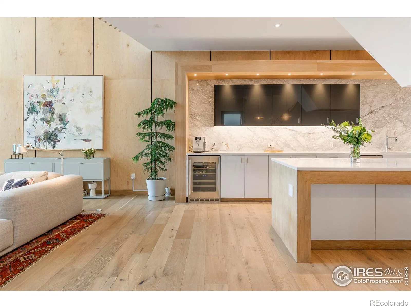 A vision of one of Downtown Boulder’s most striking achievements in design and sustainability, Neve House redefines modern living. Crafted to Passive House standards and built for net-positive energy performance, this residence is both a sculptural work of architecture and a regenerative living environment. Walls of glass, soaring 20-foot ceilings and bold geometric windows immerse the interiors in natural light while framing mountain views as ever-changing works of art. A dramatic maple accent wall rises through the living room, complemented by custom millwork and refined finishes throughout. The second-level primary suite offers a sanctuary of its own with dual private balconies, a spa-like five-piece bath and a spacious walk-in closet. An additional upper level bedroom, expansive decks and thoughtful indoor-outdoor connections provide balance between retreat and gathering. A newly built, architect-designed detached art studio in the backyard offers increased flexibility for daytime or guest use, with a main level living area opening to a private patio and upper level loft with a 3/4 bathroom. The oversized 2-car garage has been fully customized with extensive storage racks for tools + gear, a built-in workbench with cabinetry, a home gym, wine fridge, storage closet, epoxy flooring and EV charging. This turnkey property offers its residents a true, modern oasis.