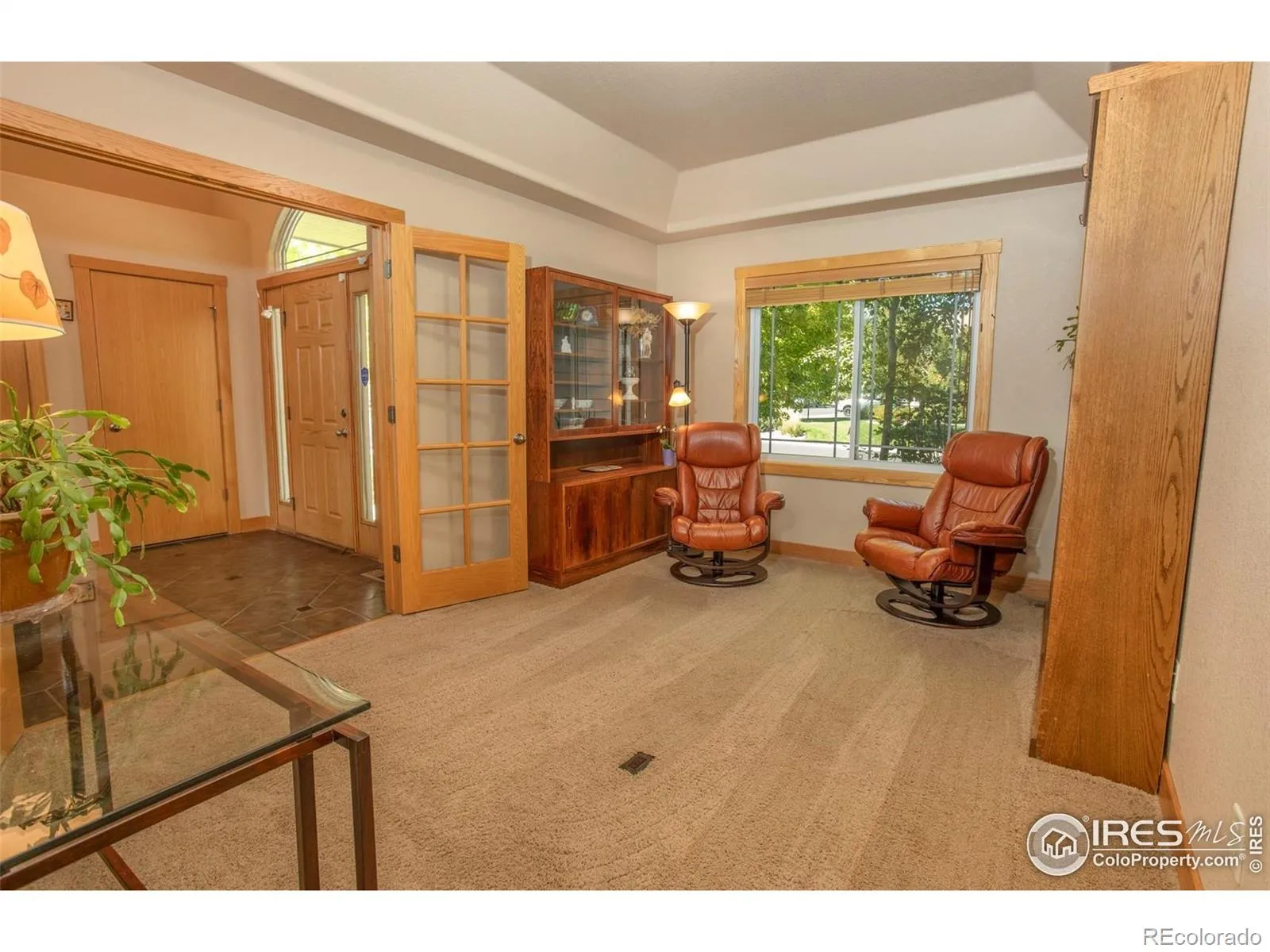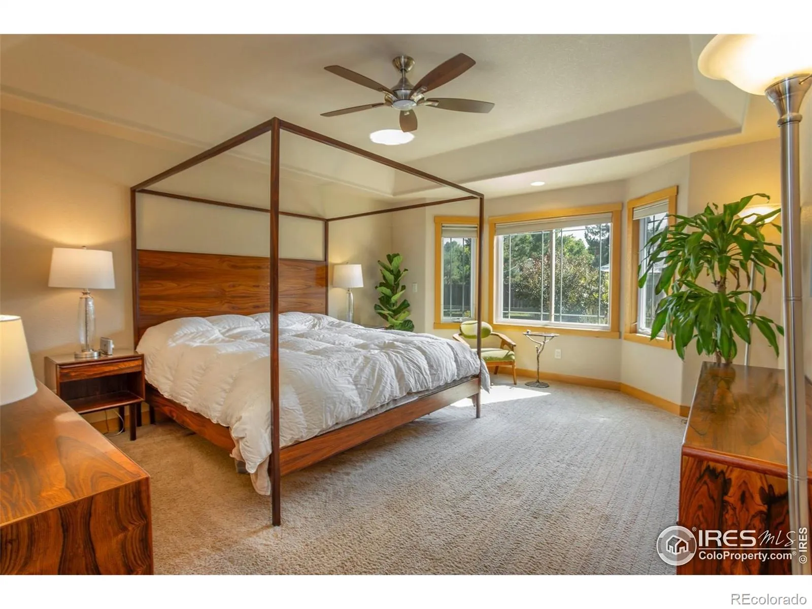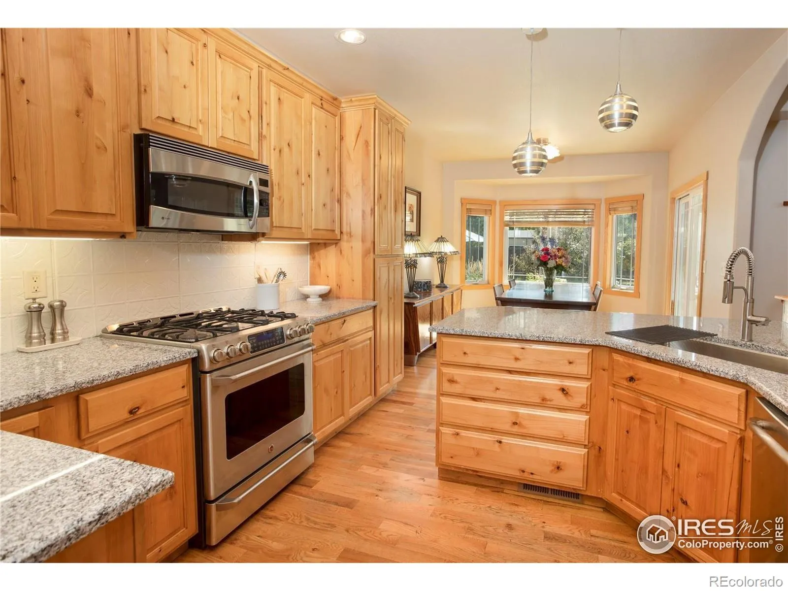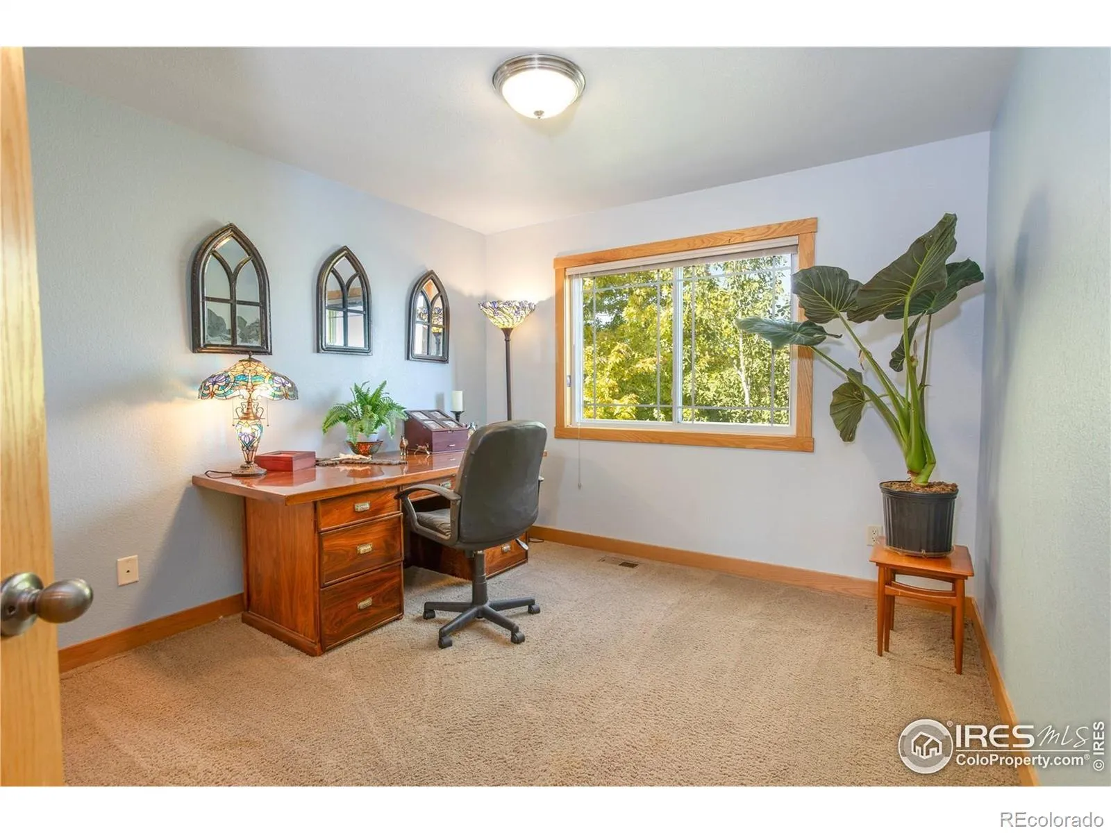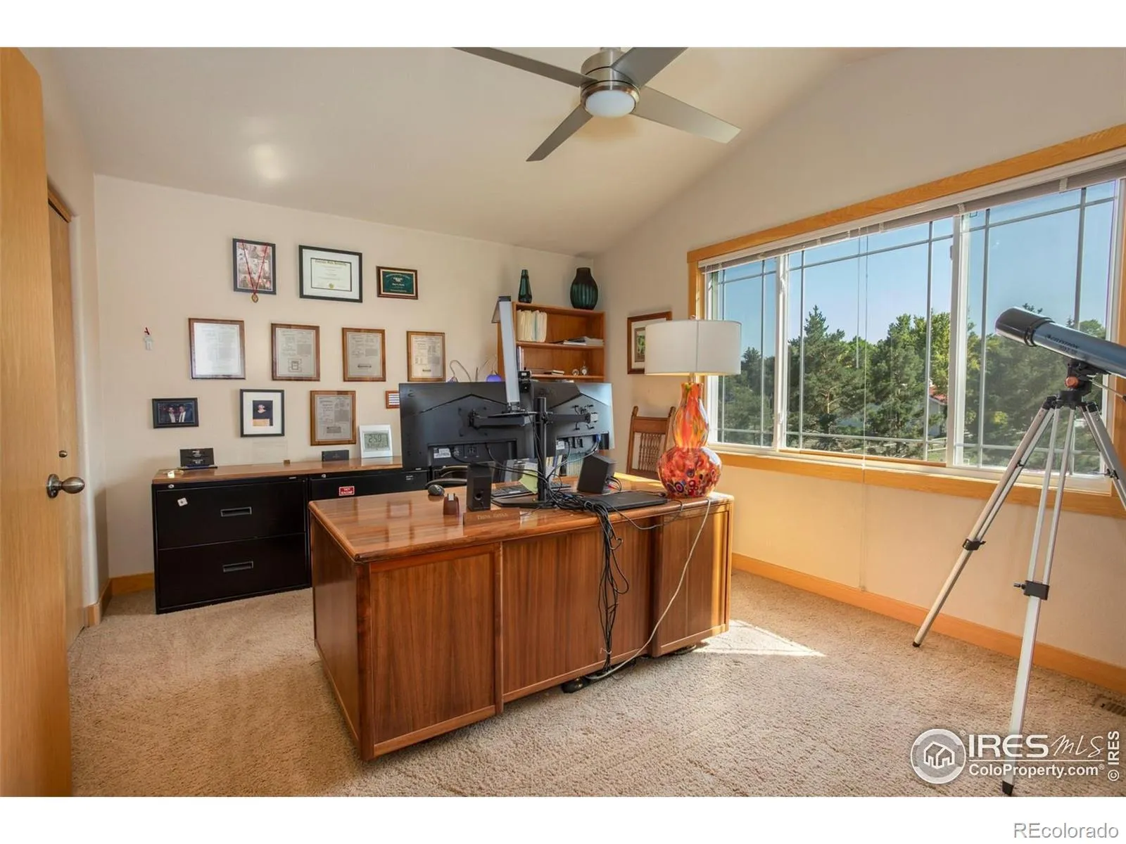 Nestled in the highly desirable Poudre Overlook subdivision, & a quick 10-minute ride to Horsetooth Reservoir, this well-maintained home with four bedrooms, four bathrooms provides a stylish yet comfortable haven. Throughout the main level, you’ll find vaulted 16-foot ceilings and large south-facing windows, creating a bright and airy ambiance. The large eat-in gourmet kitchen showcases GE Profile appliances, granite countertops, farmhouse sink with gooseneck faucet, freshly painted walls, ample counter space and plentiful knotty Alder cabinets and real Hardwood oak floors. Main-level Primary Suite with bay windows overlooking the lush backyard, and luxurious 5-piece master bathroom with onyx tile, dual vanity, and oversized Jacuzzi tub — provide a private, relaxing retreat. Upstairs, three more bedrooms await, also freshly painted. The finished basement offers an entertainer’s dream — real hardwood floors, kitchen/bar (granite countertops, dishwasher, cabinets, sink & fridge/freezer) plus a rec room, family room, two hobby rooms, a 3/4 bath, and an area currently used as a Gym. New Class 4 roof in 2018 with transferable warranty. Fully-fenced backyard features a patio and professionally landscaped yard & side yard, featuring a storage shed, exterior door to the garage, and functions as a lawncare storage or even a dog run. The 5-car tandem RV garage is a rare gem in this area — plenty of room for a workshop, second-level overhead storage & still enough room for cars, RV and a boat. Enjoy easy access to outdoor adventures, with Reservoir Ridge Trailhead three houses away, and the great Poudre River, including the bicycle trail, almost at your doorstep. Bicycle ride to Old Town Fort Collins, or nearby towns Laporte or Bellevue. To top it all off this home sits in unincorporated Larimer County, just outside city limits! Come take a look today; homes like this do not come up on the market very often.