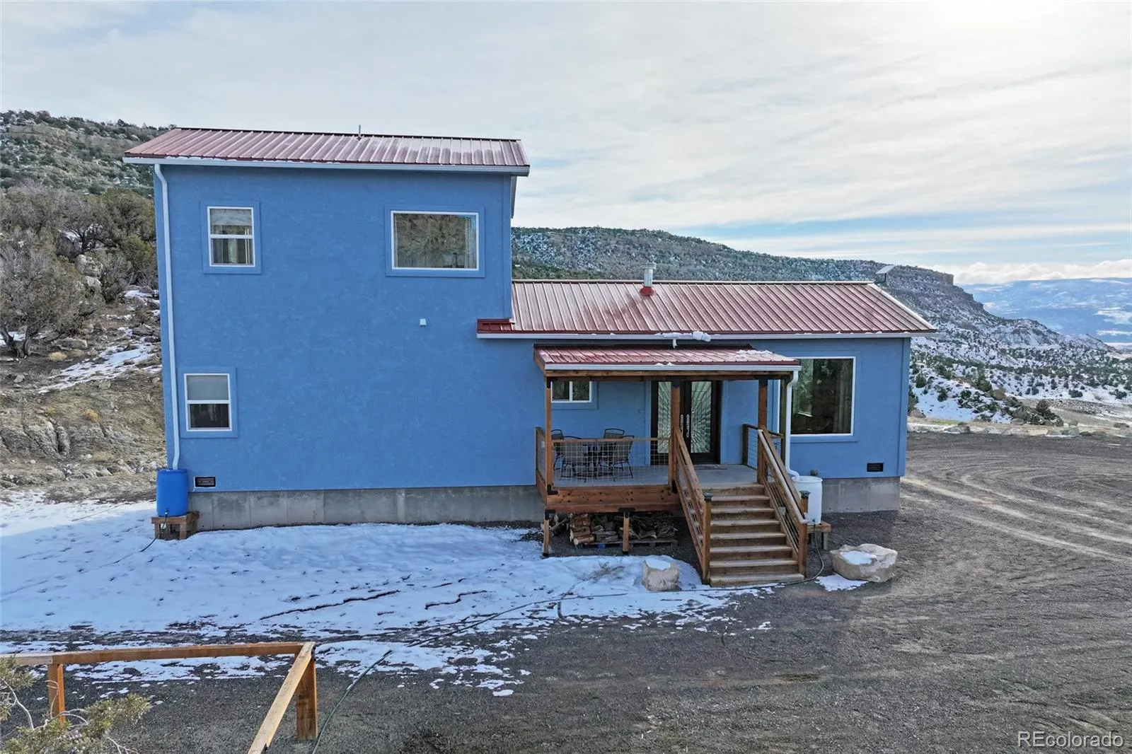 Stunning 2173 sq ft home built in 2020 on 40.16 acres bordering BLM (3,000 acres of public land) on the north and east side for sale in Mesa. Gorgeous 2 story, 2 bedroom, 1 bath home amid natural terrain grasses, rock and cedar trees. Step into the open concept area with vaulted ceilings, engineered hardwood floors, large windows with natural light and magnificent views of Powderhorn Ski Resort and Grand Mesa National Forest.Remote controlled ceiling fans, energy efficient recessed lighting, and wood stove all add to the cozy atmosphere giving a spacious feel and plenty of room to entertain or relax in. Fix a meal or snack in the state-of-the-art Chef’s kitchen with stainless steel updated appliances-gas range with hooded vent, split door refrigerator, dishwasher, deep farm style sink with racks and retractable spray faucet. Also included is a microwave, wood cabinets, pantry, maple butcher block countertops with breakfast bar seating. After a long day at work or mountain play enjoy the enclosed massage steam whirlpool bath/shower with computer controlled program settings for a luxurious experience in selfcare complete with bluetooth availability. Laundry room with stackable stainless steel GE power steam washer/dryer are included. Spacious guest bedroom with carpet, ceiling fan and walk in closet with shelving and racks are on the main floor. The master bedroom retreat is on the upper level with carpet, large windows to enjoy the glorious views and includes a small sitting area for an office or any other need. Other home features include programable thermostat, central a/c, reverse osmosis system, tankless hot water heater, starlink internet, crawl space, attic access, propane forced air heat and woodburning stove create a comfortable and cozy atmosphere in the country lifestyle.Spacious workshop with solar and chicken coop. Easy, year-round access and all the recreation Colorado has to offer.