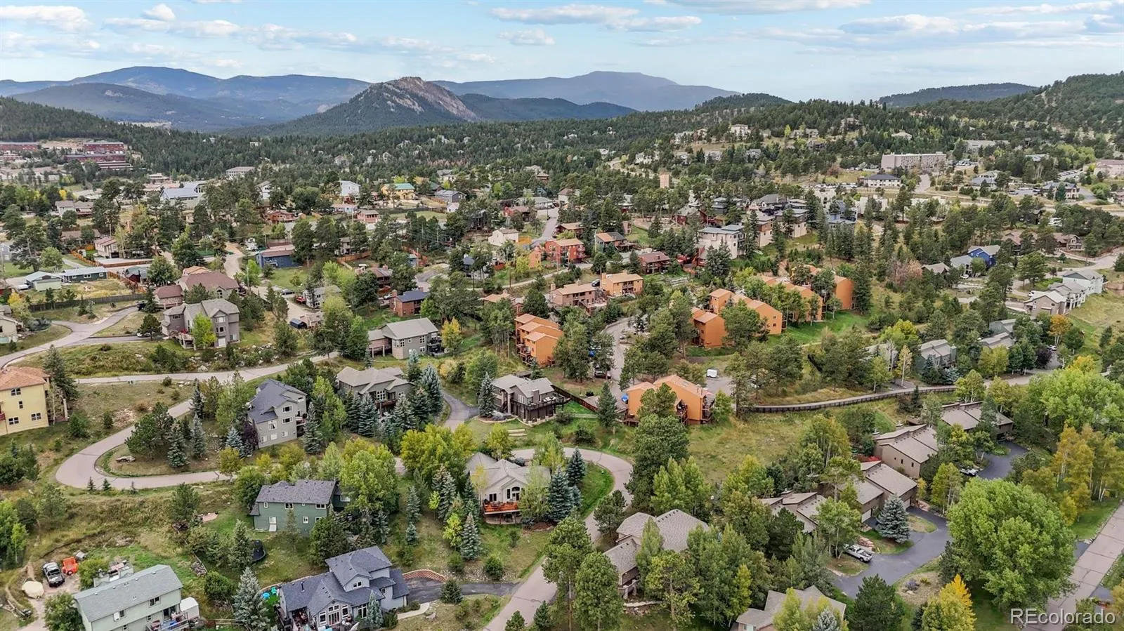 Detail Oriented! Looking for a hidden gem in North Evergreen? Check out this exceptional mountain contemporary in Bergen Glen Estates—an intimate enclave of only sixteen distinguished residences nestled in Sun Creek Ridge. This hidden pocket neighborhood, strategically positioned adjacent to the prestigious Hiwan Country Club, offers discerning buyers an extraordinary opportunity to access coveted North Evergreen. This pristine charmer is meticulously curated and maintained to perfection, from the fun and welcoming bright red front door, to the serene private water feature off the back deck, to the huge windows that frame mountain views, every detail feels fabulous. The gourmet kitchen glows, adorned with granite counters & stainless appliances and complemented by a sunny breakfast nook. A dedicated home office space with French doors provides the perfect retreat for productivity, while the main level primary bedroom suite epitomizes comfort and accessibility. Expansive windows offer mountain views, particularly from the main floor living room, which also boasts soaring ceilings and a gas fireplace for warmth and ambience. Upstairs you’ll find two add’l bedrooms, thoughtfully connected by a convenient jack-and-jill bathroom, and both offering walk-in closets. The sprawling lower level transforms entertainment into artistry, featuring an impressive rec room, perfectly complemented by a wet bar and kitchenette arrangement, plus you could add another bedroom in the large unfinished space. Everything about this lovely home’s coveted location maximizes foothills living, including its walking distance to the 1000 acre Elk Meadow Open Space for hiking, biking, cross country skiing and horseback riding! Residents also enjoy being moments from championship golf and serene Evergreen Lake for year-round recreational opportunities. Denver’s vibrant metropolitan offerings remain easily accessible, ensuring perfect balance between mountain tranquility and urban convenience.