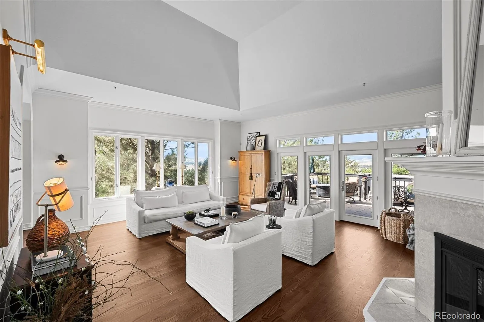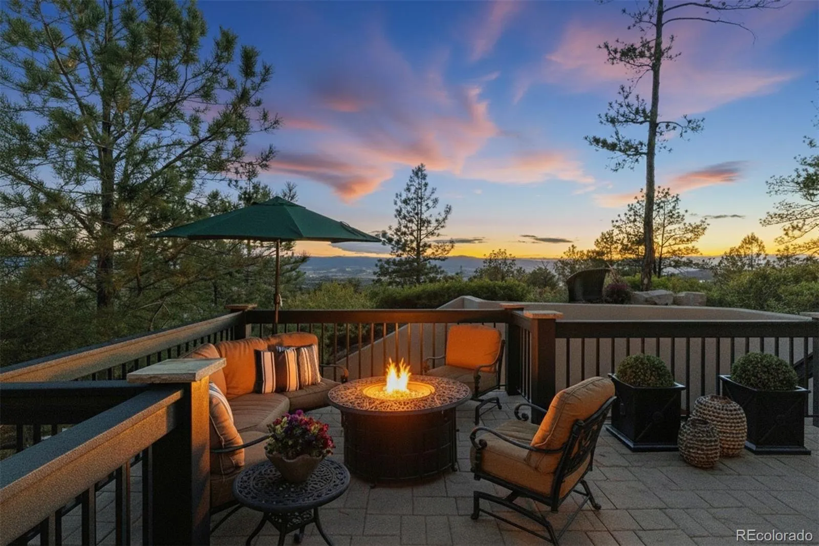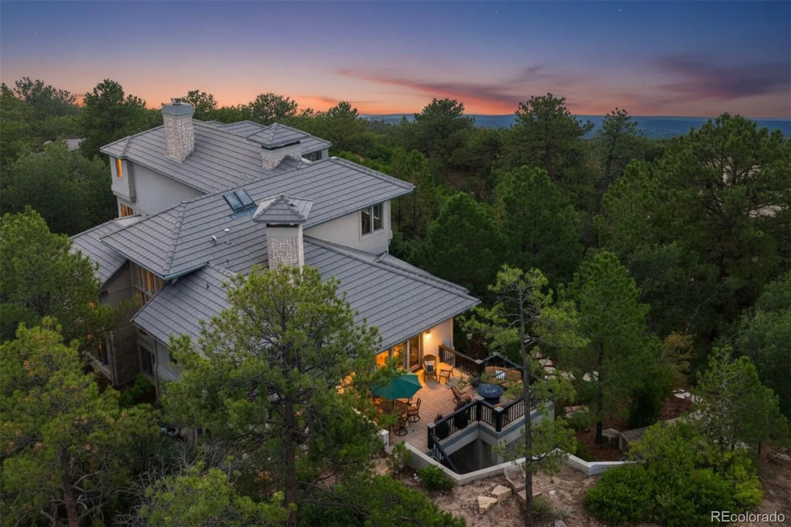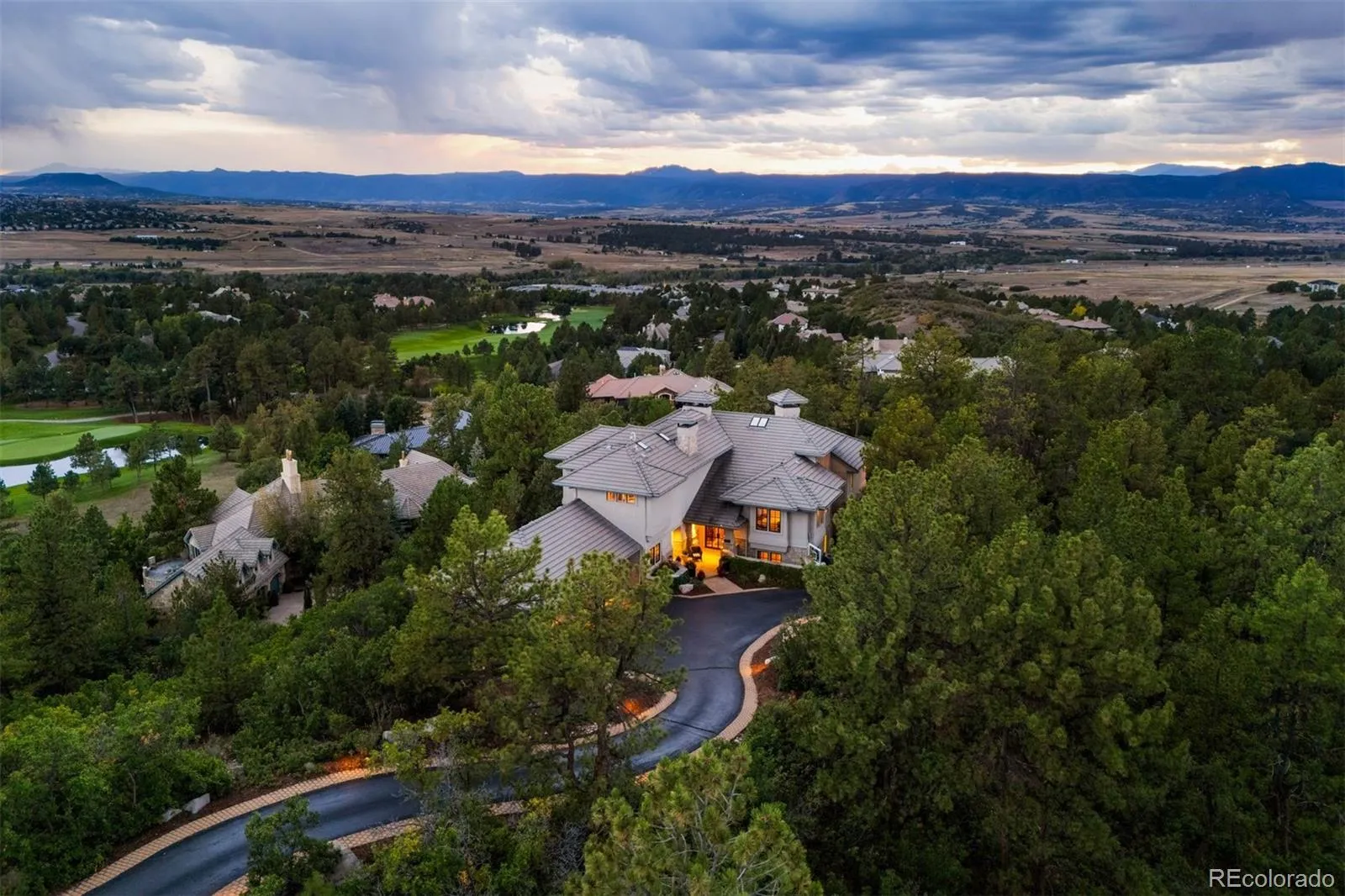 Commanding one of the most breathtaking vistas in The Village at Castle Pines, 99 Coulter Place is not like all the others: with sweeping Pikes Peak, Front Range, and Castle Pines Golf Club views, the grandeur of Colorado’s natural landscape is on full display at this infinitely intriguing 2+ acre property. Entering through the striking black steel frame and glass double doors to a myriad of cozy spaces, you’ll find that this noteworthy 5 bedroom | 8 bathroom estate features abundant natural light and panoramic views at every turn. A warm, sophisticated great room anchors the home, while a gourmet kitchen showcases custom cabinets, quartz counters, and a sunlit breakfast nook. An adjacent hearth room creates a welcoming space for gatherings, while a formal dining room, powder room, and laundry room complete this level with thoughtful function and style. Connecting all floors, a wood-paneled elevator is a testament to craftsmanship and convenience. Ascending upward, two bedrooms, one with a private en suite bath and the other with an adjacent bathroom, offer comfort and privacy. Moving higher, the crown jewel of the home is a sunlit office with inspiring views that sits right outside the primary suite appointed with a gas fireplace, 2 separate, updated en suite bathrooms, and expansive walk-in closets. Descending one level from the main floor, a spacious en suite bedroom, powder room, and sizable storage | expansion room enhance the accommodations. The walk-out lower level offers a billiards/game room, wine cellar, full kitchen, dry sauna, large 5th bedroom, additional bathroom, and a spacious recreation room. Outside, multiple patios, decks, and a flat yard create an idyllic setting for entertaining family and friends alike. With its scale, sophistication, and rare setting, this residence stands among the most distinguished estates in this coveted, gated community and is crafted for those who crave a timeless blend of transitional elegance and singular style.