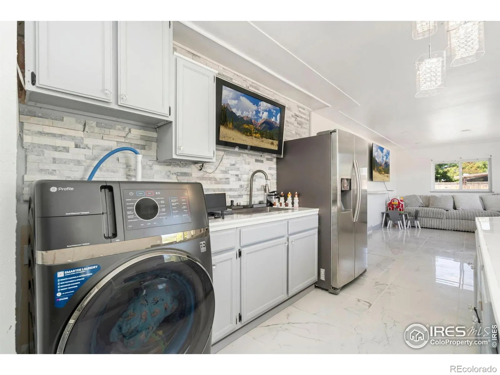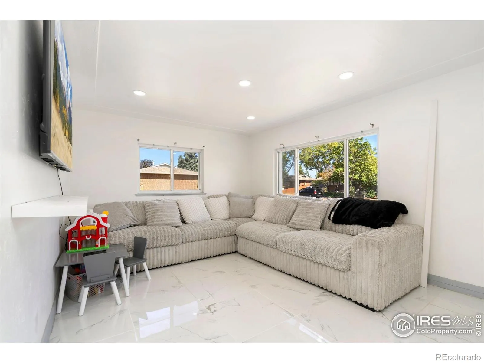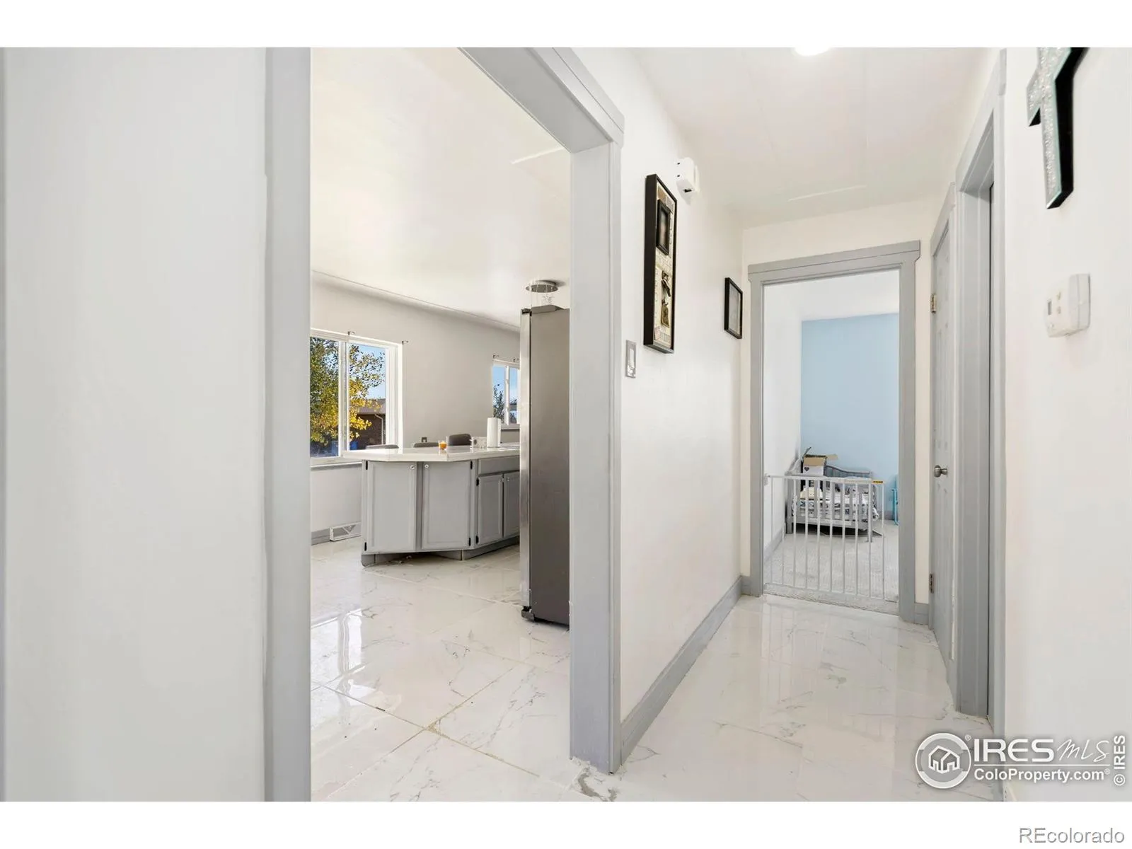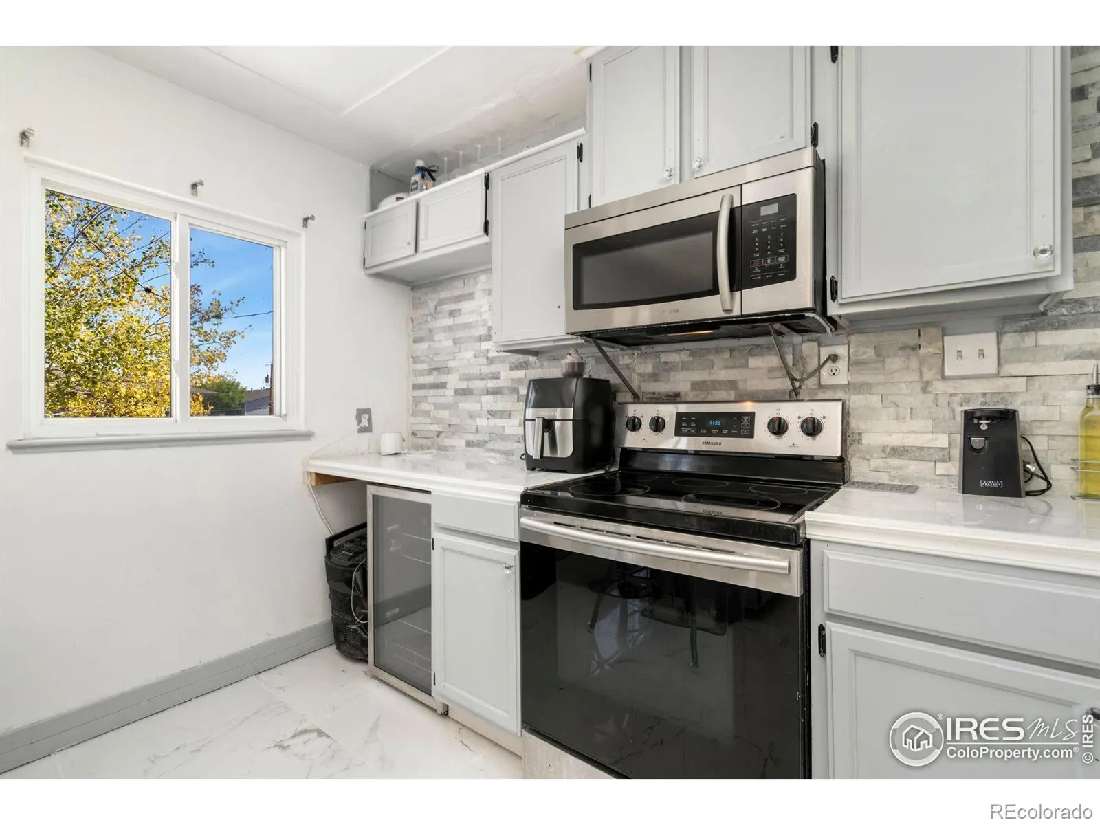 This charming corner lot home has been thoughtfully refreshed with numerous updates, creating a truly move-in ready experience. Inside, the single-level layout features 2 bedrooms and 1 bathroom, providing a cozy yet functional space that makes the most of every square foot. The main living area shines with fresh interior paint and brand-new white tile flooring throughout. Recently remodeled, the kitchen offers modern appliances, marble counters, a center island with seating, and the added convenience of a washer and dryer, making daily living effortlessly efficient. Outside, the large yard offers ample space for outdoor entertainment, with plenty of space for gardening or simply enjoying the Colorado sunshine. The detached garage offers additional storage space and secured parking. Convenient location, with easy access to major highways and all of Greeley’s amenities. No HOA!
