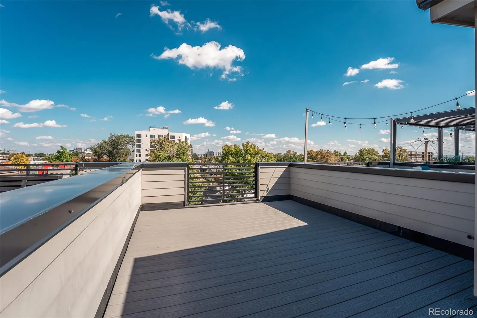 Both bedrooms feature en-suite bathrooms, with the primary suite offering a private balcony – your first of two outdoor retreats. The show-stopping rooftop deck provides expansive 360-degree views of the Denver skyline and Rocky Mountains, ideal for summer BBQs, lounging under the stars, or soaking in those famous Colorado sunsets.