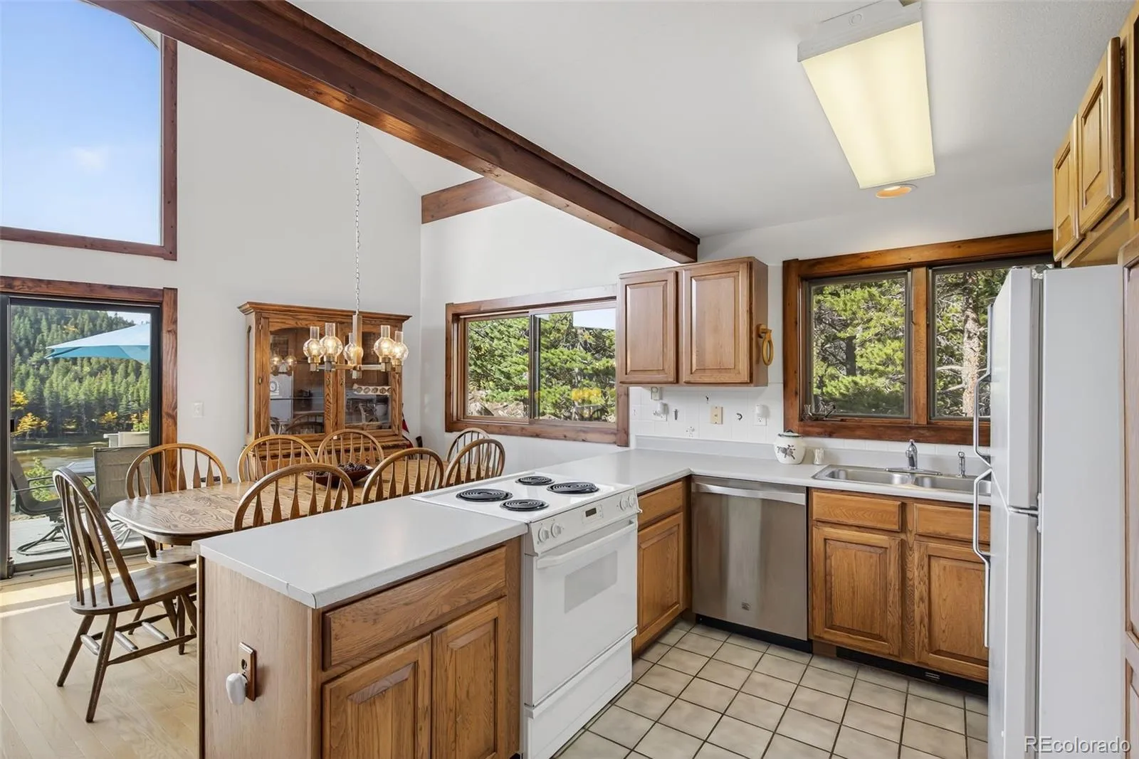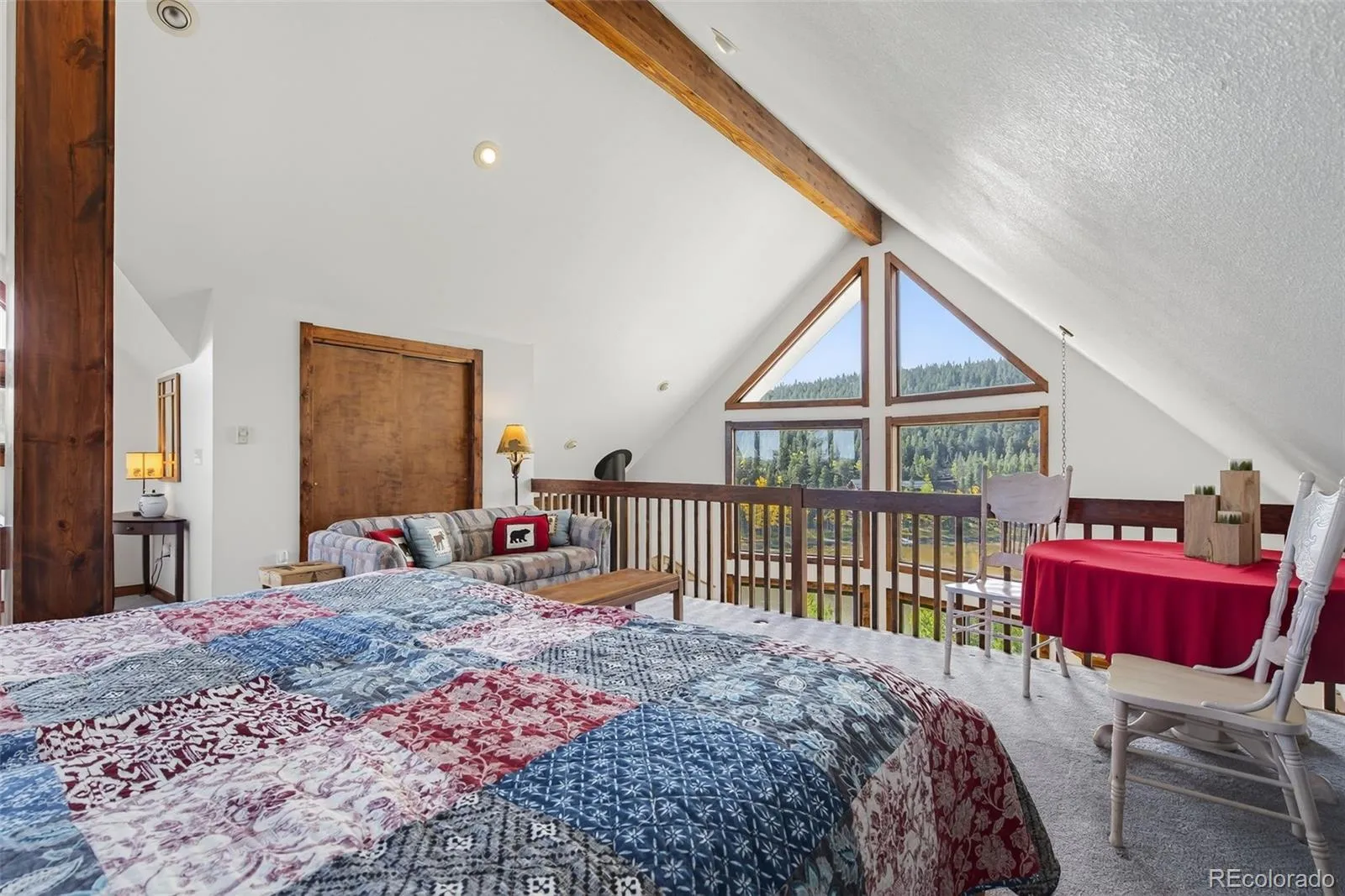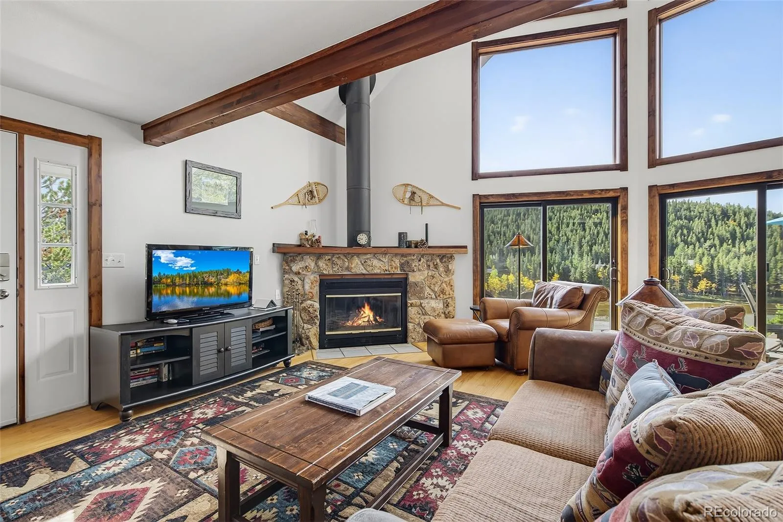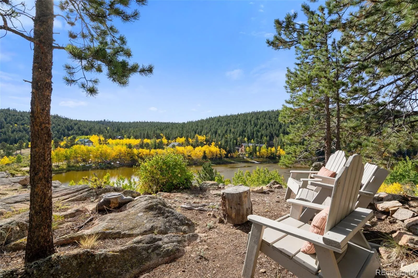 Welcome to Hidden Lake, a private mountain community just north of Ward where residents enjoy fishing, boating & swimming on their own shared alpine lake. A rare property, one of only 10 homes with direct lake frontage, offering a setting that feels both intimate & extraordinary. The home itself carries all the charm of a mountain retreat with striking rooflines, soaring windows that frame endless views & a wraparound deck designed for outdoor living. From this elevated vantage you can take in the expanse of lake & mountains, while a more secluded sitting area among the pines offers a quiet spot for Adirondack chairs & evenings around the fire. Inside, the main level living space is warm and inviting, anchored by a stone fireplace & wood beam accents. A wall of glass opens to the lake & surrounding forest, bringing the outdoors in & filling the room with natural light. The kitchen & dining area flow easily for meals together or hosting friends, while the lower level guest room provides privacy & comfort. The lofted primary bedroom overlooks the living space below & captures sweeping vistas that stretch across the mountains, giving you a sunrise-to-sunset experience each day. For nearly two decades, this home has been a shared retreat for families who treasured its serenity & convenience, and it is now ready to welcome its next chapter. Recent updates include a full exterior repaint, while practical features like a whole-home water filter, well & septic, and electric baseboard heat ensure comfort. The grounds are thoughtfully mitigated & hold the respected Wildfire Partners Certification. Whether launching a kayak, watching wildlife from the porch, or setting off for adventures in the nearby Indian Peaks Wilderness and Brainard Lake, this is a true basecamp for mountain living. Boulder is just 30 minutes away, with DIA under ninety minutes, keeping the world within reach while you enjoy the peace of your own lakeside escape.