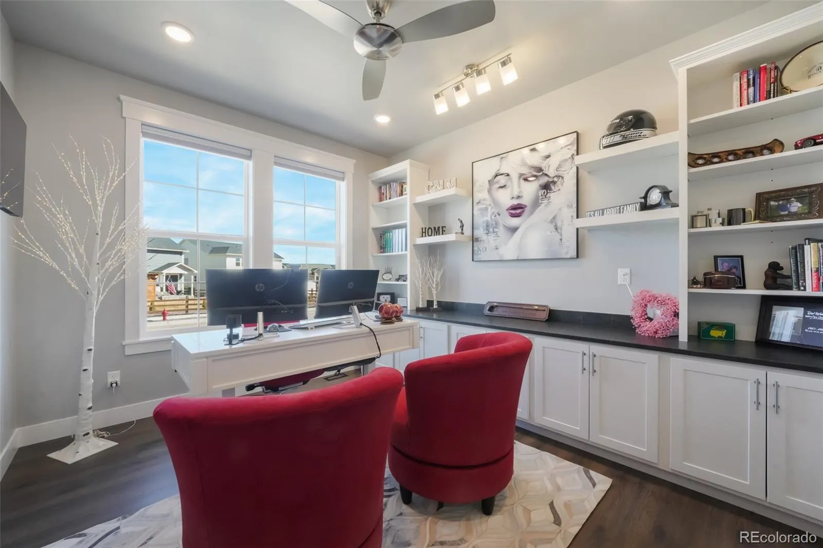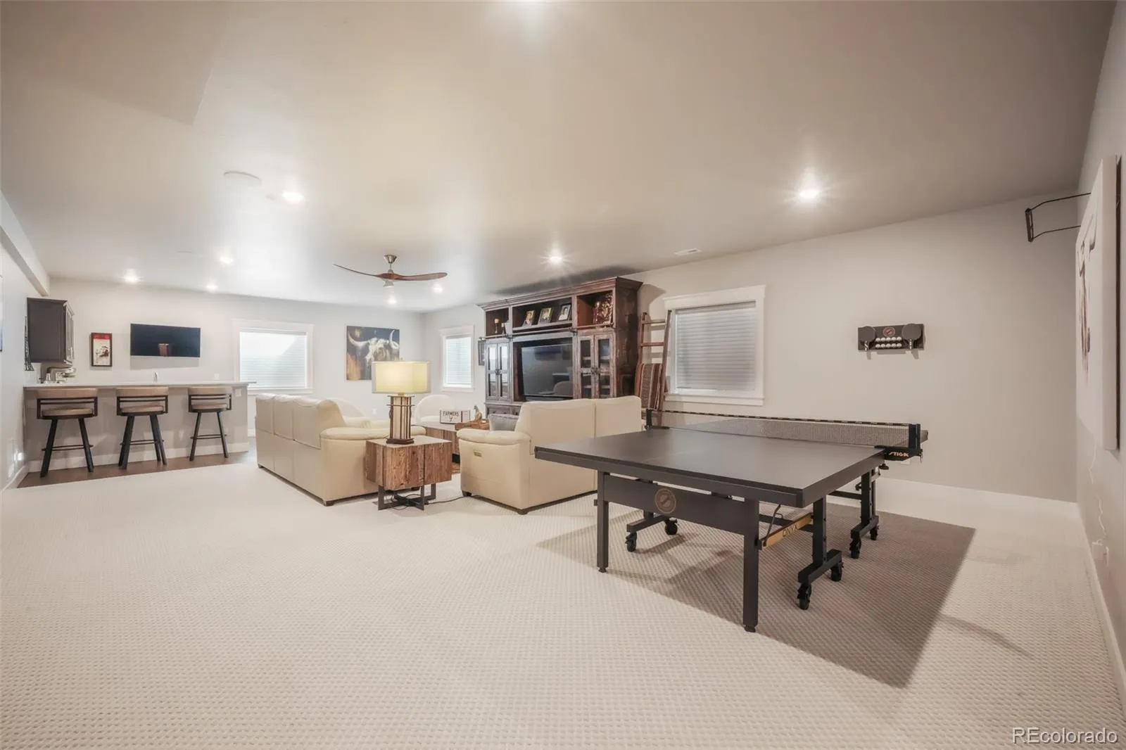 This stunning ranch-style home in Willow Springs Ranch, offers unparalleled luxury and thoughtful design. Every imaginable upgrade has been incorporated, creating a space that is both functional & elegant. The main level features an inviting & open floor plan, beginning with a private office, complete w/built in shelving, ideal for work or study. The primary suite is a true retreat, complete with an expansive spa-like bathroom, a large walk-in shower with jets, a double vanity, & spacious walk-in closet. Two additional bedrooms provide ample space, complemented by a beautifully designed full bathroom with a double vanity & tile work. A conveniently located powder room & laundry room add to the home’s functionality. The heart of the home is the gourmet kitchen, outfitted w/stainless steel appliances, double oven, gas cooktop, ice machine, & an abundance of cabinetry. Adorned w/quartz countertops & leathered granite. The large kitchen island creates a stunning focal point, while the walk-in pantry w/coffee bar & additional cabinetry offers incredible storage. Flowing seamlessly from the kitchen, the living room is warm and inviting, featuring a gas fireplace with a tile surround & custom shelving. All main level windows feature electric window shades. The expansive finished basement extends the living space, offering an additional bedroom & full bathroom. A second family room or recreation room is perfect for entertaining, complete with a wet bar. A large storage room w/epoxy flooring ensures plenty of space for organization. Outside, the front yard is xeriscaped for easy maintenance, while the backyard is designed for both relaxation & enjoyment. A pergola provides a shaded retreat, privacy fencing panels create a secluded atmosphere, & the turf with irrigation ensures a vibrant, green space year-round. With its exceptional craftsmanship, high-end finishes, and prime location, this home is a rare gem that truly offers the best in comfort, style, and functionality.