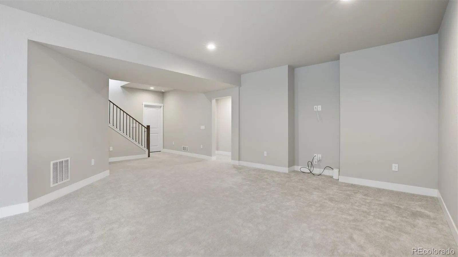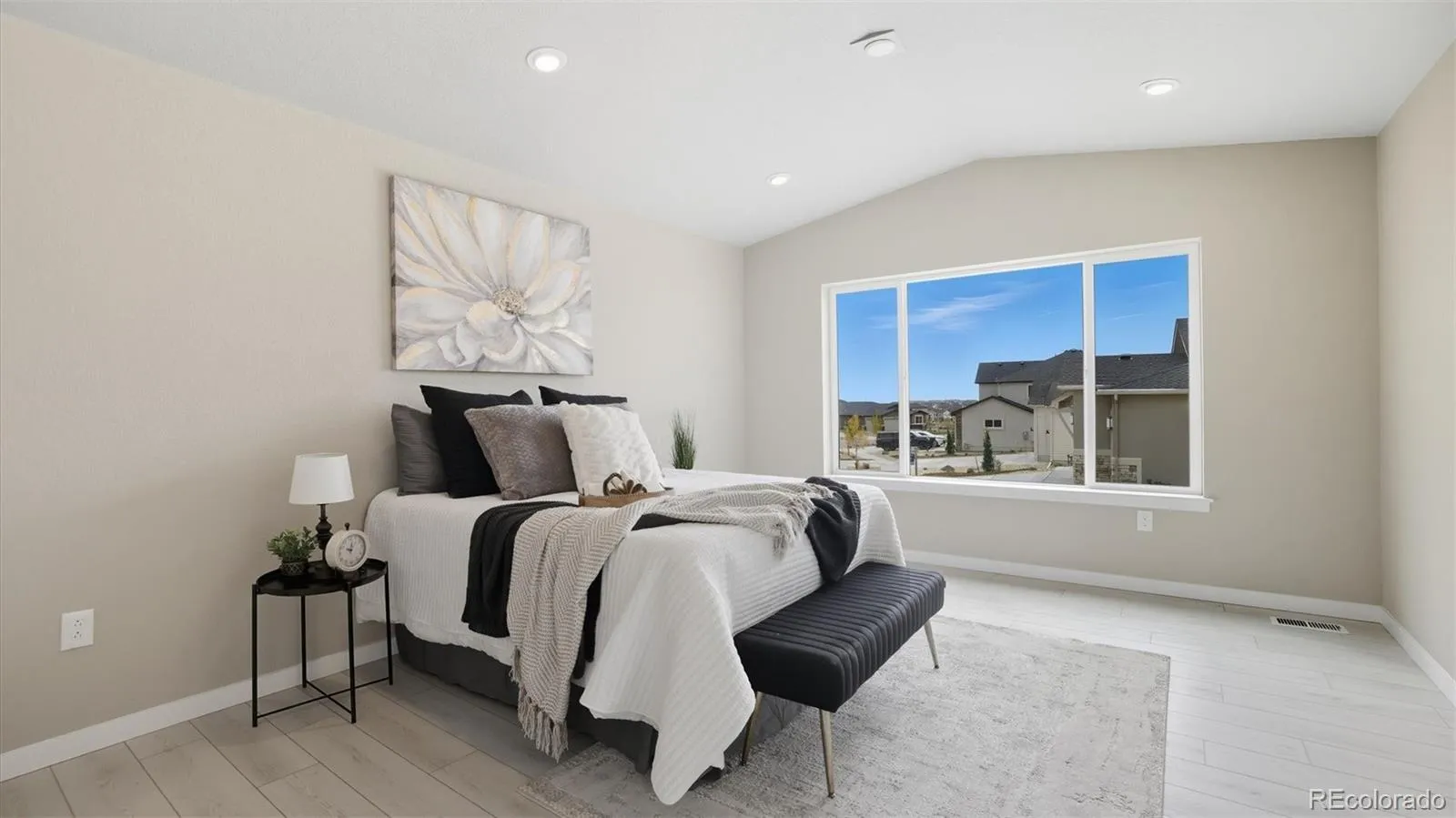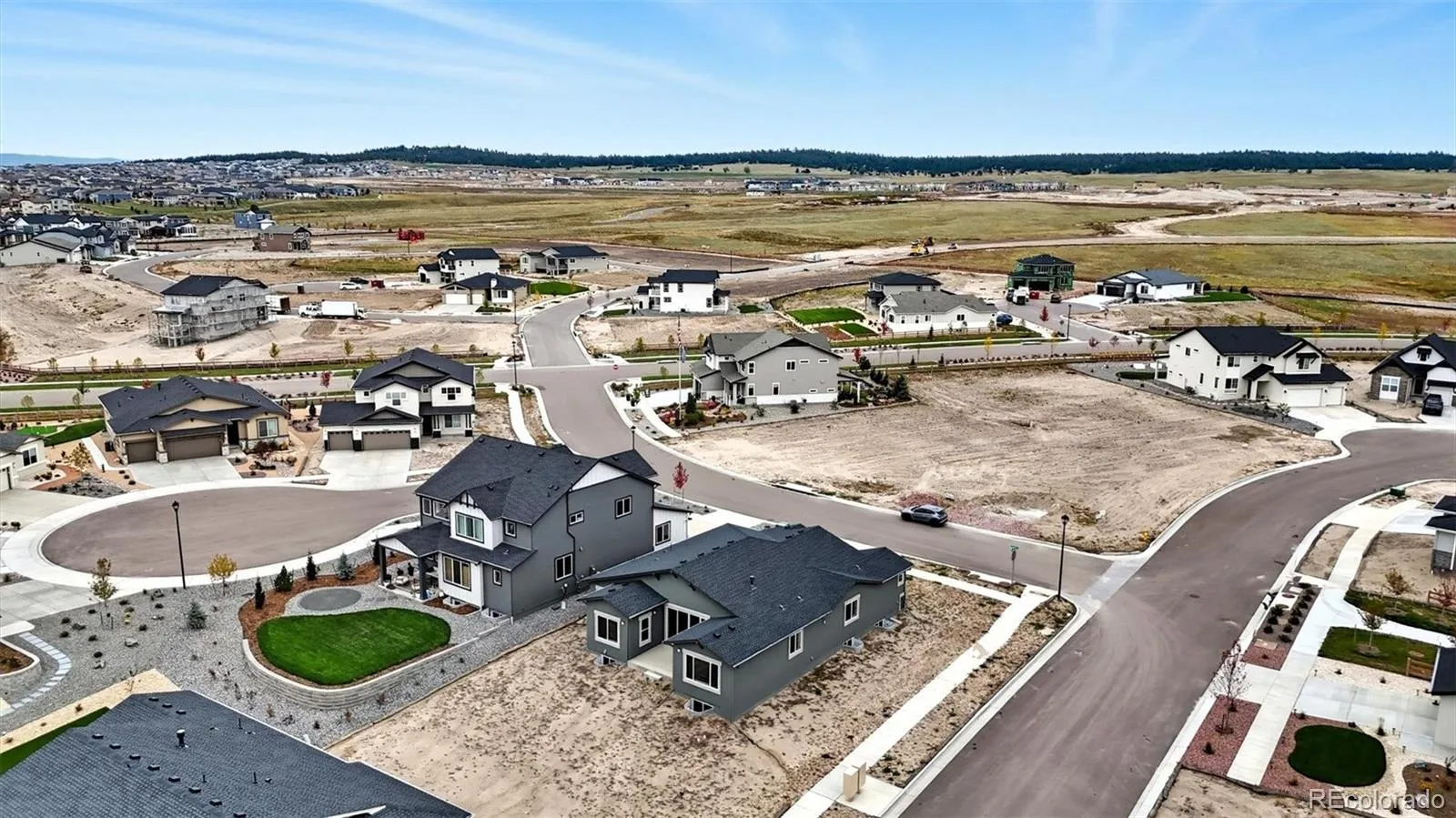 Exquisite stucco/stone ranch-style home on a 0.27-acre corner lot in the popular D20 community of Revel at Wolf Ranch. This brand-new 5BR, 4BA home blends luxury, functionality & modern elegance. The expansive basement offers potential for a 6th BR & rough-in for an additional BA. High ceilings & abundant natural light create an airy ambiance. Luxury vinyl plank flooring flows through the Entry, Living Room, Kitchen & Dining Area, complemented by wood-look blinds. The Great Room features a stone-tile gas fireplace & wall of windows with sliding door to the back patio, complete with gas stub for grilling. The chef’s Kitchen boasts a large island w/breakfast bar, waterfall-edge marble-look quartz countertops, stainless steel appliances (5-burner gas cooktop, built-in oven, microwave, dishwasher, SMART Samsung fridge), walk-in pantry & ample cabinetry. A sunny Dining Area ensures effortless entertaining. Additional features include a Mud Room, Powder Bath, Laundry Room w/Samsung washer/dryer, & 3-car garage. A main-level Office with French doors offers a perfect work-from-home space. The vaulted Primary Suite is a serene retreat with a luxurious 5-piece Bath, a dual sink vanity with quartz countertops, tiled walk-in shower w/seat, soaking tub & walk-in closet. Two more main-level BRs share a Shower Bath w/dual sink vanity, quartz countertop, and enclosed shower. The partially finished Basement with 9′ ceilings includes a spacious Family Room, Game Area, 2 BRs (one w/en-suite Bath and 1 with a walk-in closet), & large Utility Room w/tankless water heater, furnace, & storage. Central A/C & heat, security system & radon mitigation add peace of mind. The backyard is a blank canvas ready for your vision, whether it’s entertaining, creating a garden retreat, or installing a play space or fire pit.. Wolf Ranch offers parks, trails, Rec Center (fee), pool/splash park, stocked lake, playgrounds & summer concerts. Easy access to Powers, Hwy 83, I-25, shopping, hospitals & more!