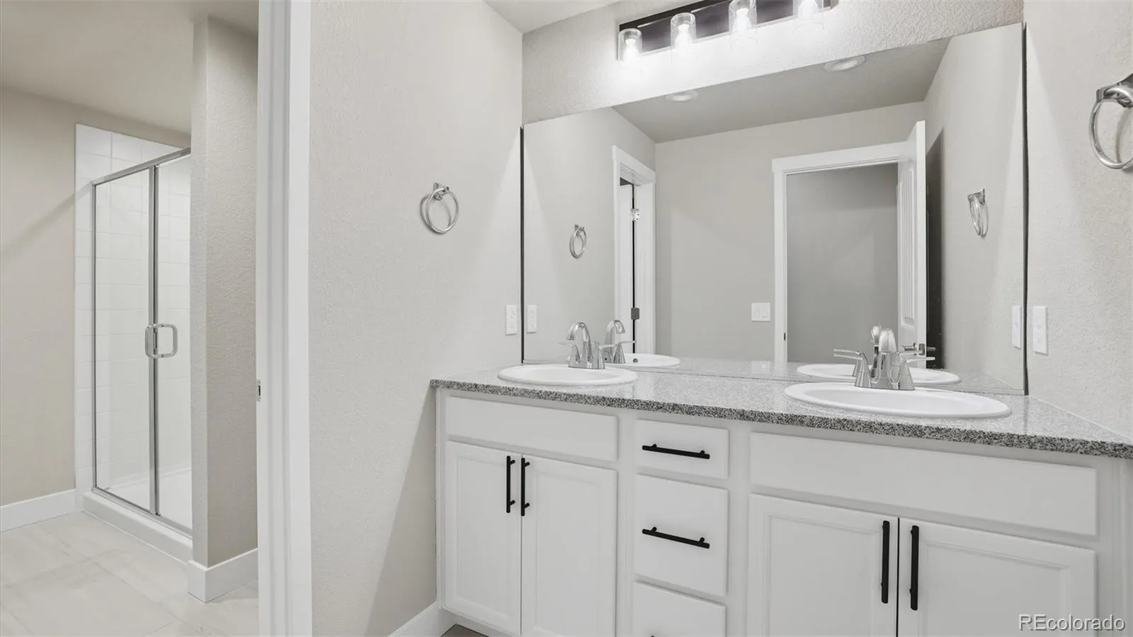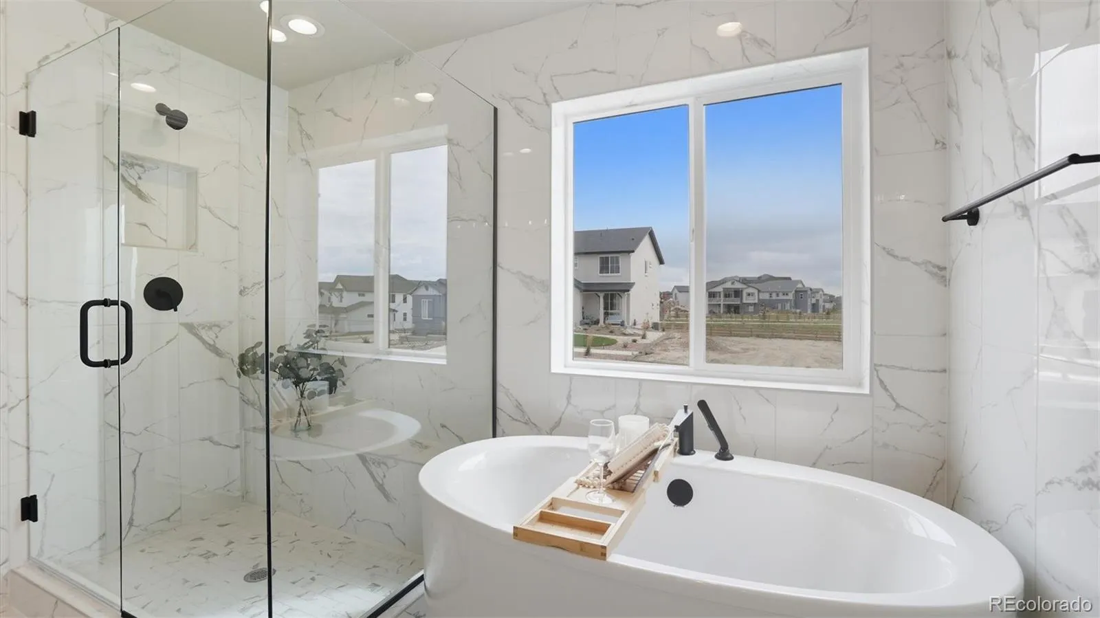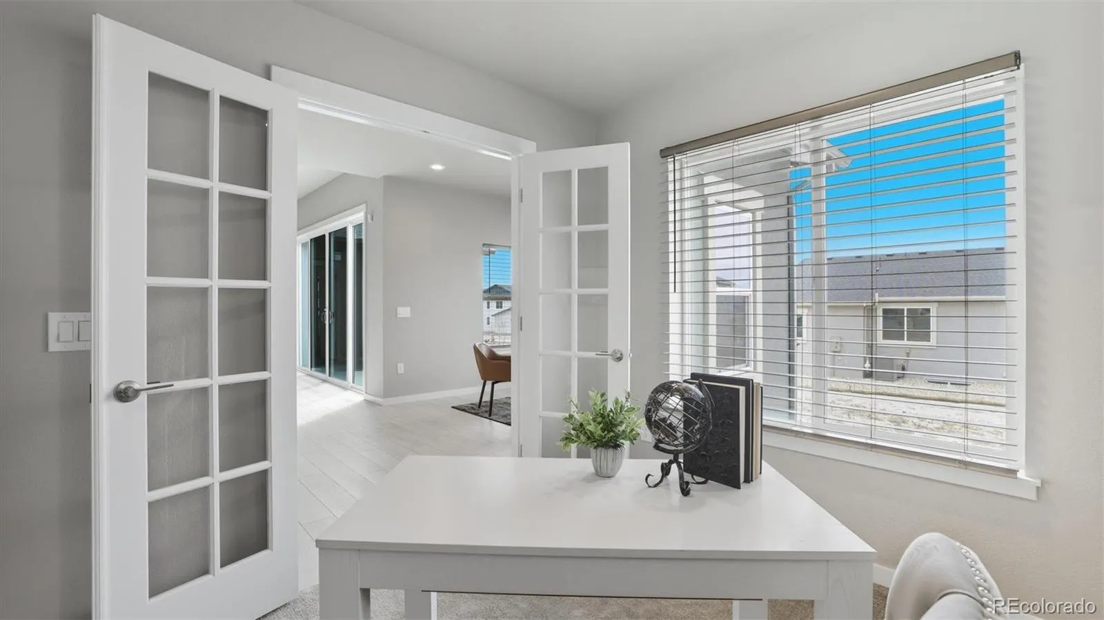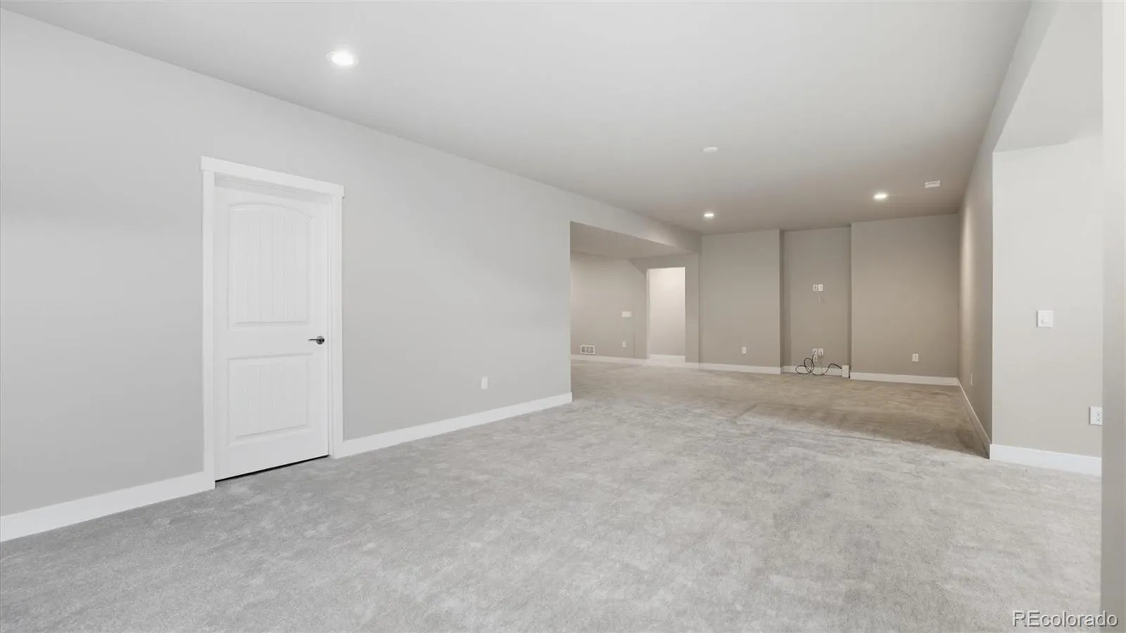 Exquisite stucco/stone ranch-style home on a 0.27-acre corner lot in the popular D20 community of Revel at Wolf Ranch. This brand-new 5BR, 4BA home blends luxury, functionality & modern elegance. The expansive basement offers potential for a 6th BR & rough-in for an additional BA. High ceilings & abundant natural light create an airy ambiance. Luxury vinyl plank flooring flows through the Entry, Living Room, Kitchen & Dining Area, complemented by wood-look blinds. The Great Room features a stone-tile gas fireplace & wall of windows with sliding door to the back patio, complete with gas stub for grilling. The chef’s Kitchen boasts a large island w/breakfast bar, waterfall-edge marble-look quartz countertops, stainless steel appliances (5-burner gas cooktop, built-in oven, microwave, dishwasher, SMART Samsung fridge), walk-in pantry & ample cabinetry. A sunny Dining Area ensures effortless entertaining. Additional features include a Mud Room, Powder Bath, Laundry Room w/Samsung washer/dryer, & 3-car garage. A main-level Office with French doors offers a perfect work-from-home space. The vaulted Primary Suite is a serene retreat with a luxurious 5-piece Bath, a dual sink vanity with quartz countertops, tiled walk-in shower w/seat, soaking tub & walk-in closet. Two more main-level BRs share a Shower Bath w/dual sink vanity, quartz countertop, and enclosed shower. The partially finished Basement with 9′ ceilings includes a spacious Family Room, Game Area, 2 BRs (one w/en-suite Bath and 1 with a walk-in closet), & large Utility Room w/tankless water heater, furnace, & storage. Central A/C & heat, security system & radon mitigation add peace of mind. The backyard is a blank canvas ready for your vision, whether it’s entertaining, creating a garden retreat, or installing a play space or fire pit.. Wolf Ranch offers parks, trails, Rec Center (fee), pool/splash park, stocked lake, playgrounds & summer concerts. Easy access to Powers, Hwy 83, I-25, shopping, hospitals & more!