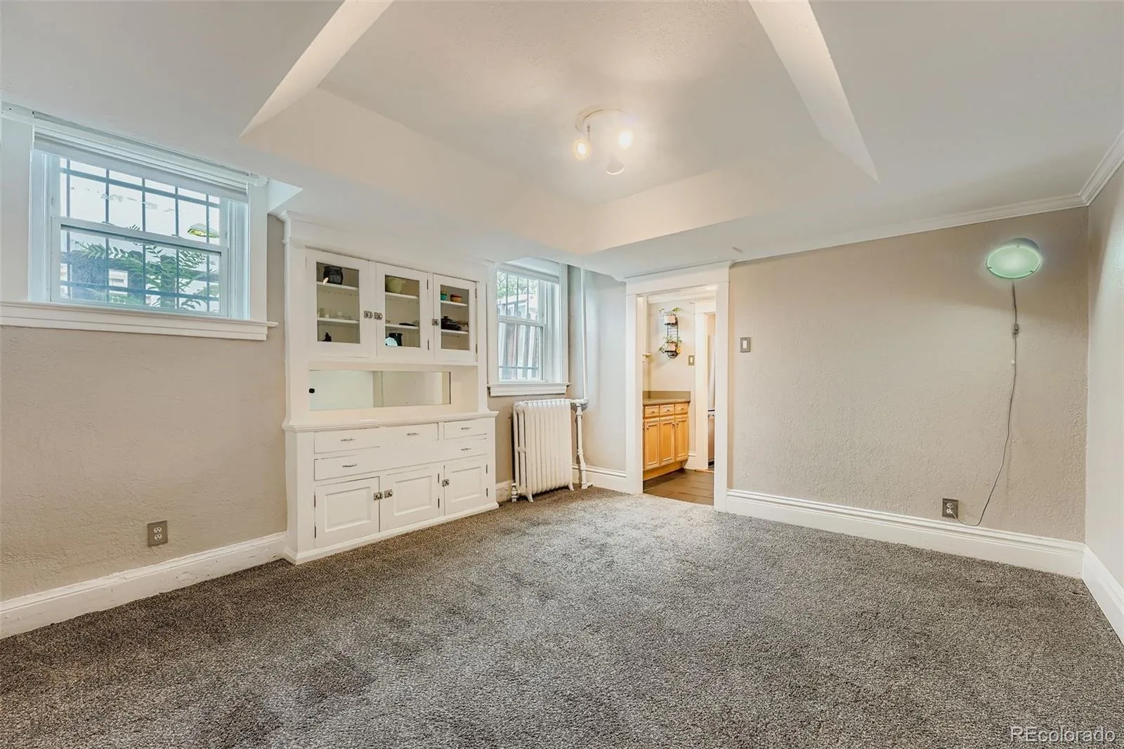 Dreaming of a quiet, peaceful retreat in the heart of the city? Look no further! This bright and spacious 2 bed, 1 bath condo in the heart of Capitol Hill has the best of all worlds. Unmatched walkability (grocery stores, coffee shops, restaurants, salons), open and roomy living space, TONS of storage, and a wonderful community await. This garden level unit lives like an above ground unit -large windows provide lots of natural light, you have easy access to outdoor spaces, and it is incredibly quiet and private. The two roomy bedrooms are on opposite sides of the unit, making for a great roommate, home office, or guest room setup. Both bedrooms can comfortable fit a queen sized bed! The bathroom has been recently remodeled and features tons of extra storage, as well as a beautiful walk-in shower with new tile. The kitchen features a walk-through butler’s pantry which provides tons of cabinet space and the perfect coffee/tea/bar area! Gorgeous original built-ins in the dining room are the perfect space to display your favorite dishes and collectables. A beautiful original fireplace adds coziness and character to the living room. Free community laundry is conveniently right down the hall, as is the large extra storage room. One parking space is included with this unit and has an EV charger already installed and ready for your electric vehicle! This unit is truly a gem – don’t wait, schedule a showing today!