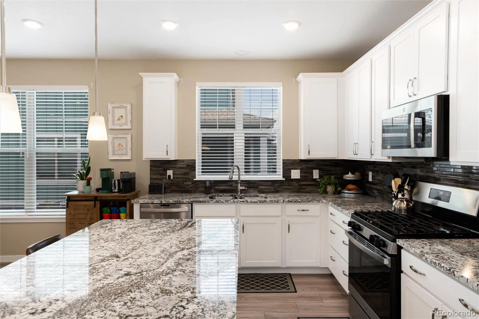 Welcome home! Enjoy breathtaking views right from your front porch in this warm and inviting home designed for both comfort and style. Step inside to an open and spacious floor plan that flows effortlessly, perfect for everyday living and entertaining alike. The kitchen is a true showstopper with stunning finishes and plenty of space for cooking and gathering. Upstairs, you’ll find a cozy loft—ideal as a reading nook, home office, or flex space. The large laundry room adds convenience, and the washer and dryer are included. Throughout the home, window coverings are already in place, making it truly move-in ready. Step out back to relax on the beautiful covered deck, the perfect spot for morning coffee or evening get-togethers. A two-car attached garage offers added functionality. Located in a desirable neighborhood with wonderful amenities like a pool, clubhouse, and scenic trails. Plus, you’re just minutes from shopping, dining, and everyday conveniences. This home offers the best of Colorado living—don’t miss it! **Buyer can fence in their property if they choose to do so**