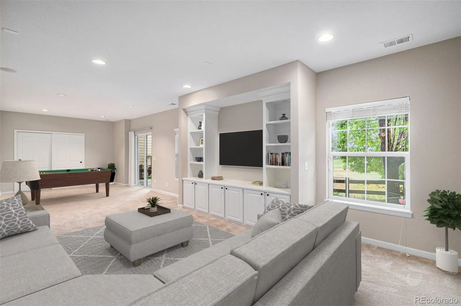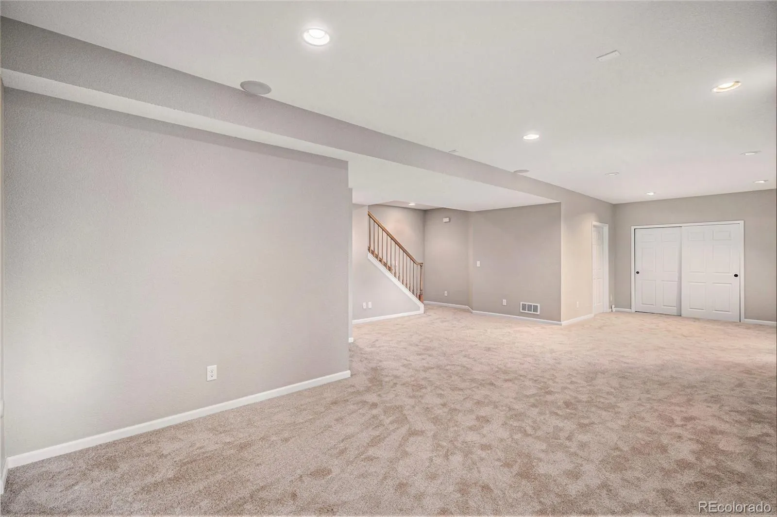 Welcome to Canterberry Crossing! Nestled in a beautifully manicured neighborhood, this stunning 2-story home offers 4 bedrooms, 4 bathrooms, and over 3,400 finished square feet, including a fully finished walk-out basement. Step inside and enjoy thoughtful updates throughout, including quartz kitchen counters, upgraded bathroom countertops, plush new carpet, and refinished hardwood floors. The roof was replaced within the last 3 years, offering peace of mind for years to come. The main floor boasts a much-sought-after extra bedroom with nearby full bath—perfect for guests or multigenerational living. High ceilings, abundant natural light, and modern light fixtures add elegance throughout, while built-in media speakers create a welcoming atmosphere. Outside, relax on the beautifully modern composite deck and take in serene golf-course views with breathtaking morning sunrises. Don’t forget the walk-out basement featuring a full bathroom, ample area for an “In-law Suite,” and a large finished pantry/storage area under the stairs! The well-maintained hot tub is ready for year-round enjoyment. Additional features include a whole-home humidifier and a radon mitigation system. With its perfect blend of updates, comfort, and desirable location, this Canterberry Crossing gem is move-in ready and waiting for you!