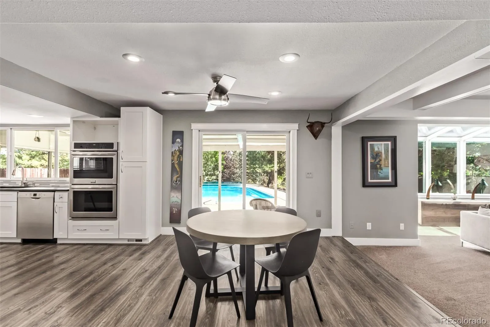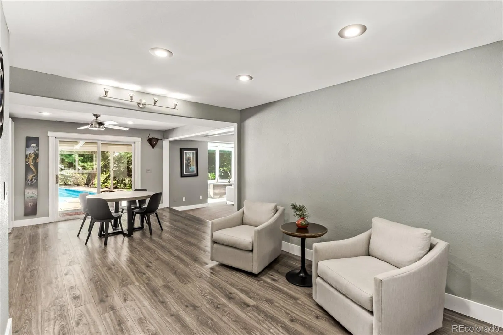 The finished basement adds versatility with space for a guest suite or office, a dedicated sauna room, ¾ bath, family room, & bonus area for games, fitness, or hobbies. Located in Lakewood with easy access to shopping, dining, the mountains & downtown Denver, this home perfectly blends relaxed retreat vibes with everyday convenience. Pool, patio, and play—this Lakewood home has it all.