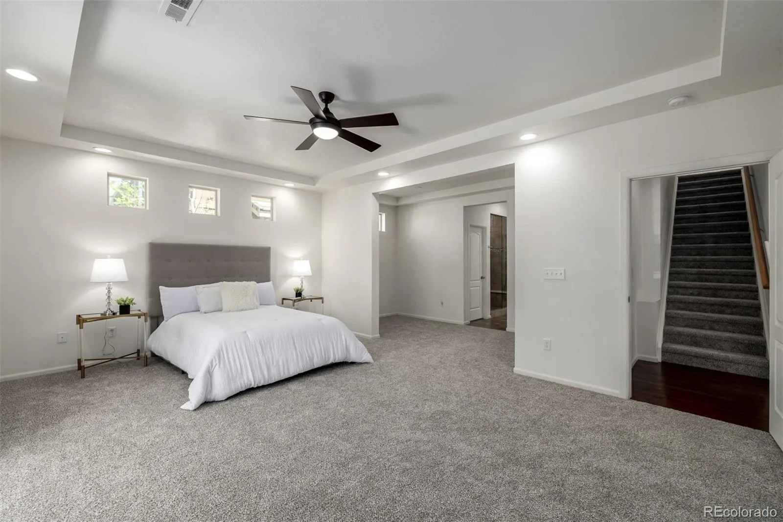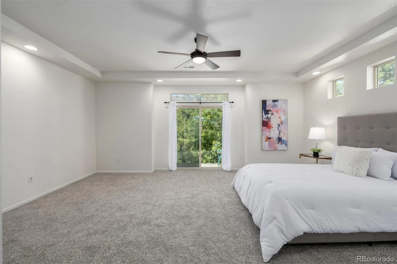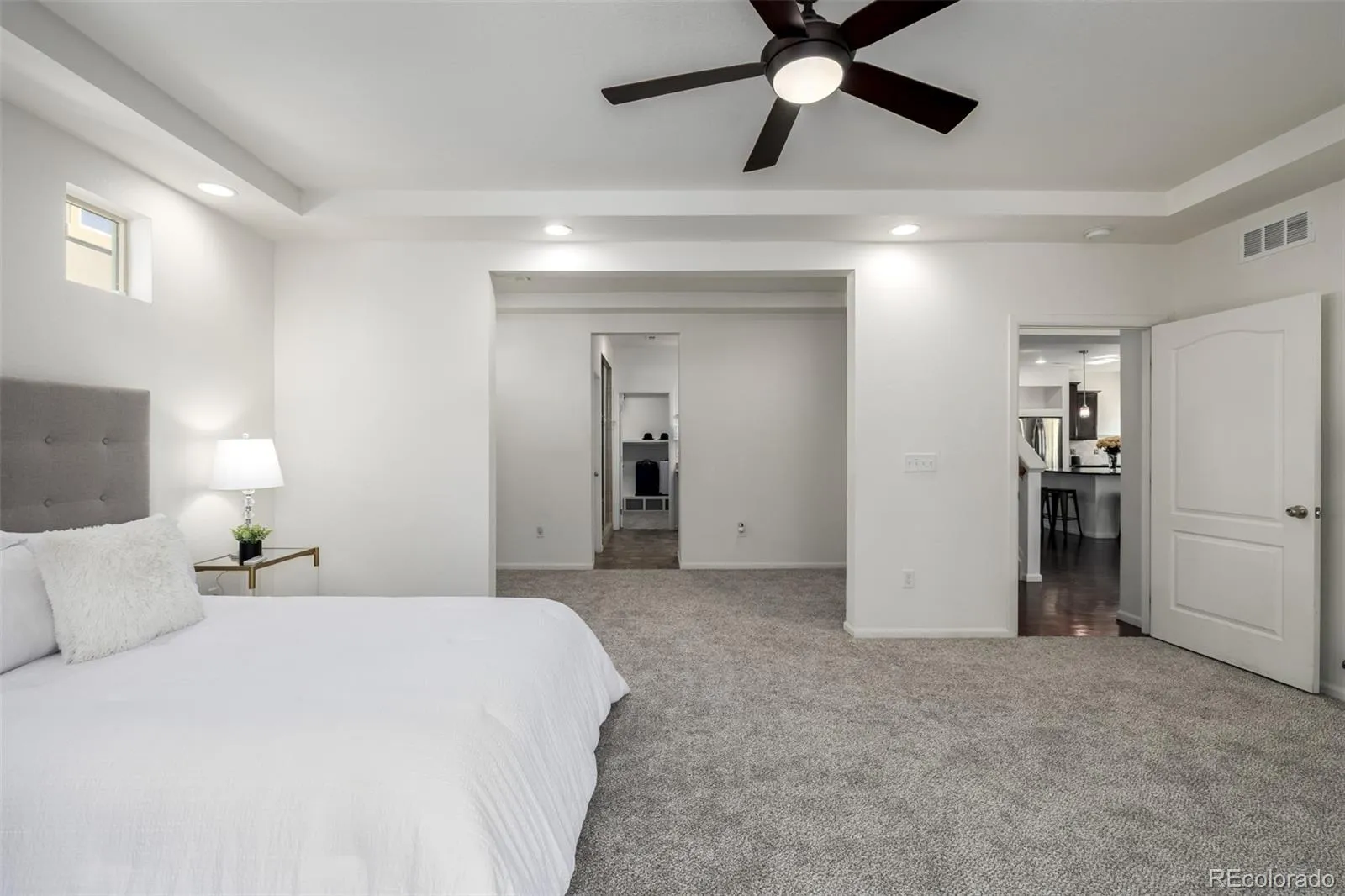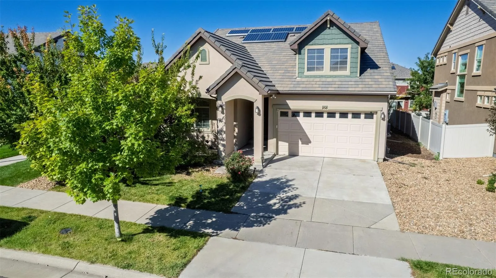 Main Floor Primary Suite in Sought-After Erie Highlands! Welcome to this stunning ranch-style home with a bonus upper level, perfectly situated next to a greenbelt! Beautiful engineered wood floors guide you through the main level’s inviting living spaces. At the front of the home, a versatile bedroom or office sits conveniently near a full hall bath with stylish tile flooring. The chef’s kitchen is a true highlight, showcasing granite countertops, stainless steel appliances, a pantry, and a large center island with breakfast bar seating. Just off the kitchen, the spacious dining area is perfect for everyday meals or entertaining. The open great room is filled with natural light and offers access to the covered back patio for seamless indoor-outdoor living. The luxurious main-floor primary suite is a private retreat, offering a bright and airy bedroom with large windows, an adjoining sitting room, and a spa-inspired bath complete with dual vanities, oversized tiled shower, linen closet, and walk-in closet. A convenient laundry room completes the main level. Upstairs, you’ll find flexible living options, including a large bedroom with a walk-in closet. A sun-filled loft/bonus area provides even more space to fit your lifestyle, while a spa style bathroom and additional linen closet round out the upper level. The basement is unfinished waiting for your personalization. Additional highlights include new carpet and Tesla solar panels to help with energy costs. Ideally located, this home is steps from the community park, a top-rated Pre-K to 5th-grade school and less than a mile from the middle and high schools. Enjoy community amenities like a pool, clubhouse, fitness room, parks, and playgrounds. For a night out, charming Briggs Street offers a mix of high-end and casual dining, local breweries, and more