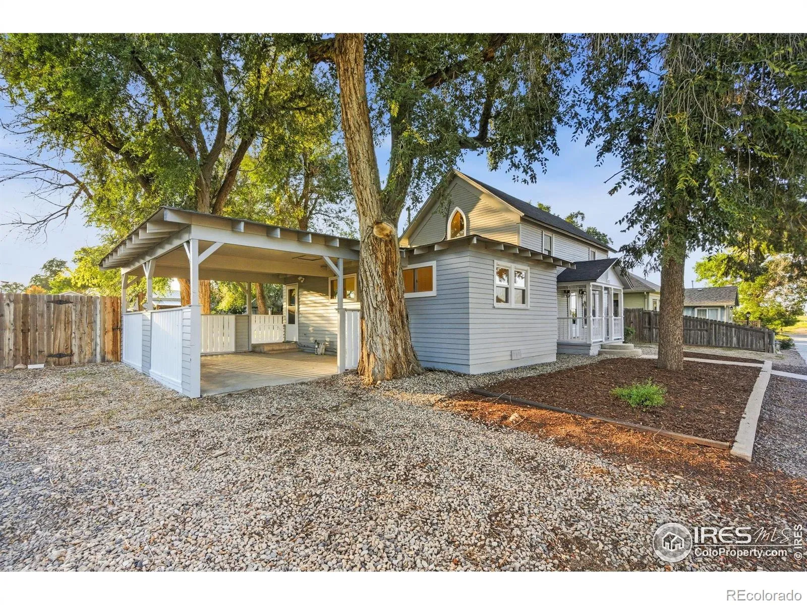 Welcome to 4013 Kern Street, a charming historic farmhouse located in the heart of Old Town Timnath. This unique property offers a blend of classic charm with room to roam, and versatile amenities including pull-through gate at the front of the property providing ample overflow parking for boat or RV storage. The 1200 sqft alley-load shop/garage and an additional outbuilding offer versatile spaces perfect for a hobby area, gym, or detached office. Situated amongst recently constructed homes, the main house features 2 bedrooms plus an office and 2 bathrooms, including an antique claw foot tub and wood floors. The primary loft style bedroom has vaulted beamed ceilings and an additional office or den space overlooking the backyard. Updated heating and water heater in 2020, plus modern windows and newer paint. The backyard is a tranquil retreat with a charming fountain/stream, mature trees and a quaint gazebo. Located within walking distance to Timnath Brewery and local eateries, and offering easy access to the Poudre River Trail plus is situated in the Poudre School System. The possibilities are endless with this exceptional property in an unbeatable location. NO HOA or Metro district taxes; Plus zoning allows for a caretaker unit.