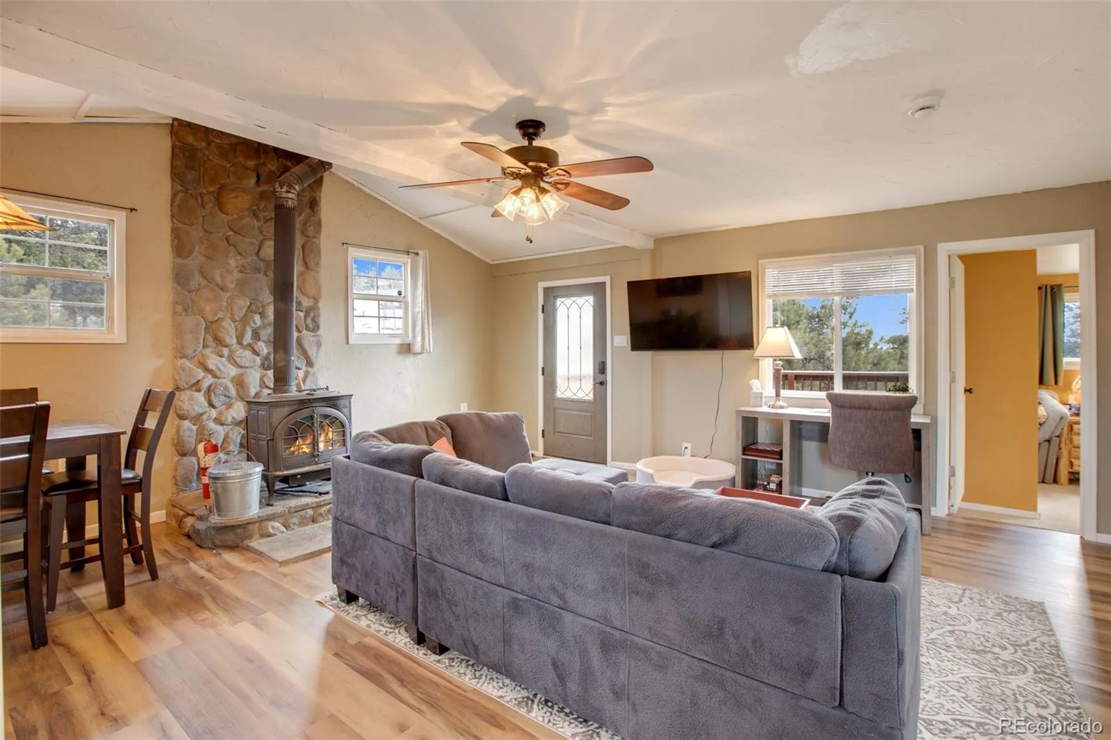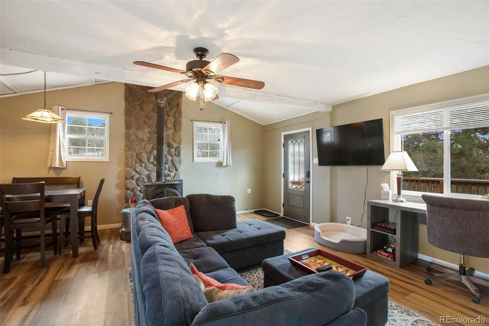 Discover the ultimate mountain getaway at this beautifully modernized retreat, designed for family relaxation and adventure. Nestled in serene natural surroundings, this charming home offers stunning views and abundant wildlife, creating a peaceful haven while providing modern conveniences. Enjoy the best of both worlds—proximity to local shops and restaurants, yet blissfully distanced from the city’s hustle. The home features two inviting decks: a back deck perfect for alfresco dining and a front deck ideal for sipping morning coffee while watching the sunrise or observing deer stroll by. This 800+ sq. ft. home ensures privacy and comfort, featuring: Master Bedroom: A serene space with French doors leading to the back deck. Second Bedroom: A cozy, versatile room currently with a stylish bunk bed (full-sized bottom, twin top). Remodeled Bathroom: Brand-new plumbing and modern fixtures. Full Kitchen: Equipped with all appliances, ready for family meals. The home also includes a heating and A/C unit for year-round comfort, a charming wood stove for cozy nights, optional high-speed wireless internet, and a washer/dryer for added convenience. Meticulously updated with new windows, flooring, plumbing, electrical systems, doors, and light fixtures, this retreat is ideal as a vacation home, full-time residence, or short-term rental. For outdoor enthusiasts, the location offers easy access to gold medal fishing at Eleven Mile Canyon, ATV/OHV trails, horseback riding, and hiking/biking at Dome Rock Wildlife Area, Mueller State Park, and Florissant Fossil Beds National Monument. This mountain retreat provides the perfect mix of seclusion, comfort, and adventure.