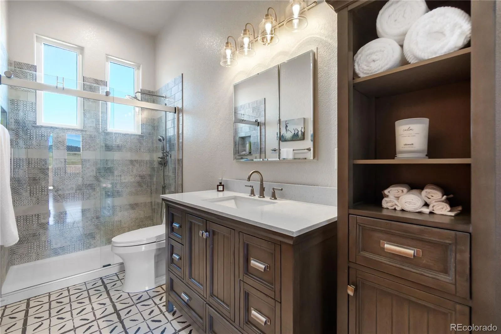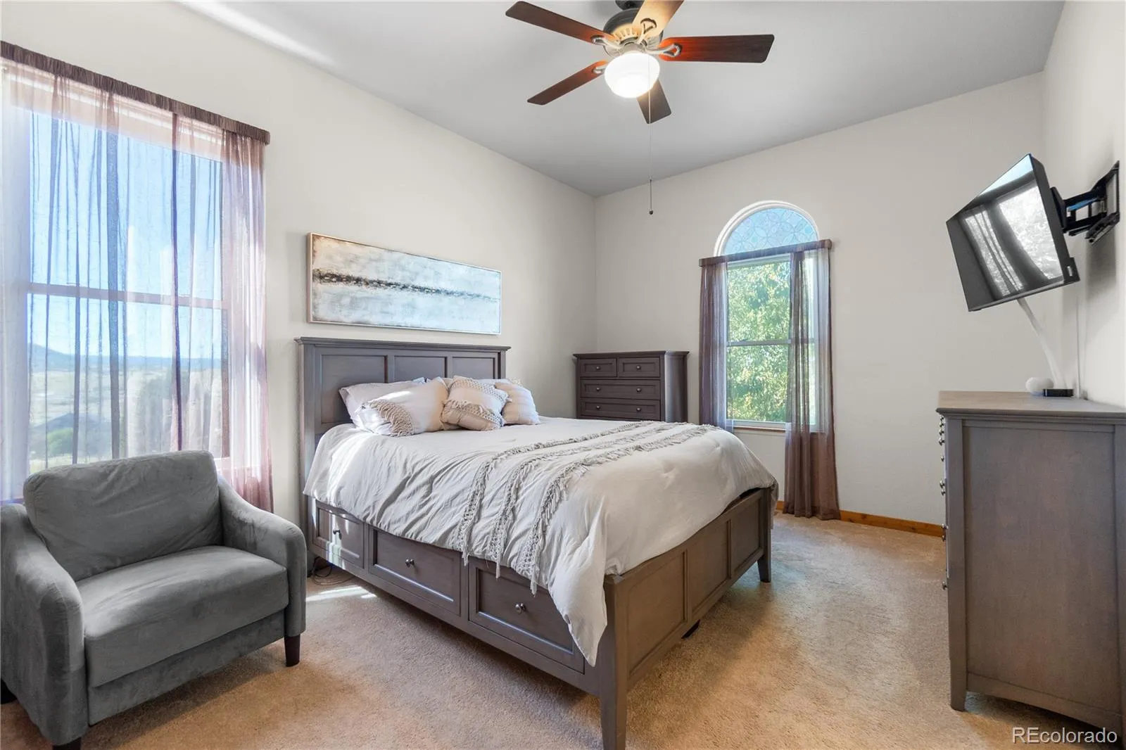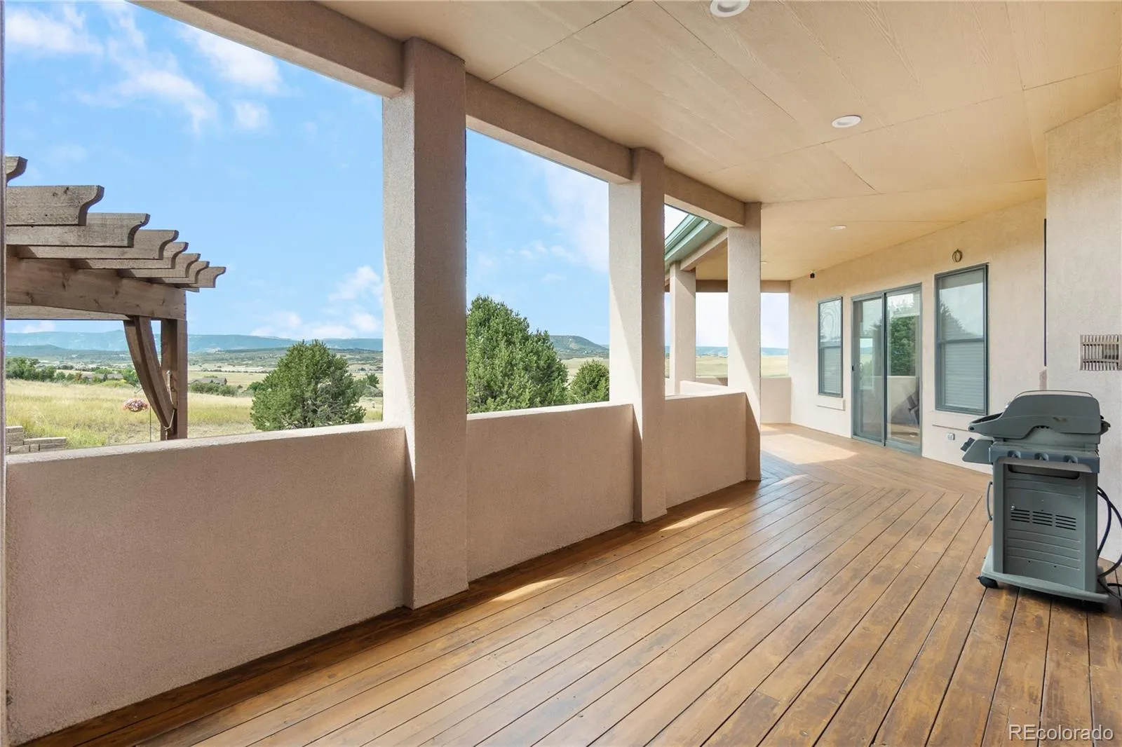 Experience a unique custom ranch home in the highly desirable Bell Mountain Ranch community, situated on over 2.5 acres. This spacious residence encompasses 4,067 square feet and features a thoughtfully designed layout, including four bedrooms and three and a half bathrooms, offering both versatility and comfort. The living room is enhanced by vaulted ceilings and abundant natural light, while the kitchen and family room create an impressive open-concept space, ideal for entertaining and showcasing stunning mountain views. Three main floor bedrooms, including the primary bedroom, provide generous space and plenty of natural sunlight. The primary bedroom on the main floor boasts an ample layout along with a beautiful en-suite bathroom. The basement offers additional living or entertaining space, complete with a bedroom, a bathroom, and ample storage. This home also features a massive covered deck, perfect for entertaining or simply relaxing while enjoying the views, with convenient walk-out access to a patio from the main level. The three-car oversized garage provides plenty of storage space, and there is also side parking available! This southwestern-style custom home boasts remarkable living spaces and is set on a picturesque lot in Castle Rock. It invites you to experience the serene beauty of Colorado living, just minutes away from shopping and dining, with easy access to I-25 for convenient commuting. The generous square footage and distinctive floor plan make this property an exceptional opportunity for buyers seeking character, functionality, and room to grow.*****Please see supplement documents*****