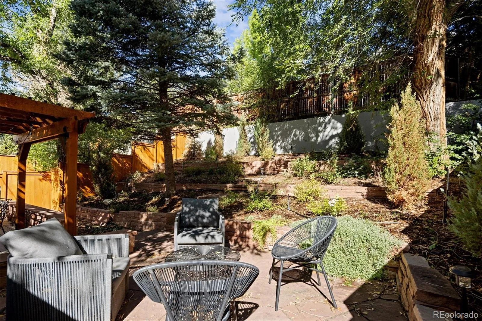 Walk or bike to Pearl Street, CU Football Games, Sundance Events and all that Boulder has to offer from this stylish contemporary row house with an attached two-car garage. With sophisticated design and abundant natural light, this home blends modern updates with timeless charm. Gorgeous oak hardwood floors flow through the main living area, where exposed brick walls and a wood-burning stove create a warm, inviting atmosphere. The updated kitchen opens seamlessly to the living space-perfect for entertaining.The top-level primary suite is a true retreat, featuring cathedral ceilings, dual walk-in closets, a remodeled luxury bathroom, and a private balcony with stunning Flatiron views. Recent improvements include a warrantied roof (2022), newer gutters, newer HVAC and water heater, windows, sewer line, washer/dryer, fresh interior and exterior paint, carpet, as well as a newer back deck with pergola, fencing, and tiered landscaping. With no HOA, this single-family residence offers both privacy and convenience, sharing just one concrete wall. In the heart of Boulder, this thoughtfully updated home is a must-see!