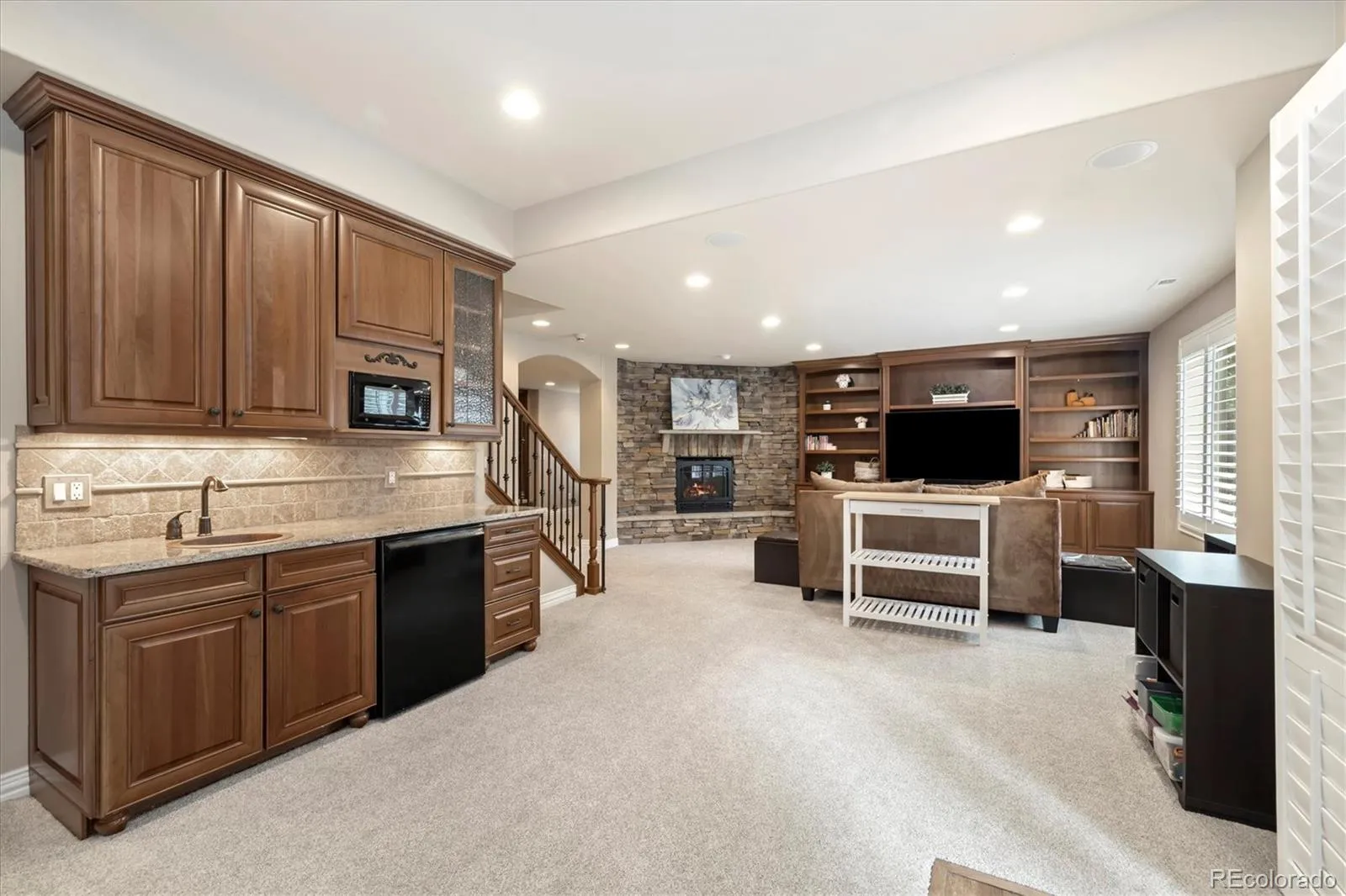 Tucked inside sought after Heritage West, along a quiet cut-de-sac with little traffic, this custom construction home by Celebrity Homes has been thoughtfully refreshed by owners who must relocate sooner than planned. The terraced landscape to the front entry with brand new garage doors set a polished first impression for what’s in store. Stepping inside you are greeted by an airy foyer and solid hardwood floors throughout that are finished in a soothing natural wood tone; perfect for any decor style. The stylish executive office space has been curated with custom finishes that make work from home days easy and practical for all your needs. Within the recently renovated kitchen, careful attention to details are evident throughout; featuring high-end appliances, huge walk-in pantry, retractable cook vent, gas cooktop, solid quartz countertops w/ extended kitchen island, and custom cabinets – perfect for those everyday and even special occasion needs. Adjacent to the kitchen is a sunny dining nook that overlooks the expansive deck for effortless indoor outdoor living. Rounding out the main level includes a spacious yet cozy family room w/ fireplace and custom shelves, formal dining room, powder bath, and a renovated mudroom. Unwind in the primary suite with the cozy gas fireplace, custom bookcase shelving, and a huge walk-in closet! The spa like 5-piece ensuite bathroom includes heated flooring, soaking tub, walk-in shower, and separate vanities. The three spacious guest bedrooms upstairs offer ensuite baths and walk-in closets. The fully finished basement rounds out this stunning home; enjoy the spacious media room w/ stone surround fireplace, custom bookshelves w/ media center, wet bar, and wine cellar w/ adjoining tasting room. The 5th bedroom in the basement offers a private ensuite. Heritage West amenities include: Community pool, Tennis Courts, Pickleball, Basketball, Garden, Green Spaces, Swim Team and robust Social Activities! Welcome home.