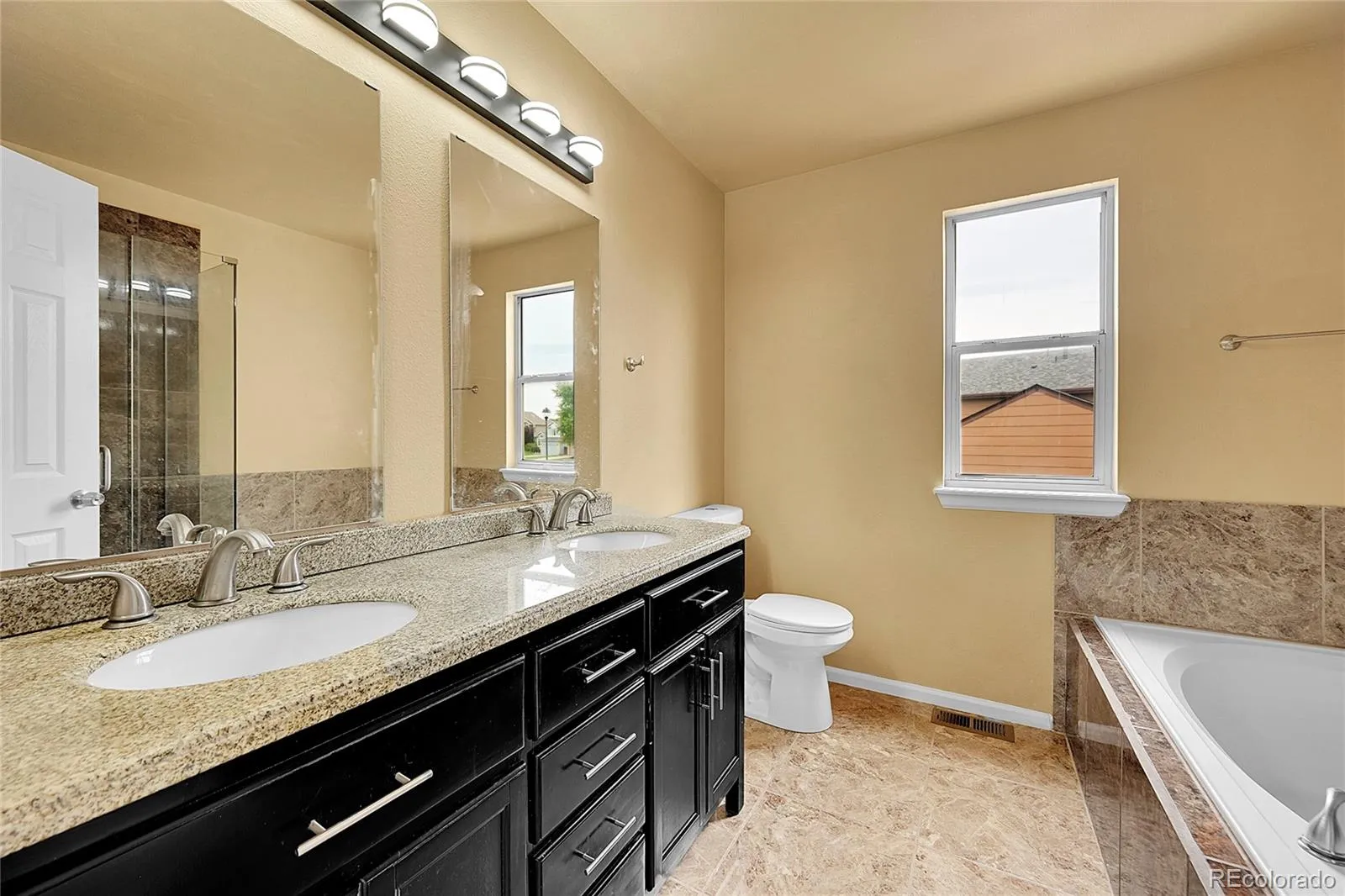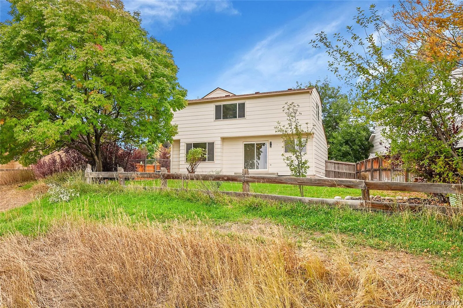 If you’ve been waiting for the ideal home on open space in one of the best neighborhoods… it’s here. This updated house sits on a private lot with trail on one side of home and open fields behind you. This house has privacy and mature landscaping in the heart of Highlands Ranch and walking distance to all the top rated public schools. Mature trees welcome you into this bright open floor plan. New flooring throughout main level with vaulted ceilings in family room and updated farm house light fixtures. New paint in the whole home with new trim and light fixtures. Kitchen has ample cabinets, clean appliances and views to open space. Fireplace in expansive living room sets the cozy mood. Large open dining area in front of patio doors that open to your backyard oasis. Newly poured concrete patio that gives you both privacy and views of Highlands Ranch rolling hills. This home has 4 bedrooms all on upper level with wonderful light in each room. The Primary bedroom has picturesque views of nature and a 5 piece bathroom with custom tile, bath tub and shower. There is a laundry room on the main floor in the bathroom right off the garage perfect for a mud room area. The basement has comfortable finishes to make into your own custom space by using as a bedroom or a flex space. There is even a storage area with rough in plumbing if you’d like to add an additional bathroom. Garage has an EV charging station installed in the garage. Walking distance to all schools, with Cresthill Middle and Highlands Ranch High school less than a 5 minute walk! You are down the street from Highlands Ranch rec center with pools and gym, parks, open space and trails, great Whole Foods, TjMaxx and all the Highlands Ranch amenities that make life so comfortable and easy here. Do not wait on the opportunity to have a home on open space with no neighbor and the ideal floor plan to match.