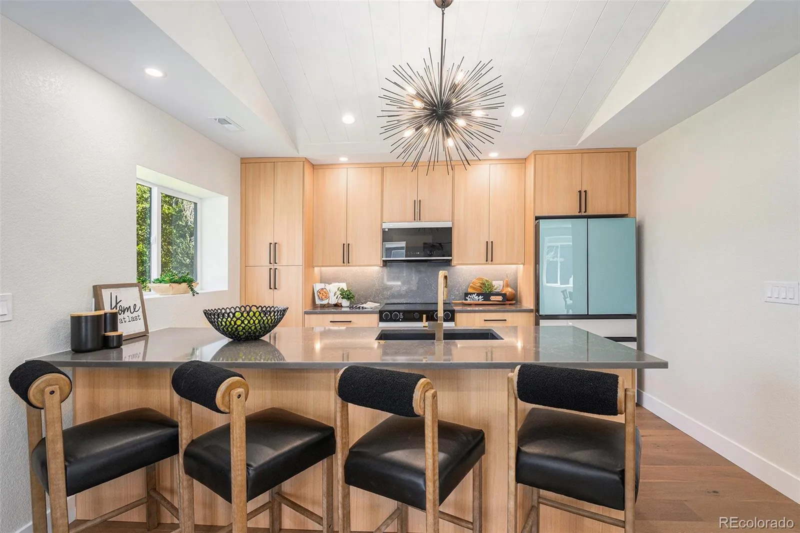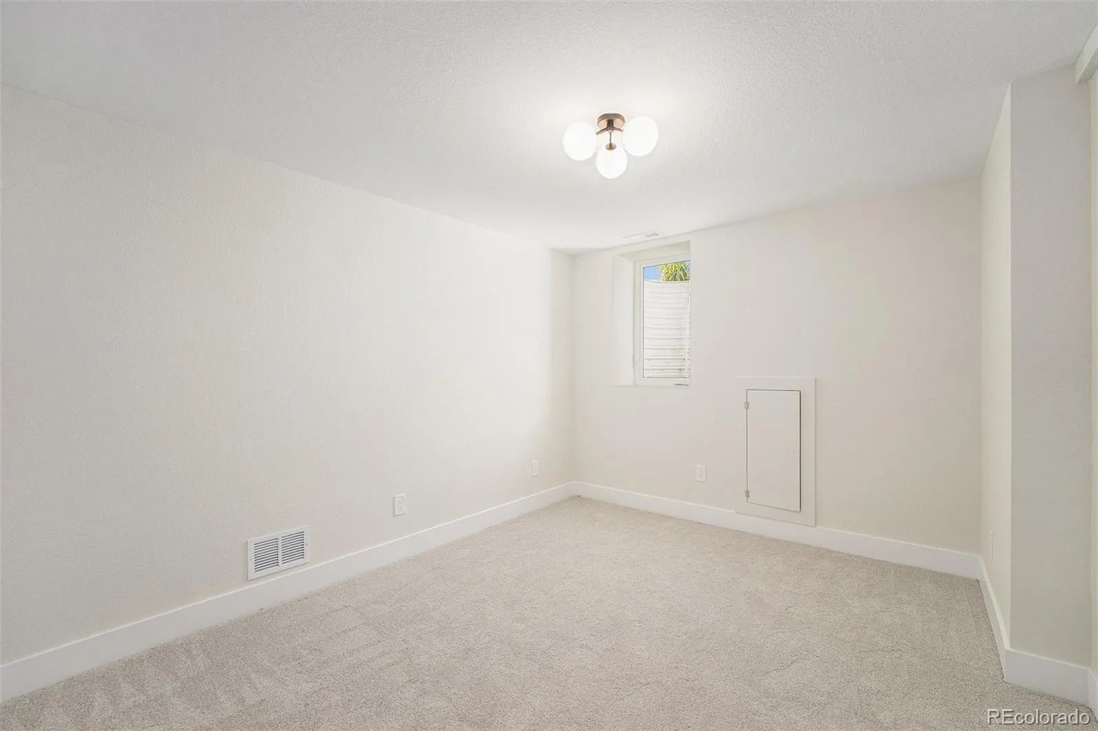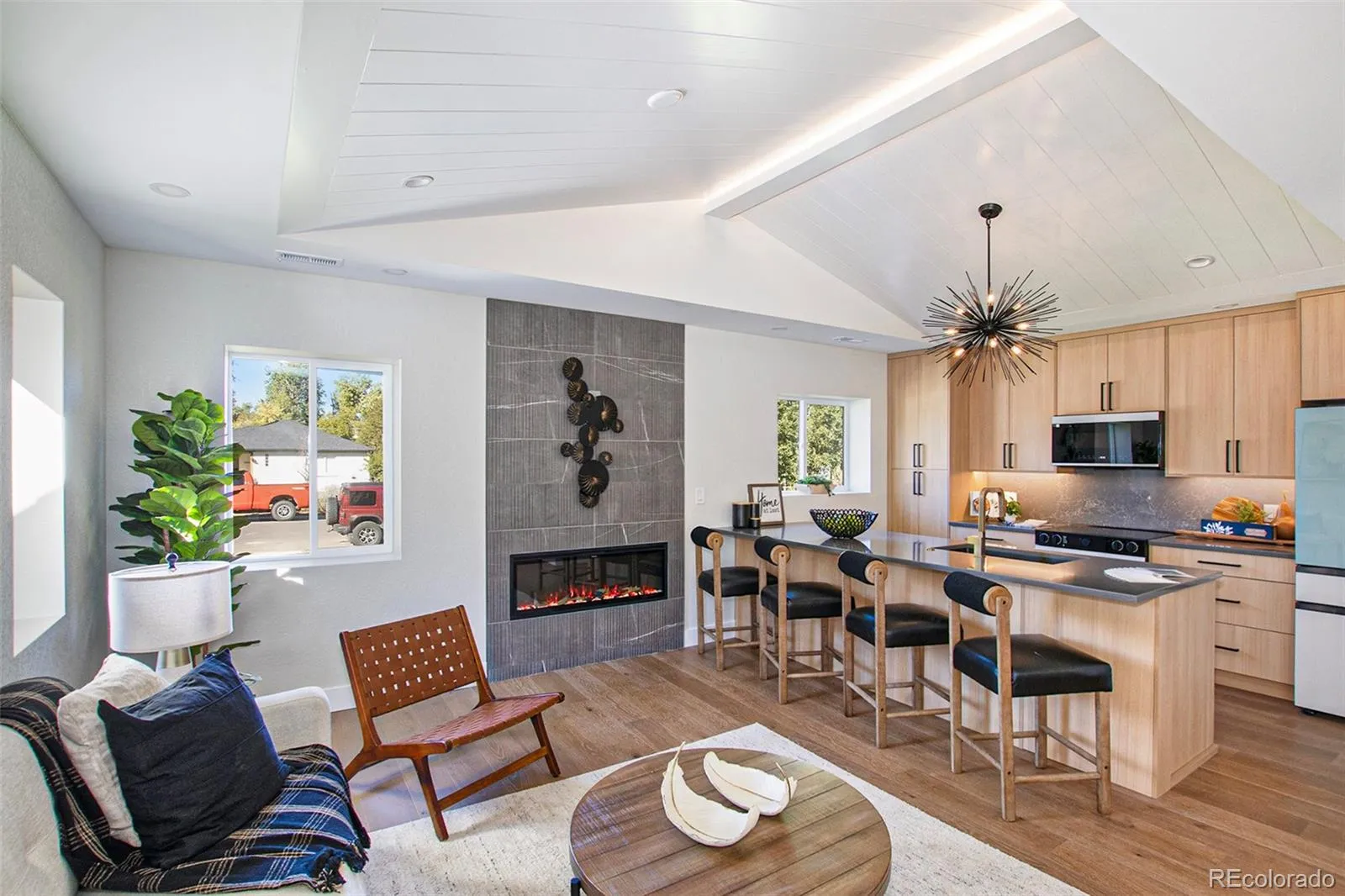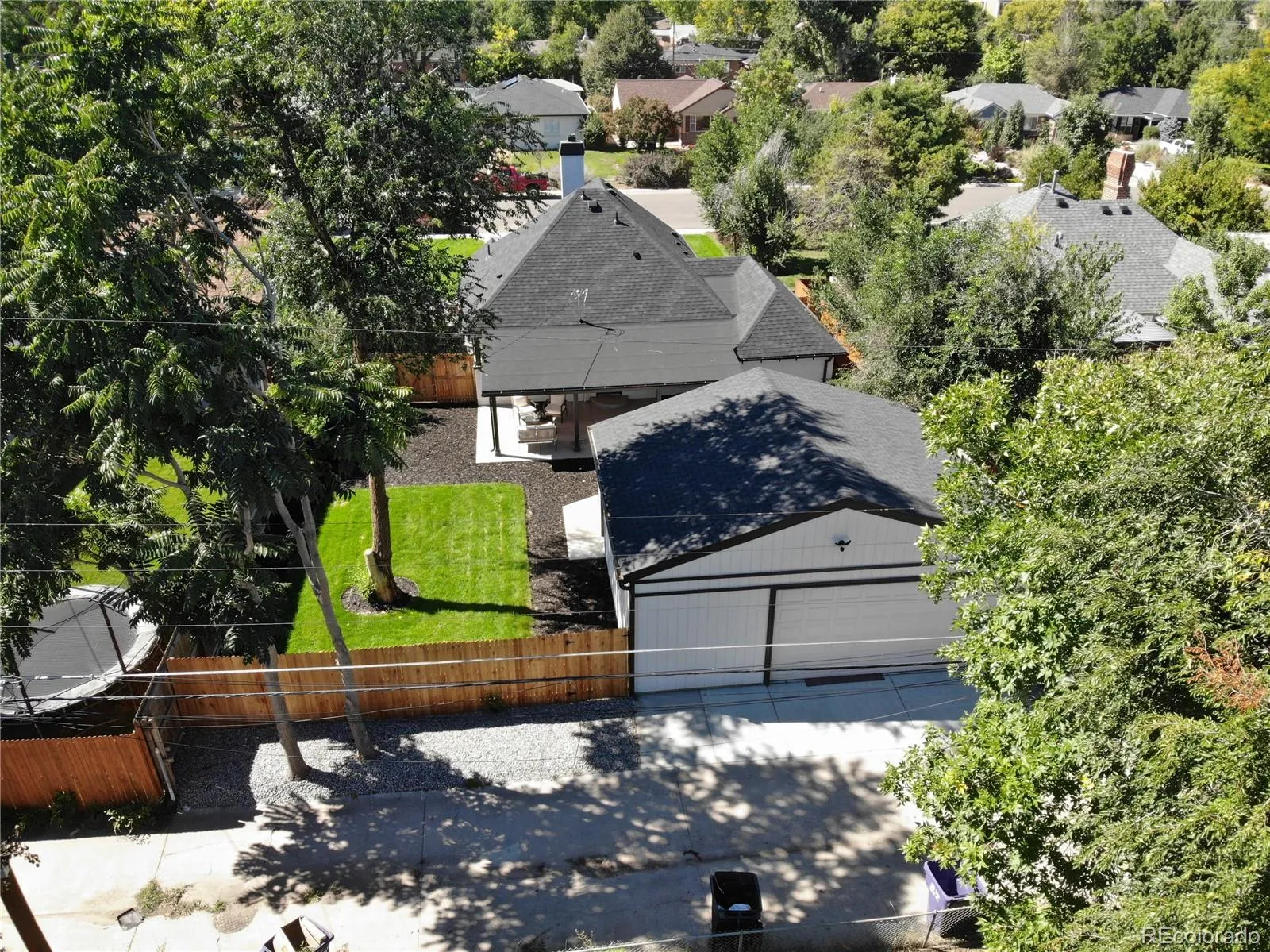 Exceptional quality and workmanship in this fully remodeled all-brick Park Hill home! This 2025 renovation was taken to the studs, offering 1,227 SF above grade plus a fully finished 973 SF basement. Main-level living features a spacious primary suite with a large walk-in closet and full bath, vaulted living room and kitchen ceilings clad in tongue-and-groove pine with LED accent lighting, a full bath, and a half bath. The basement offers three conforming bedrooms and a three-quarter bath, perfect for guests or family. Every system is new: roof, sewer line, electrical (including panel), plumbing, furnace, central A/C with ductwork, windows, solid core doors, and lighting throughout. Enjoy all-new engineered hardwoods, custom tile work, electric fireplace, and modern appliances. Outdoors, relax under the covered patio with T&G wood ceiling and fan, or on the stamped concrete front patio and custom poured walkway. Enjoy secure parking, storage or workshop in the oversized 2-car garage with separate lock-off space/workshop. Fully updated landscaping, fresh interior and exterior paint, and a large 7,500 SF lot complete this turnkey masterpiece. Perfect blend of classic Park Hill charm and modern luxury!