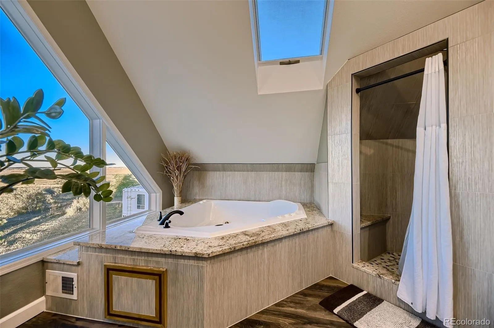 This is the perfect property for privacy and pristine mountain views. This custom home sits on 80 acres surrounded by thousands of acres of rolling ranch land and incredible views of Pike’s Peak from inside and outside the home. The passive solar design will save you money on monthly utilities and provides abundant natural lighting and 365 degree panoramic views. The entire second floor is a private suite including a large bedroom, private laundry, a large walk-in closet, spacious bathroom and a reading nook with window seat. The Gourmet kitchen was recently remodled. Enjoy the granite island, upgraded appliances, walk-in pantry and it opens up to the large, wrap-around, maintenance- free, teak deck. The walkout basement has nine-foot ceilings & is open and ready for an additional bedroom, bathroom, guest kitchen, home gym and more. Additionally, there’s a partially completed in-law apartment over the 3 car garage.