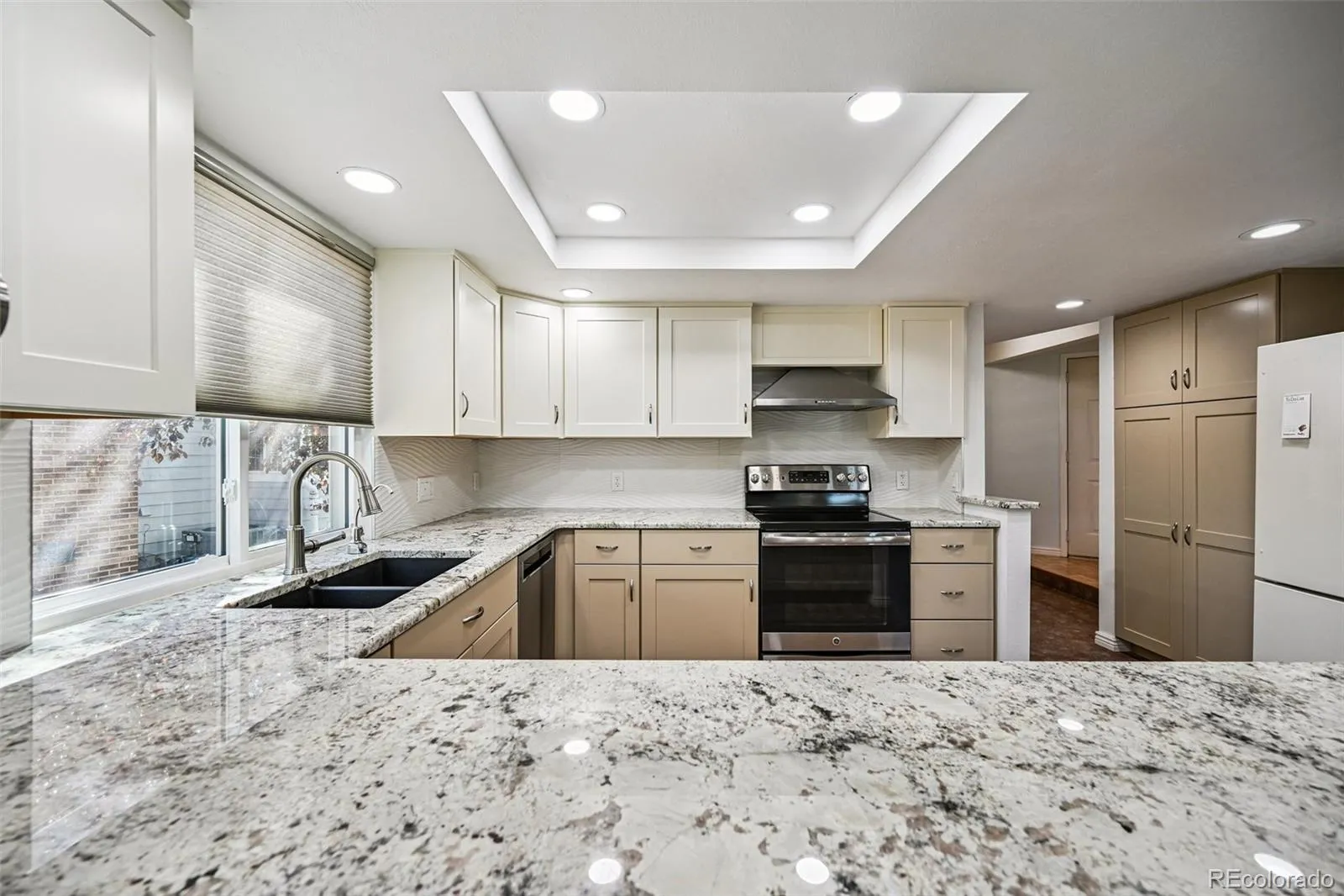 Imagine waking up in this beautifully updated two-story home tucked into a quiet cul-de-sac of Centennial, CO. This 3-bedroom, 2.5-bath property features 1,978 square feet above grade plus a 931-square-foot basement (372 finished), attached 2-car garage, and a lush 9,627-square-foot lot with a stunning backyard. The main floor offers a welcoming living room w/a grand 2-story wood-burning fireplace, an updated kitchen with granite countertops, textured backsplash, abundant cabinetry and pantry space, and a dining area that looks out in to the yard. Stylish black metal railings add a modern touch. Upstairs you’ll find a spacious loft, a large primary suite with walk-in closet, a luxurious bath with freestanding tub, oversized walk-in shower with seating, and double sinks, plus an additional bedroom and full bath. The basement hosts the non-conforming 3rd bedroom just waiting to be personalized. Don’t forget the abundant storage space of the unfinished portion of the basement.