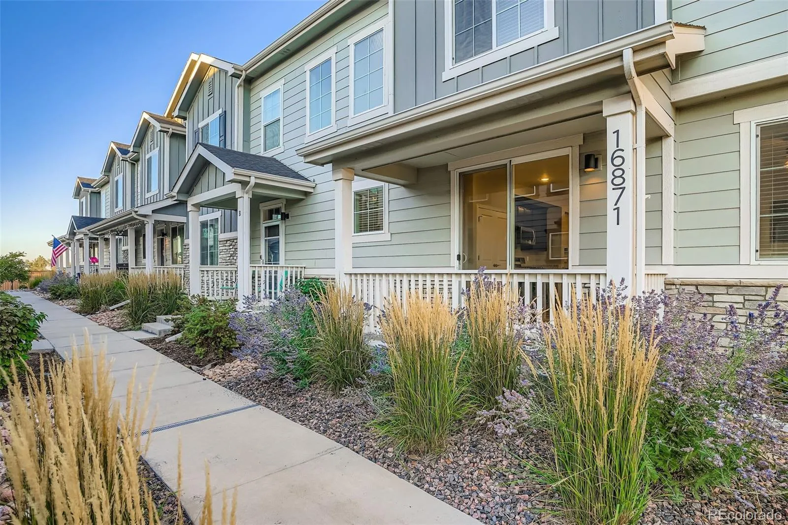 Welcome to this stunning 2021 Lokal townhome offering 1,846 sq ft, 3 bedrooms, 3 baths, and a 2-car garage. The main level features new wood floors and fresh carpet throughout. The chef’s kitchen shines with quartz counters, stainless steel appliances, a large pantry, and an oversized eat-in island. Upstairs, the primary suite boasts a spa-like bath and custom walk-in closet. Enjoy community amenities including a park and basketball court. Ideally located near E-470, Hwy 76 & 85, with quick access to DIA and Prairie Center for shopping and dining—this move-in ready home blends style, comfort, and convenience.