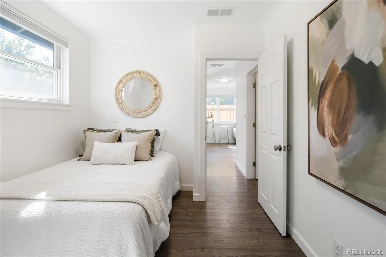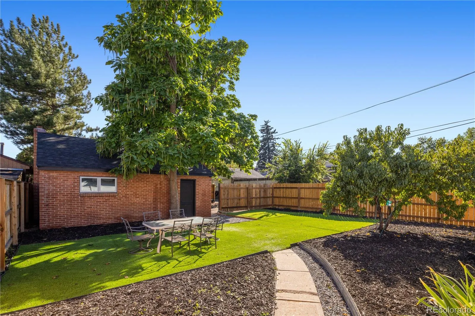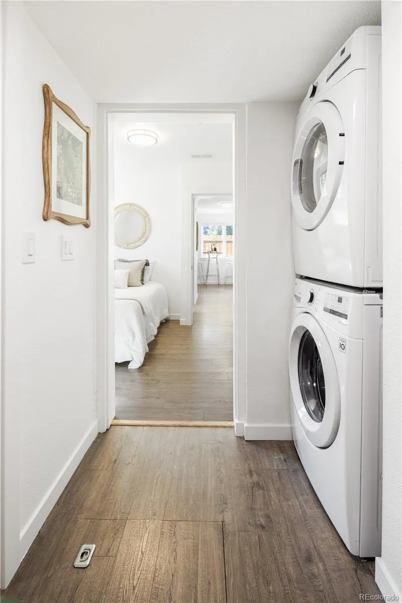 Updated single-family home set back from the street in Denver’s Potter Highlands. Comprehensive 2020 remodel plus extensive upgrades through 2025: new roofs on house and garage, full exterior paint, Pella wood-clad windows, new front and storm doors, new fence, fresh landscaping, and a revived peach tree producing hundreds of peaches each year. Interior updates include full paint, custom Bali top-down shades, new dimmable lighting and fixtures, enlarged primary closet with new sliding doors, counter-depth refrigerator, new kitchen faucet and disposal, and added new wall and ceiling insulation. Oversized two-car garage with storage loft. Large private yard provides rare private outdoor sanquary in this sought-after neighborhood.