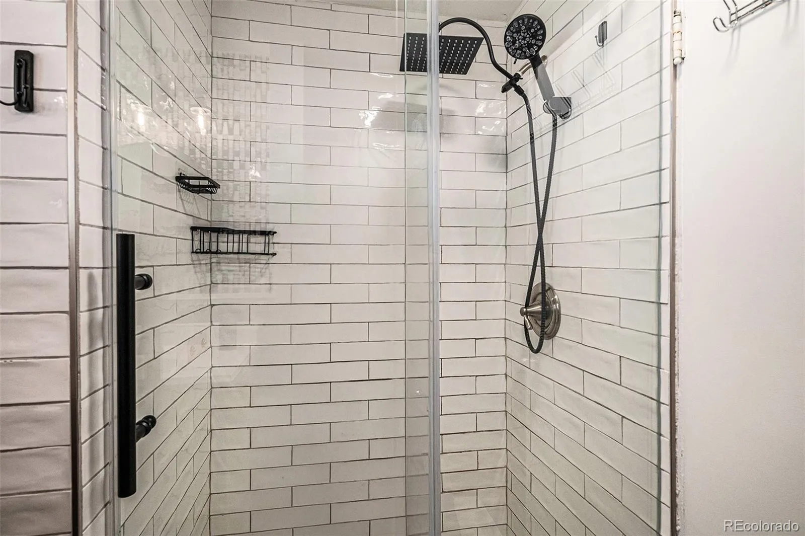 This beautifully maintained brick home offers the perfect blend of charm, functionality, and modern updates all on a desirable corner lot with mountain views. The main level showcases real hardwood flooring, a bright and inviting living room with a large picture window, built-in storage, and a cozy bench seat. Two spacious bedrooms and a stylishly updated three-quarter bath provide comfortable main-floor living. The kitchen delights with granite countertops, tile backsplash, stainless steel appliances (refrigerator, gas range, dishwasher, range hood, disposal), pull-out pantry shelves, and recessed lighting. The finished basement expands your living space with a family room featuring luxury vinyl plank flooring, a large bedroom with walk-in closet, and a full en suite bath with both a soaking tub and separate tiled shower. A dedicated laundry area (washer and dryer included) adds convenience. Enjoy Colorado living in the fully fenced yard with mature trees, sprinkler system, covered patio, shed, portable fire pit, and dog house. The detached 2-car garage offers an automatic opener and built-in shelving. Additional highlights include central A/C, radon mitigation system, composition roof, and level yard. Located minutes from parks, trails, shopping, and dining, with easy access to I-25 for a quick commute to Downtown Denver or the mountains. Move-in ready and waiting for you!