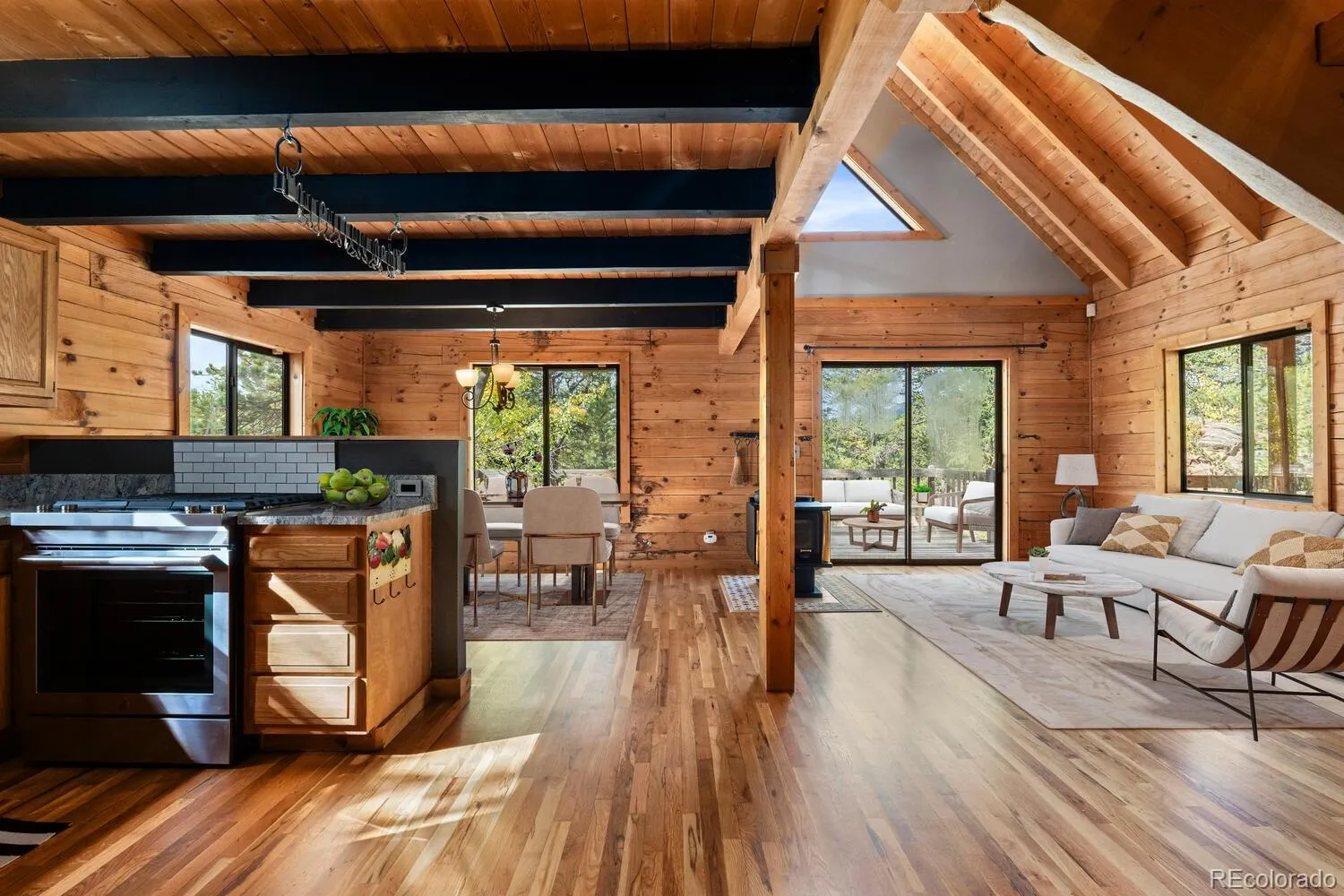 Welcome to 179 Spruce Way, a stunning log cabin retreat nestled on 2 private acres with lakefront access just minutes from historic Black Hawk. Ready for a new buyer after the last one had a change of heart. This beautifully updated 3-bedroom, 2-bath home combines rustic mountain charm with modern upgrades, offering a peaceful escape with easy access to year-round adventure. Step inside to an inviting open floor plan. A cozy wood-burning stove anchors the living area, complemented by vaulted ceilings, warm natural light, and fresh neutral paint. The spacious kitchen features new appliances and abundant counter space, perfect for preparing meals after a day of hiking, skiing, or exploring nearby casinos and entertainment.