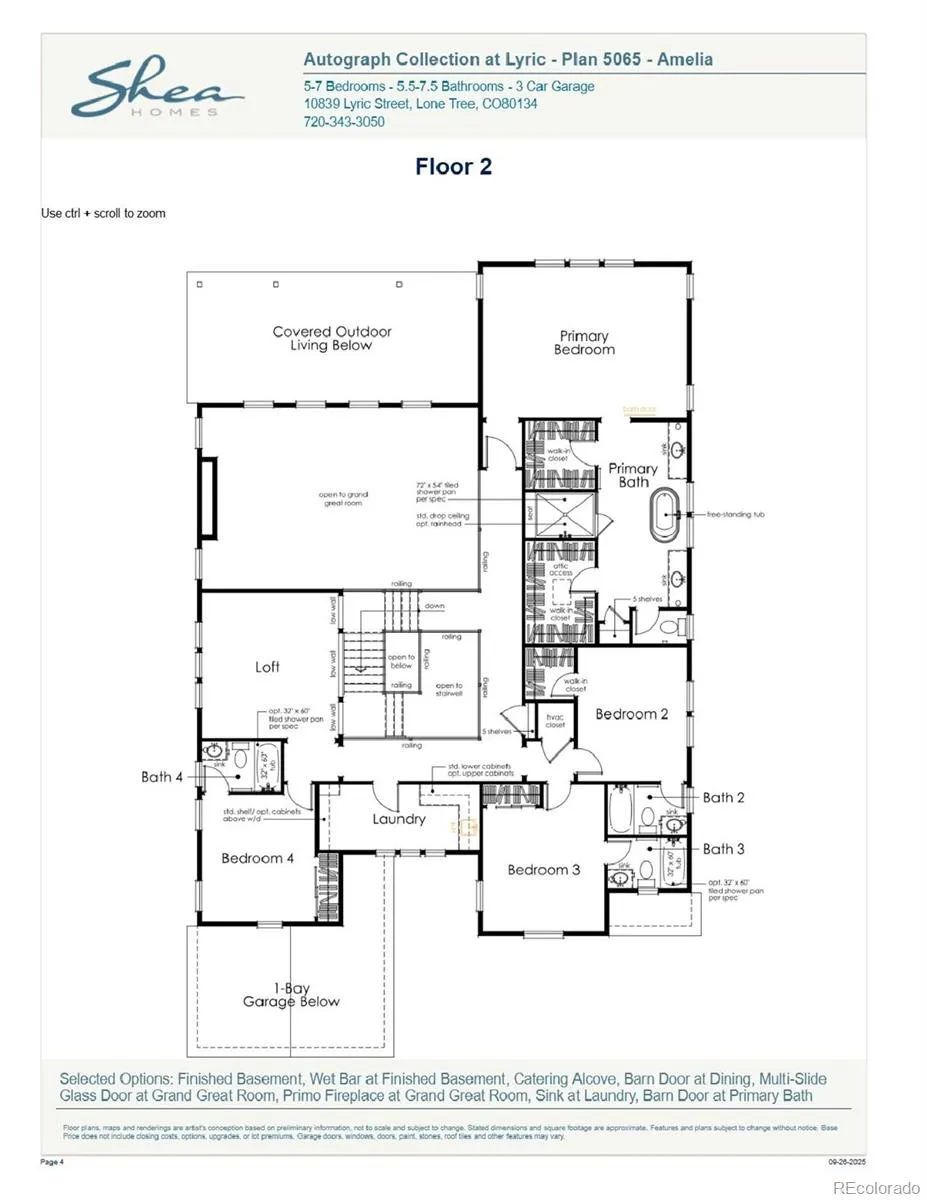 Gorgeous two story home on a corner lot backing to open space in Lyric at Ridgegate . This home has 6 bedrooms, 6.5 bathrooms, fireplace with full height stacked stone surround, prep kitchen and catering alcove, loft, finished basement with wet bar, study, covered patio, and 3 bay split garage with storage. Design finishes include Kentwood engineered wood floors Bohemia collection in Brushed Oak North Shore, MSI engineered stone countertops with 6cm waterfall on island in Calacatta Prado, and Yorktowne Brockton cabinets in White Icing and Maple Dockside. Please contact a community representative for details.