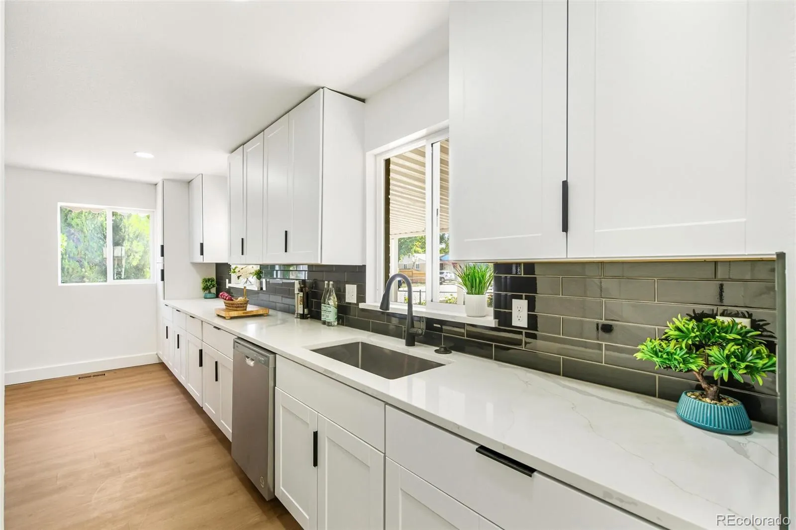 Welcome to this beautifully updated ranch style brick house on a corner lot with a basement that has a private entrance and NO HOA. This house offers fully upgraded 6 bedrooms and 2 bathrooms. Upon entrance on the main floor, you will find luxury vinyl and tile flooring throughout, fresh paint and Kitchen with quartz countertop, stylish backsplash, and stainless-steel appliances. The finished walkout basement offers 3 bedrooms( 1 bedroom is non conforming), 1 bathroom, laundry room, and additional living room. This walkout basement set up opens up possibilities for extra leisure space, extended family or house hacking. The fenced back yard with covered patio provides plentiful space for entertaining and gardening. New Electric panel and all windows are new.This area is close to highways, dining, shopping, entertainment and other amenities. Schedule your showing in person!