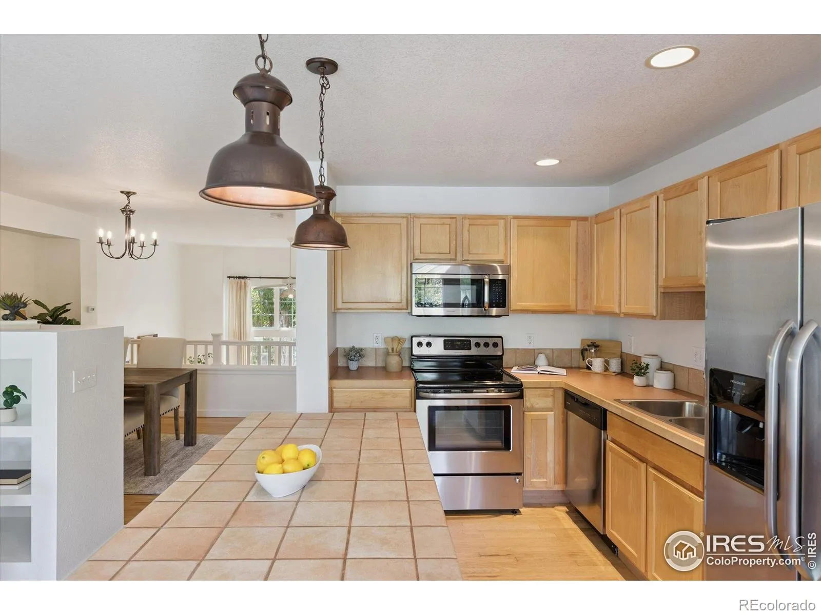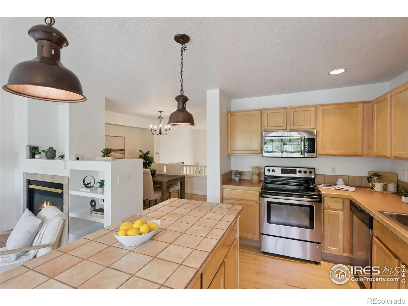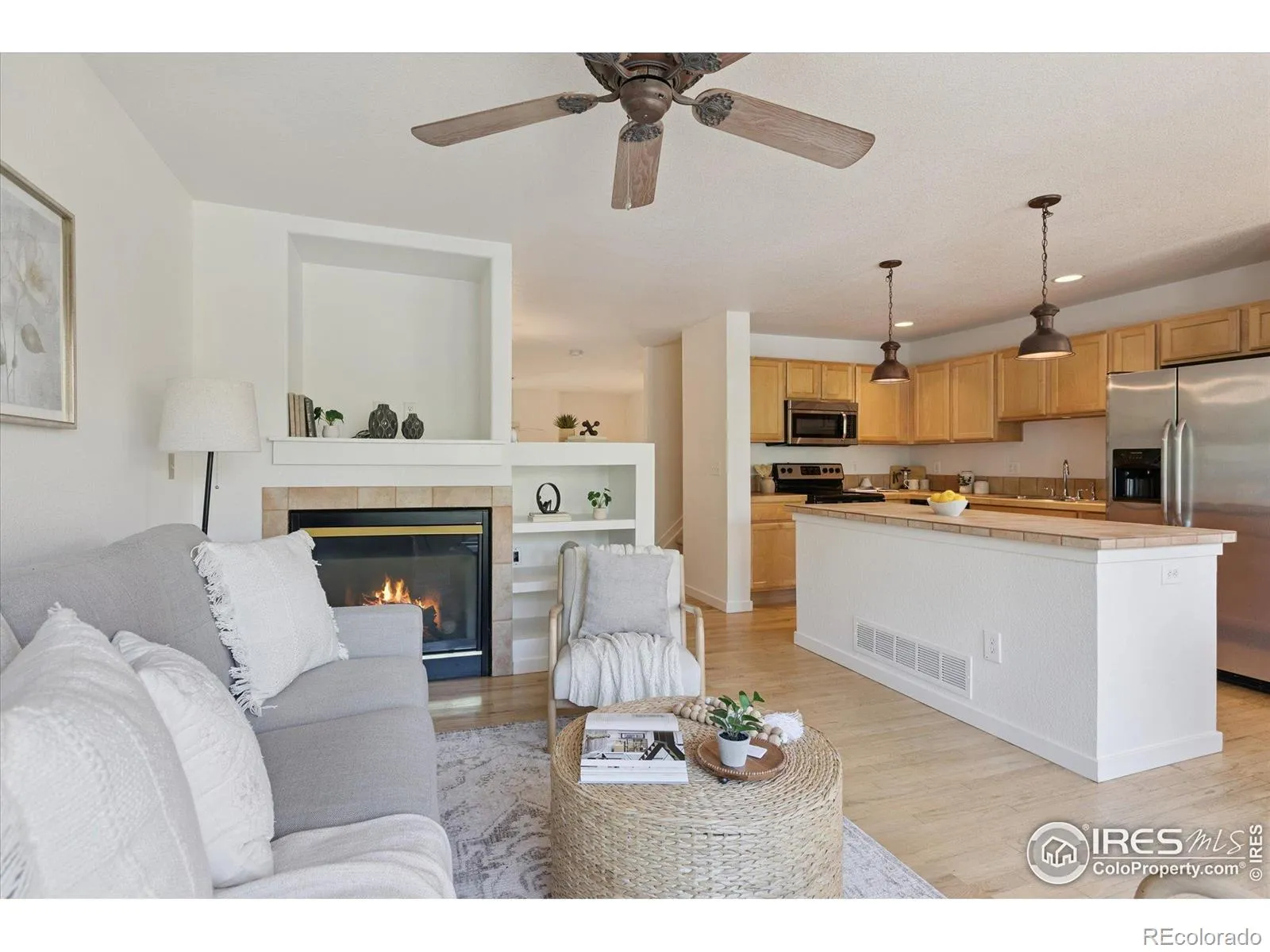 Beautiful Townhome in Indian Peaks Neighborhood. Bright, open floor plan, fully repainted with new carpeting throughout. Mountain views from the back deck. Quiet, interior location in front of a private park area. Large master suite with a five-piece master bath. Laundry room on the upper level with bedrooms. See-through gas log fireplace in dining room and family room. Great open kitchen. There is ample storage throughout, including an unfinished basement. Private front porch area, which is fenced in. Attached 2-car garage. Air conditioned. The townhome is in great condition. Move-In Ready!