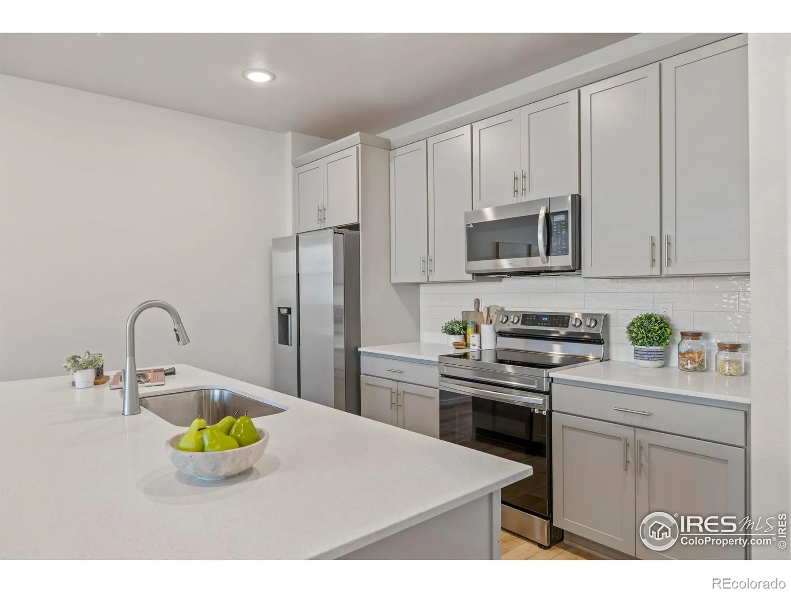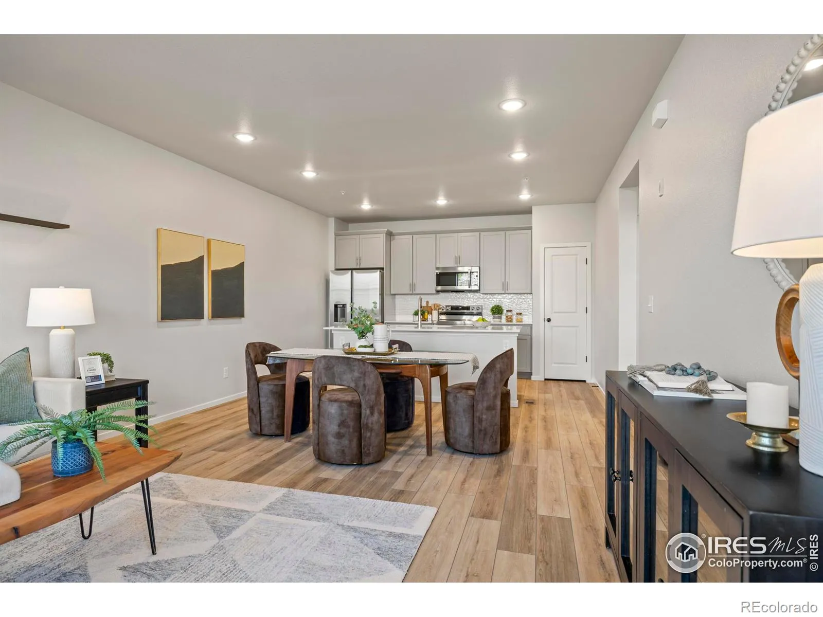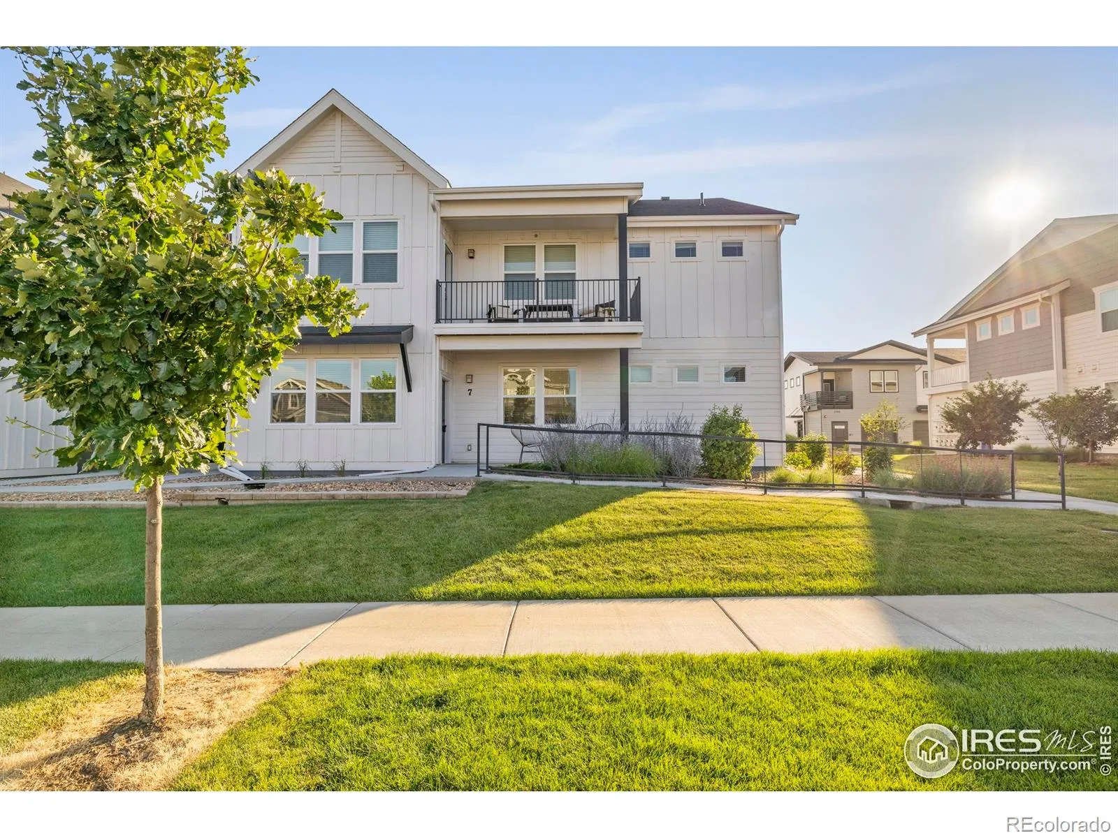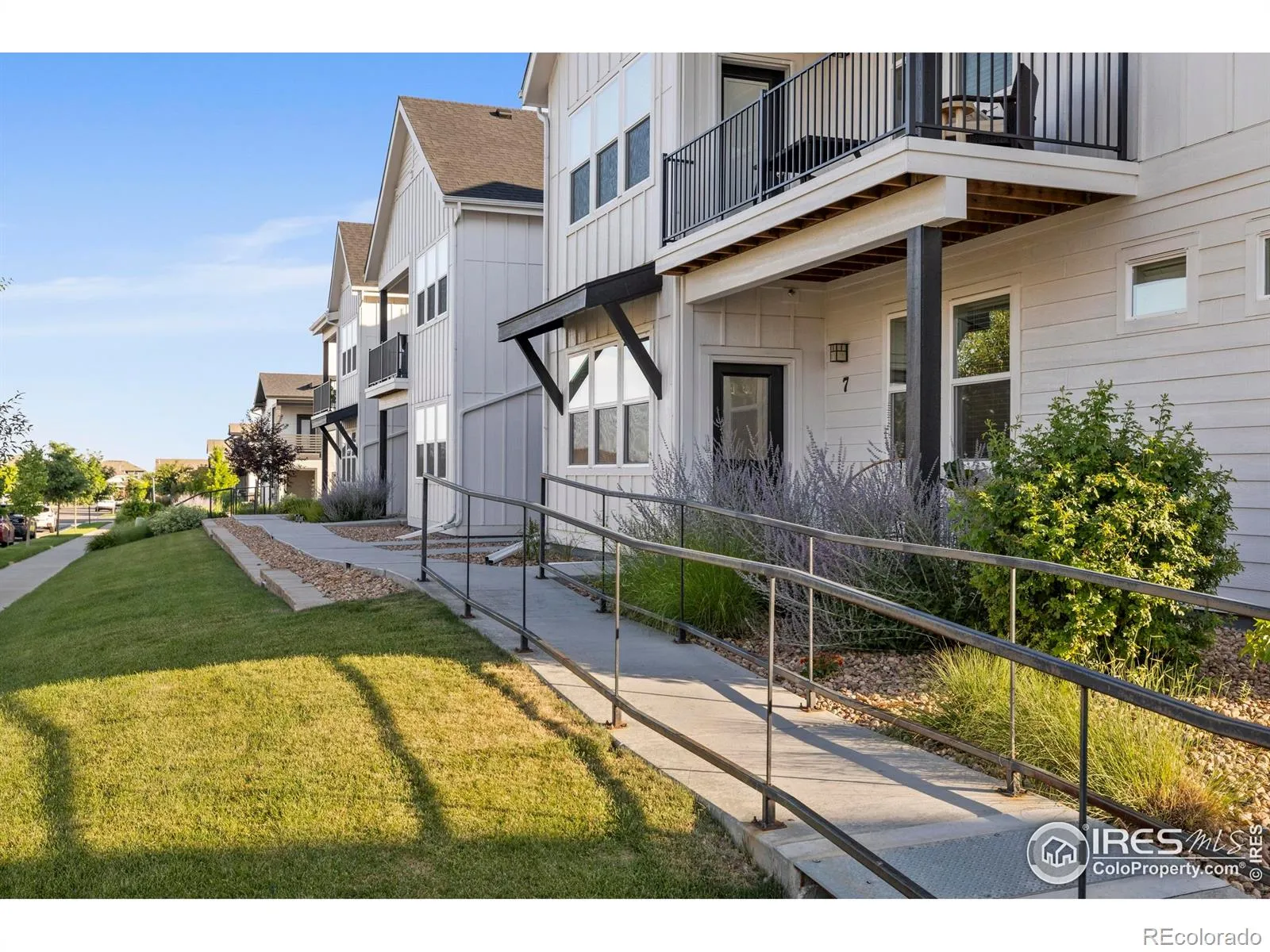PRICED OVER $44,000 BELOW the builder’s current inventory for this model, this 2022-built end-unit condo offers both immediate equity and long-term income potential. Whether you’re looking for a turnkey primary home, a low-maintenance lock-and-leave, or an attractive rental investment, this ground-level property checks every box. Designed with a modern farmhouse feel, the 2-bedroom, 2-bath layout delivers comfort, style, and accessibility-with ramp entry and no stairs. Set in a quiet location that fronts to grassy open space, the east-facing patio offers a peaceful retreat with shade for summer evenings. From here, you’re steps from scenic trails, neighborhood dining, and the Raindance River Resort Pool-complete with lazy river, water slide, and walk-in beach. Inside, the bright open floor plan features a welcoming living area, a gourmet kitchen with quartz counters, shaker cabinetry, center island, pantry, and stainless appliances, plus a dining area for everyday meals or entertaining. The spacious primary suite showcases luxury vinyl flooring, a spa-inspired bath with a walk-in tiled shower, dual vanities, and a generous closet. The secondary bedroom offers flexibility for guests, an office, or short-term rental potential-complete with its own full bath. Additional highlights include attached one-car garage with direct entry through the laundry area, keyless entry + storage closet and additional street parking right out front for easy hosting. Located within one of Northern Colorado’s most desirable master-planned communities, you’ll enjoy golf cart access to restaurants, parks, and resort-style amenities. Absolutely turnkey and move-in ready-priced to sell with unmatched value compared to new construction. Don’t miss the 3D walkthrough on the property website!