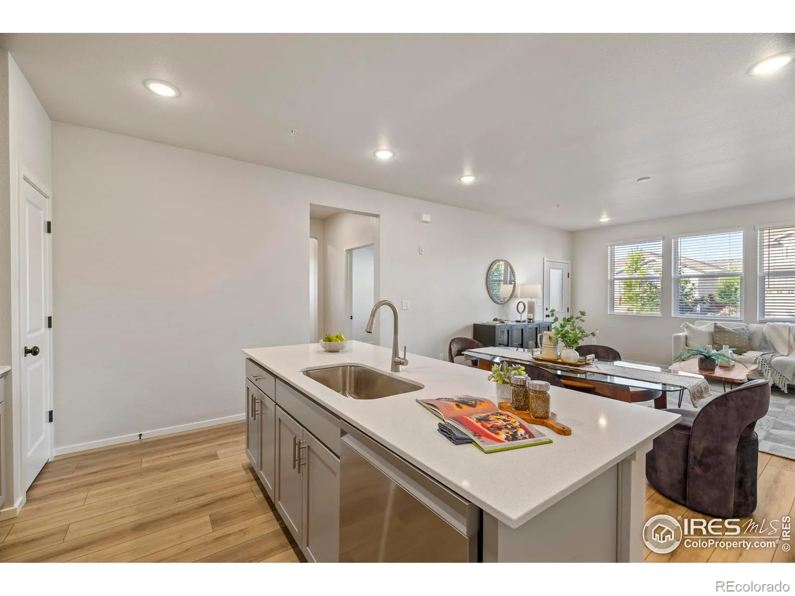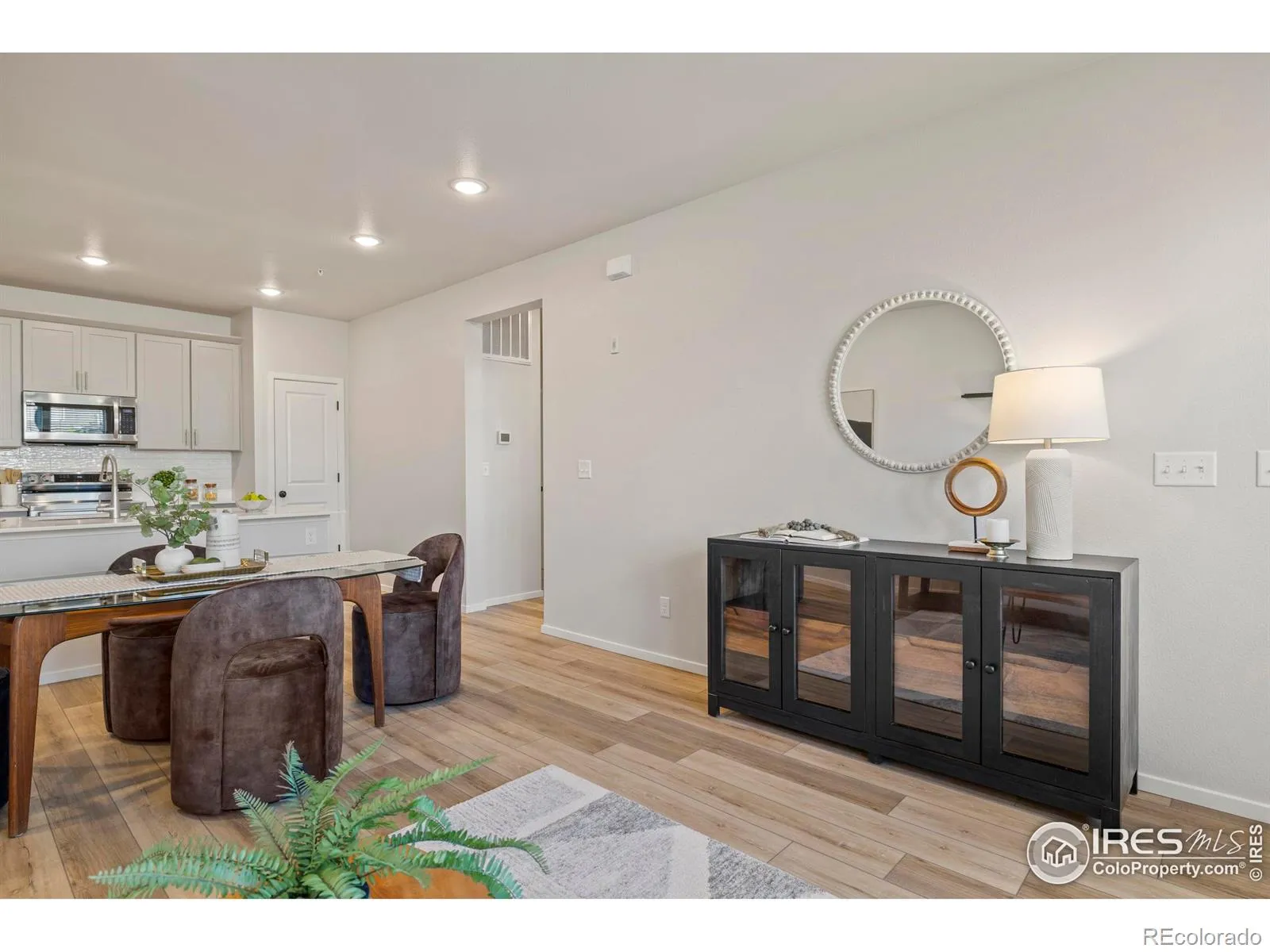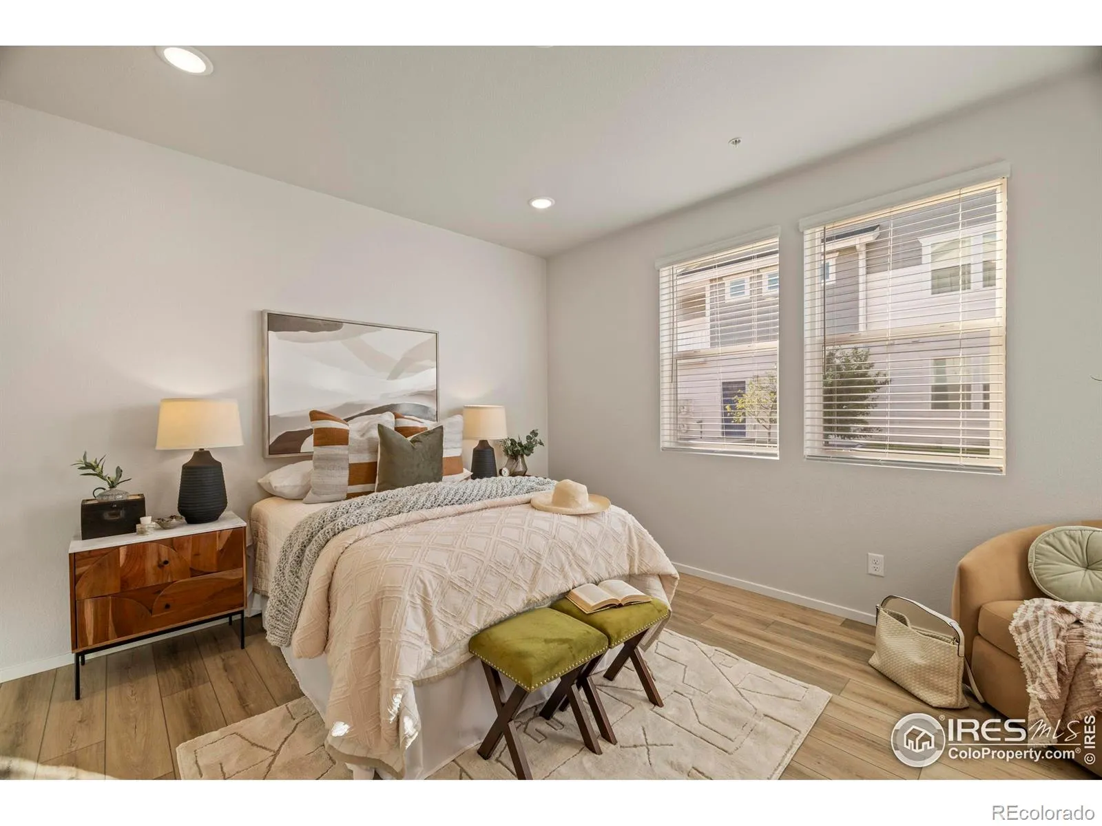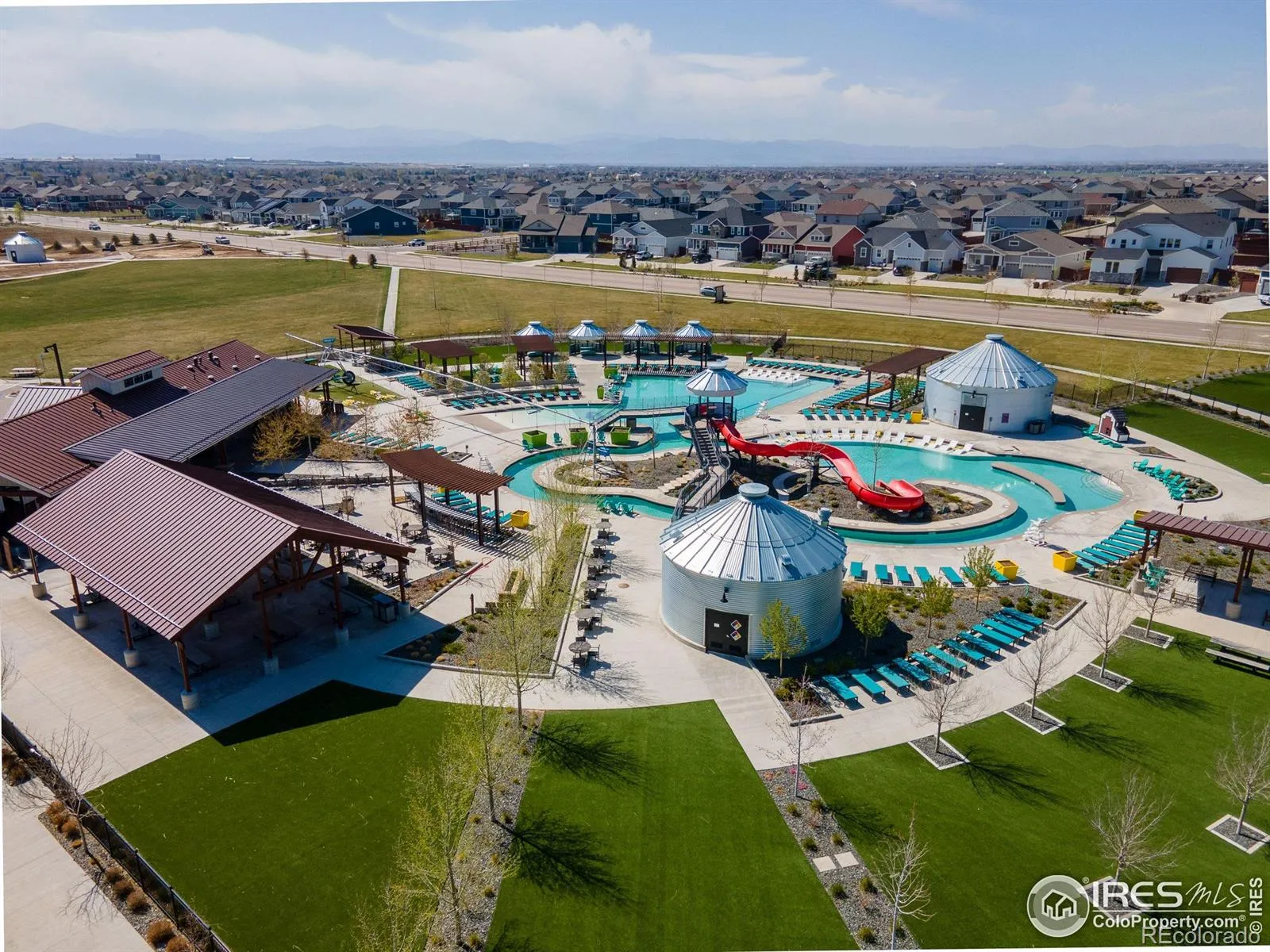 PRICED OVER $44,000 BELOW the builder’s current inventory for this model, this 2022-built end-unit condo offers both immediate equity and long-term income potential. Whether you’re looking for a turnkey primary home, a low-maintenance lock-and-leave, or an attractive rental investment, this ground-level property checks every box. Designed with a modern farmhouse feel, the 2-bedroom, 2-bath layout delivers comfort, style, and accessibility-with ramp entry and no stairs. Set in a quiet location that fronts to grassy open space, the east-facing patio offers a peaceful retreat with shade for summer evenings. From here, you’re steps from scenic trails, neighborhood dining, and the Raindance River Resort Pool-complete with lazy river, water slide, and walk-in beach. Inside, the bright open floor plan features a welcoming living area, a gourmet kitchen with quartz counters, shaker cabinetry, center island, pantry, and stainless appliances, plus a dining area for everyday meals or entertaining. The spacious primary suite showcases luxury vinyl flooring, a spa-inspired bath with a walk-in tiled shower, dual vanities, and a generous closet. The secondary bedroom offers flexibility for guests, an office, or short-term rental potential-complete with its own full bath. Additional highlights include attached one-car garage with direct entry through the laundry area, keyless entry + storage closet and additional street parking right out front for easy hosting. Located within one of Northern Colorado’s most desirable master-planned communities, you’ll enjoy golf cart access to restaurants, parks, and resort-style amenities. Absolutely turnkey and move-in ready-priced to sell with unmatched value compared to new construction. Don’t miss the 3D walkthrough on the property website!