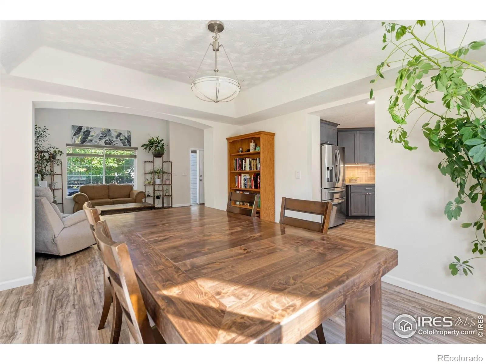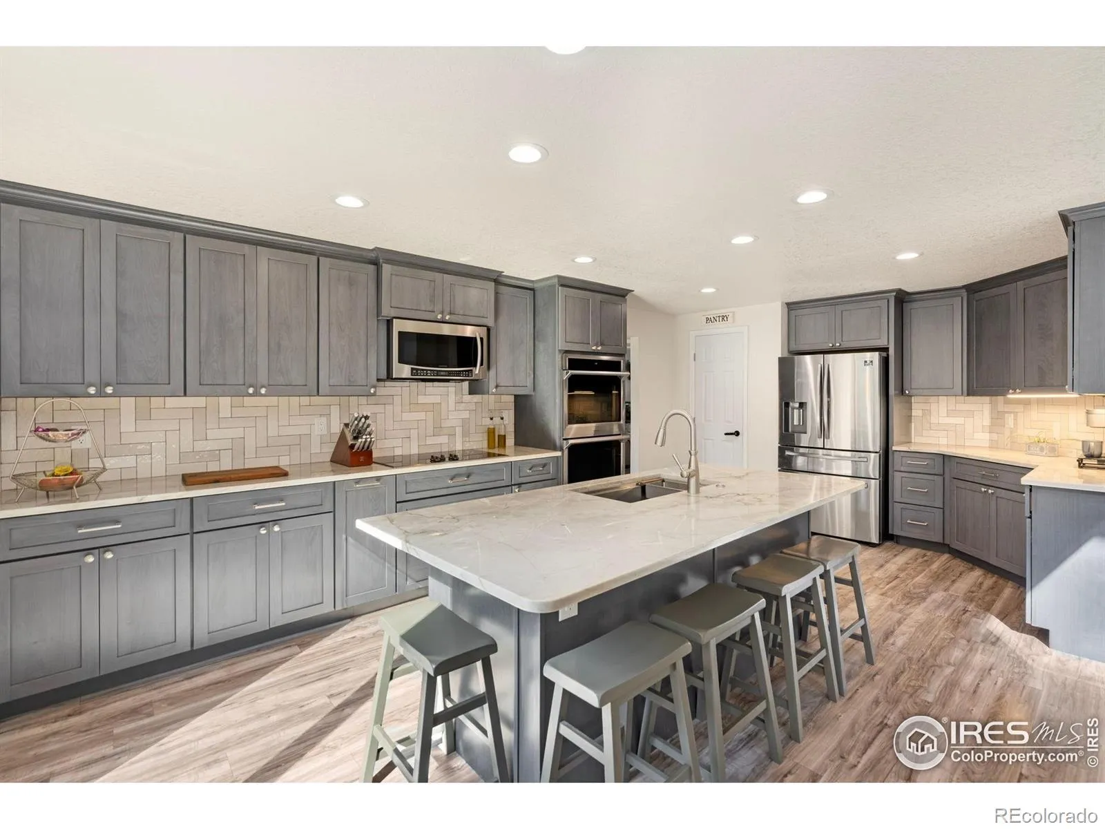This beautifully updated Pleasant Valley home sets the tone for a turn-key move-in. Greet guests in the 2 story entryway with vaulted ceilings and an open formal living and dining room with LVP flooring, that provides timeless entertaining spaces. The inviting family room is bathed in natural light and boasts a cozy gas fireplace. The completely renovated kitchen is a showstopper, featuring soft-close drawers and cabinets with pull-outs, gorgeous granite countertops, and a center island with ample seating – perfect for gatherings. Step outside to a huge stamped concrete patio – ideal for summer BBQ’s and evening relaxation – plus a fully fenced yard with plenty of play space. Mature trees provide plenty of shade and privacy, and a separate dog run makes this a pet-friendly haven. The main level bedroom offers flexibility as a private guest room or home office. Upstairs, the spacious primary suite shines with a newly renovated five-piece bath featuring heated floors, a jetted soaking tub, and dual vanities. The partially finished basement offers an additional bedroom and room to grow – whether you envision a media space, fitness area, or additional bedrooms. Beyond the home, enjoy Longmont’s active lifestyle with nearby parks, trails, and open space just minutes away. Spend weekends exploring Union Reservoir, biking along St Vrain Greenway, or strolling through downtown Longmont’s local shops, breweries, and restaurants. Easy access to neighborhood schools and commuter routes makes this location as convenient as it is vibrant.