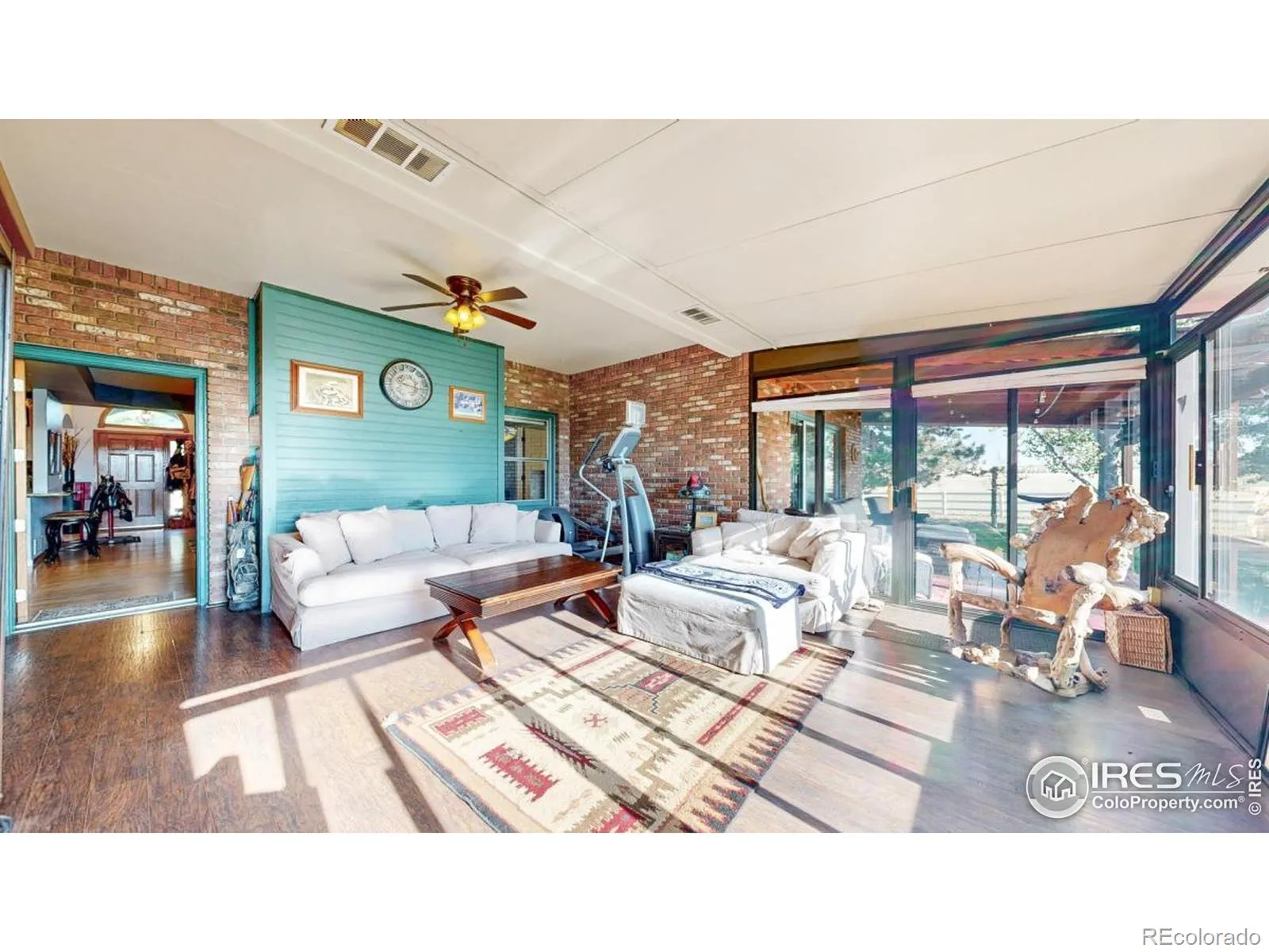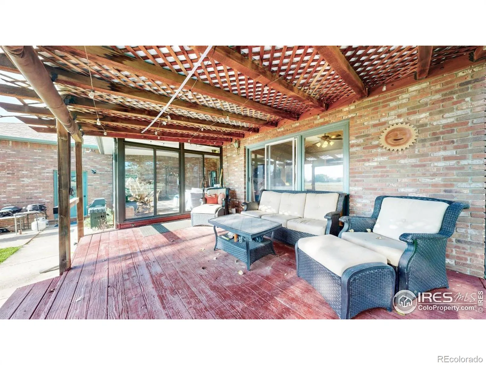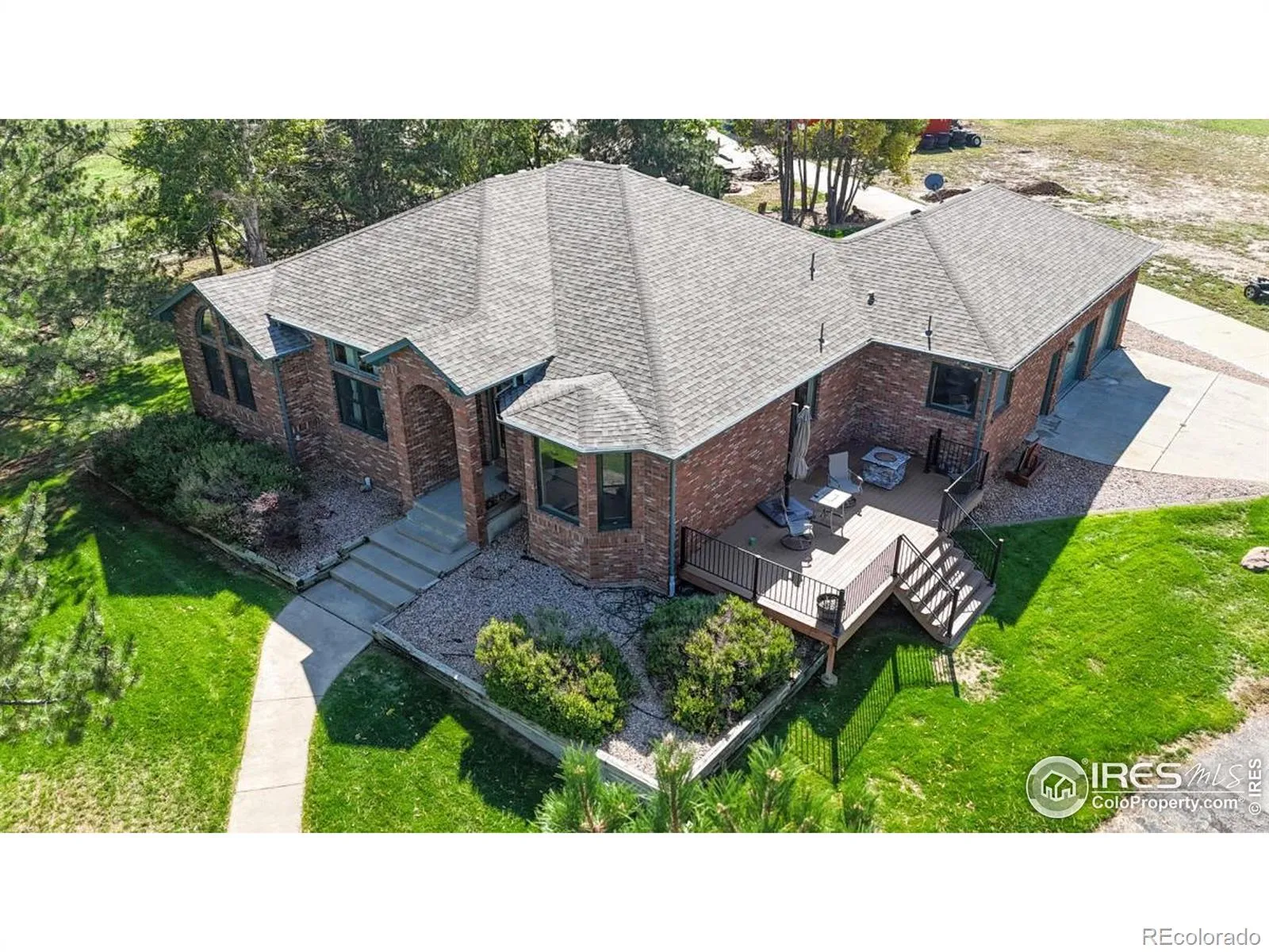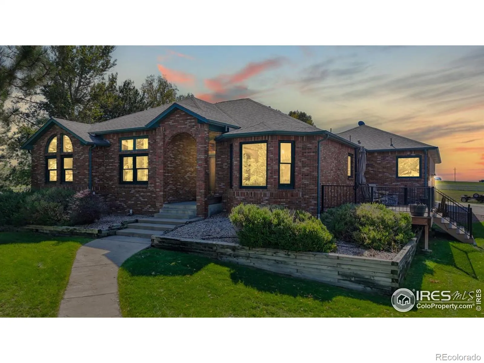 HORSES ALLOWED, TOYS And RV’s. Gorgeous All Brick Ranch Home on Over 7 Acres w/ Spectacular Views. Walk Out of Your Primary Bdrm or Sunroom to the Deck. Warm, Inviting Floor Plan, with Great Attention to Detail & Quality. Basement Professionally Finished. Property Surrounded by Carefree Vinyl Fencing With Security Gates. All Steel 2000+ sq. ft. Insulated/Wired Shop with 16 Door. Plenty of Room for your RV. Easy access to I-25 Makes Commutes a Breeze.