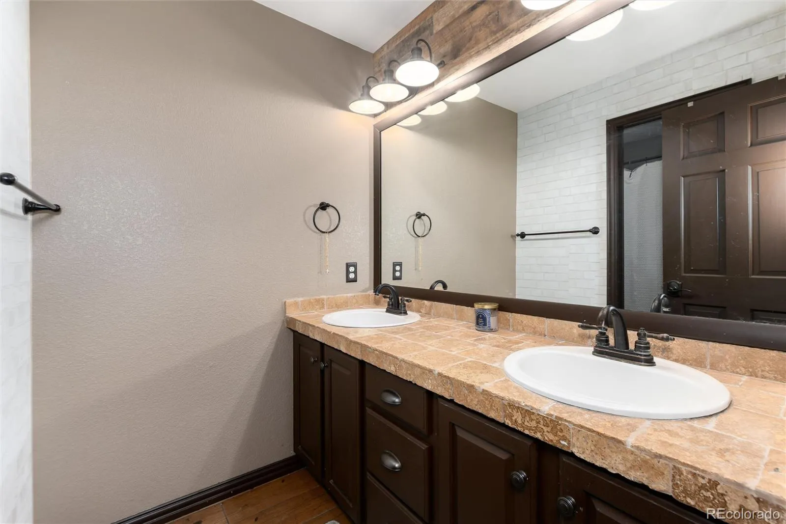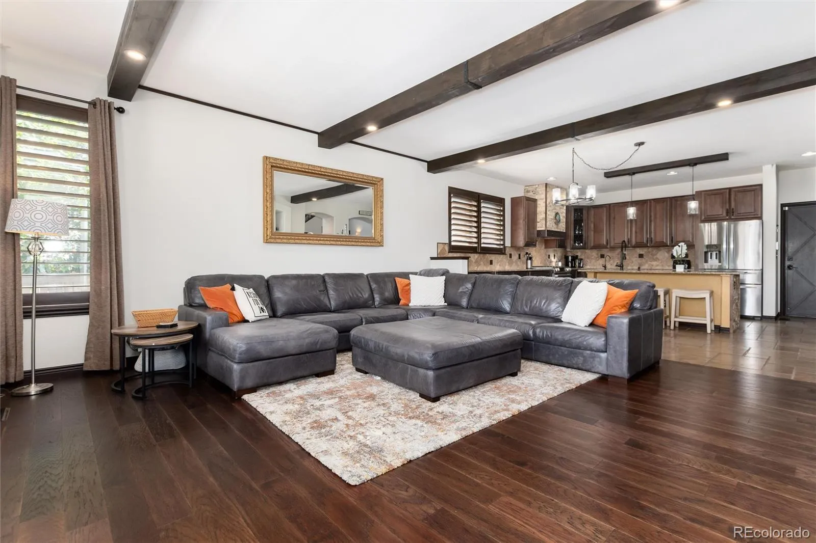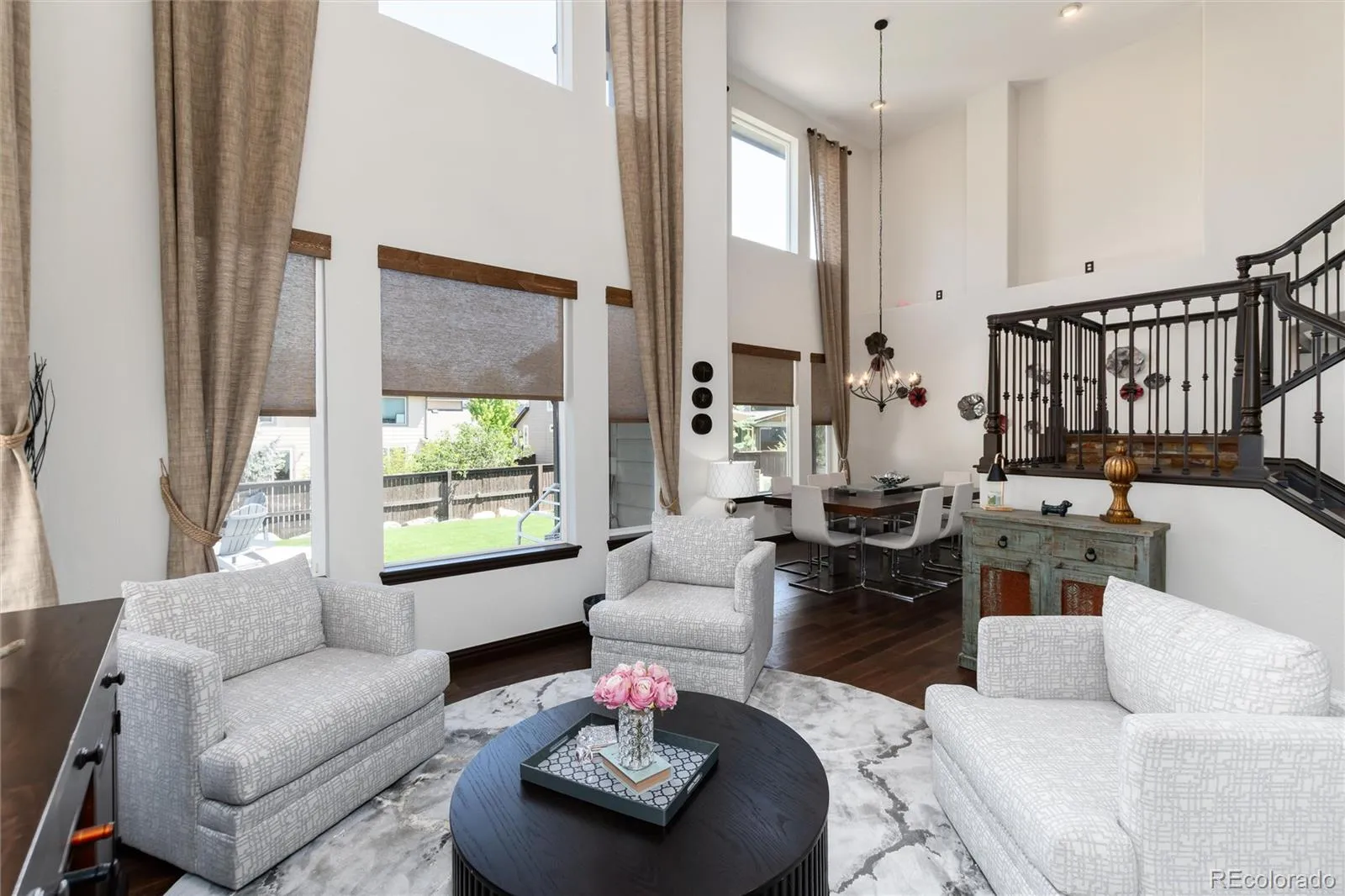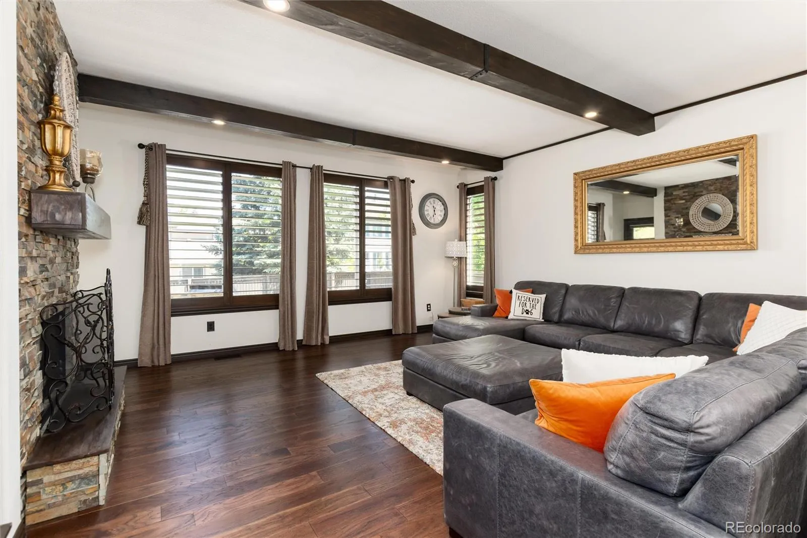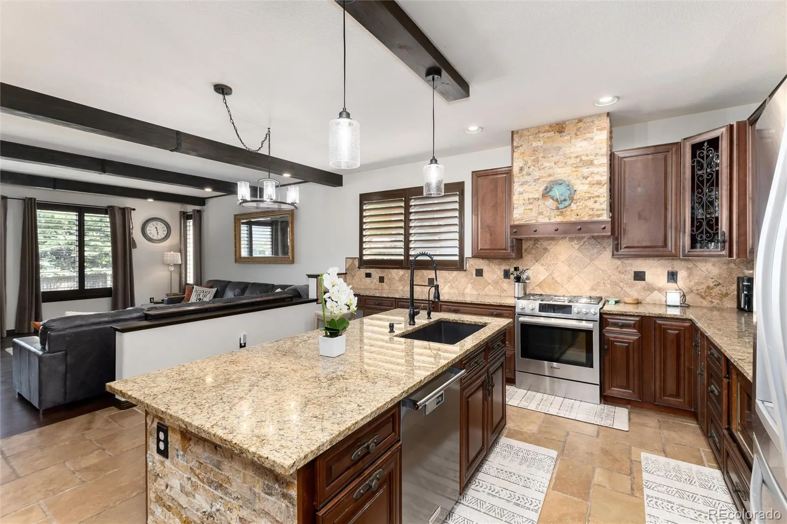 Brimming with thoughtful updates and expansive living space, this stunning 6-bedroom, 4-bath home in Kentley Hills of Highlands Ranch delivers refined comfort—complete with a brand-new A/C system (2024). The main level includes a private bedroom and full bath ideal for guests or office use, while the kitchen boasts refurbished cabinetry, a gas range, purified water system, and a full wall of pantry storage opening to a vaulted-beamed family room with a gas fireplace. Upstairs, four additional bedrooms, a loft, and an oversized primary bedroom with dual closets and a luxe 5-piece bath offer generous living. The finished basement adds a 6th bedroom, full bath, and expansive room with handsome modern finishes. Outside, professionally sodded turf, new concrete with a hot-tub pad, firepit seating and a boxed-in grill station position the home for effortless entertaining. Other highlights include a 3-car garage, smart sprinkler system, central vacuum, and HOA access to four full recreation centers (pools, gyms, courts, classes).
