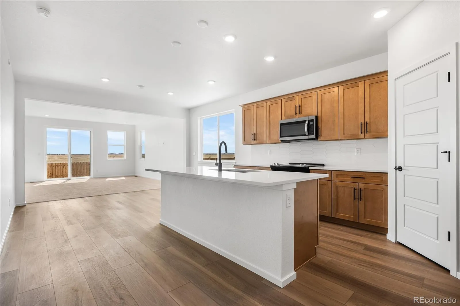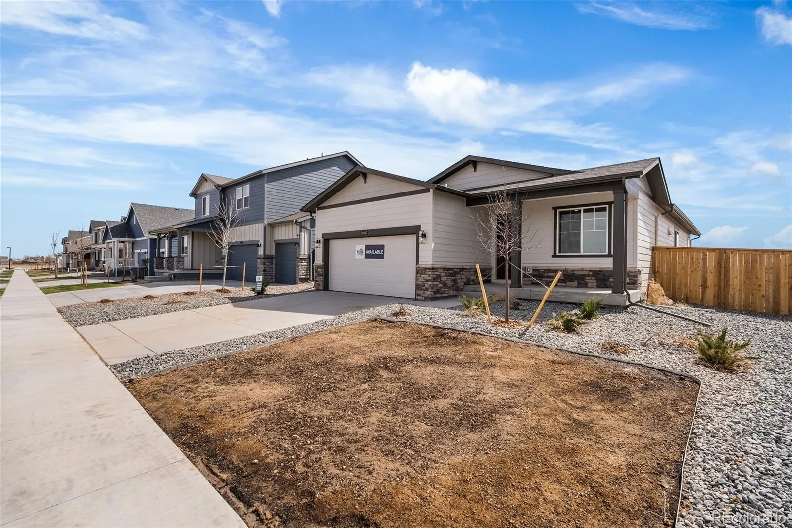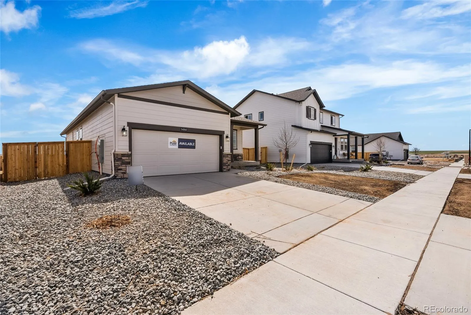 Welcome to Wolf Creek Run West, where serene rolling plains offer a peaceful retreat. Pulte Homes is proud to introduce a new collection of thoughtfully designed floorplans in this vibrant community The Hewitt II is single-story living at its finest. A charming front porch greets you while inside there is a main-floor Den, great for home office space. The open-concept layout seamlessly connects the kitchen to the café and gathering area. Two bedrooms share a full bath that is tucked away for quiet and privacy. The primary suite is ample in size while the owner’s bath hosts a shower enclosure and dual sinks. Wolf Creek Run West features a community park with a playground, baseball diamond, and sports fields. Nearby Barr Lake State Park offers abundant outdoor recreation. With easy access to I-70, Denver International Airport, and the East Denver Metro area, this location combines tranquility with connectivity.