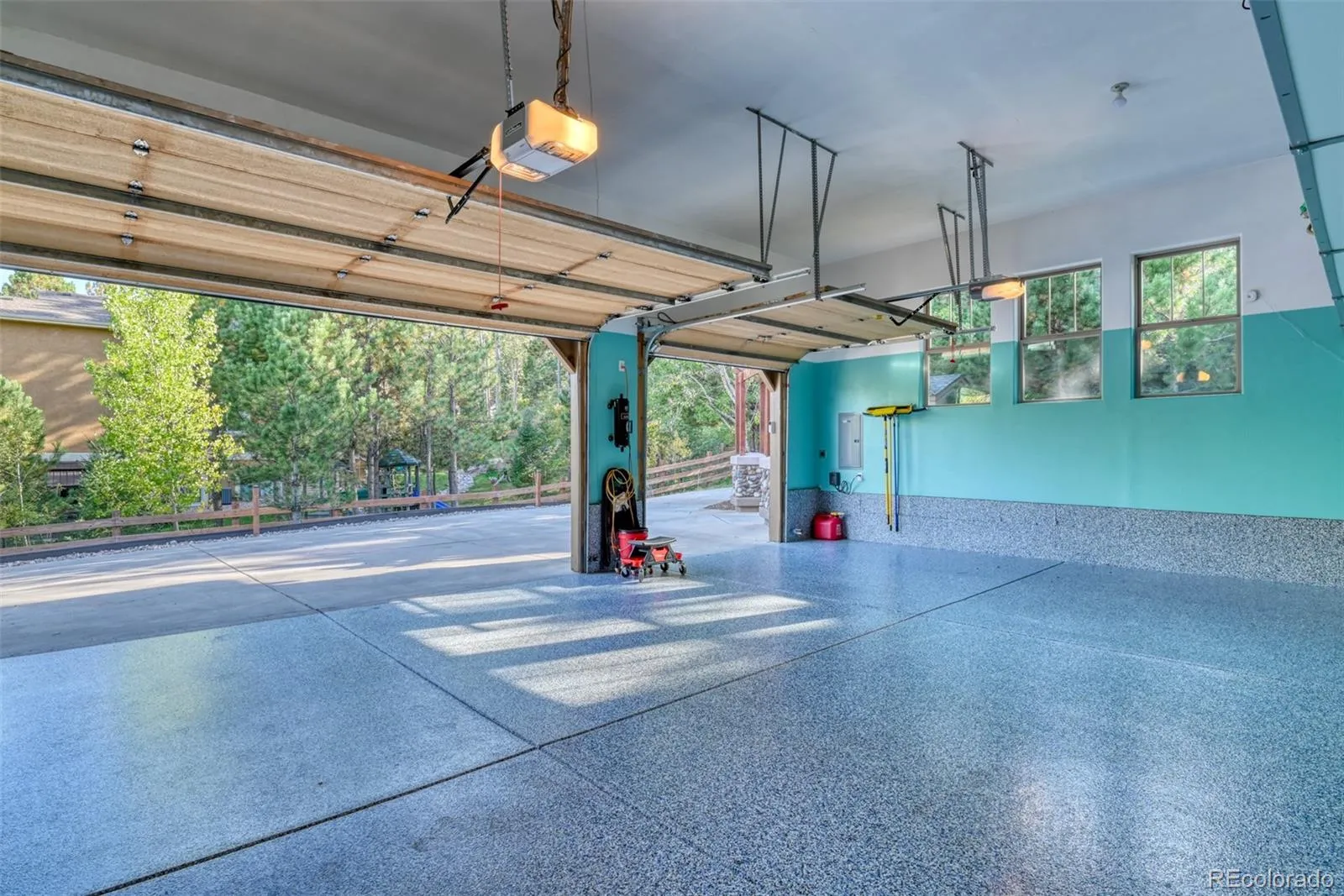 Outdoor living spaces include a huge composite deck (2016) w/ private, tree-filled views of Bald Mountain, hookup for a grill, lower level covered patio, firepit on front porch, and custom storage shed. Oversized 3-car garage features epoxy flooring, shelving, storage cabinet, Wi-Fi-enabled openers, and natural light. Upgrades include a new roof (2024 with transferable warranty), radon mitigation system, and central air (2019), invisible fence for pets