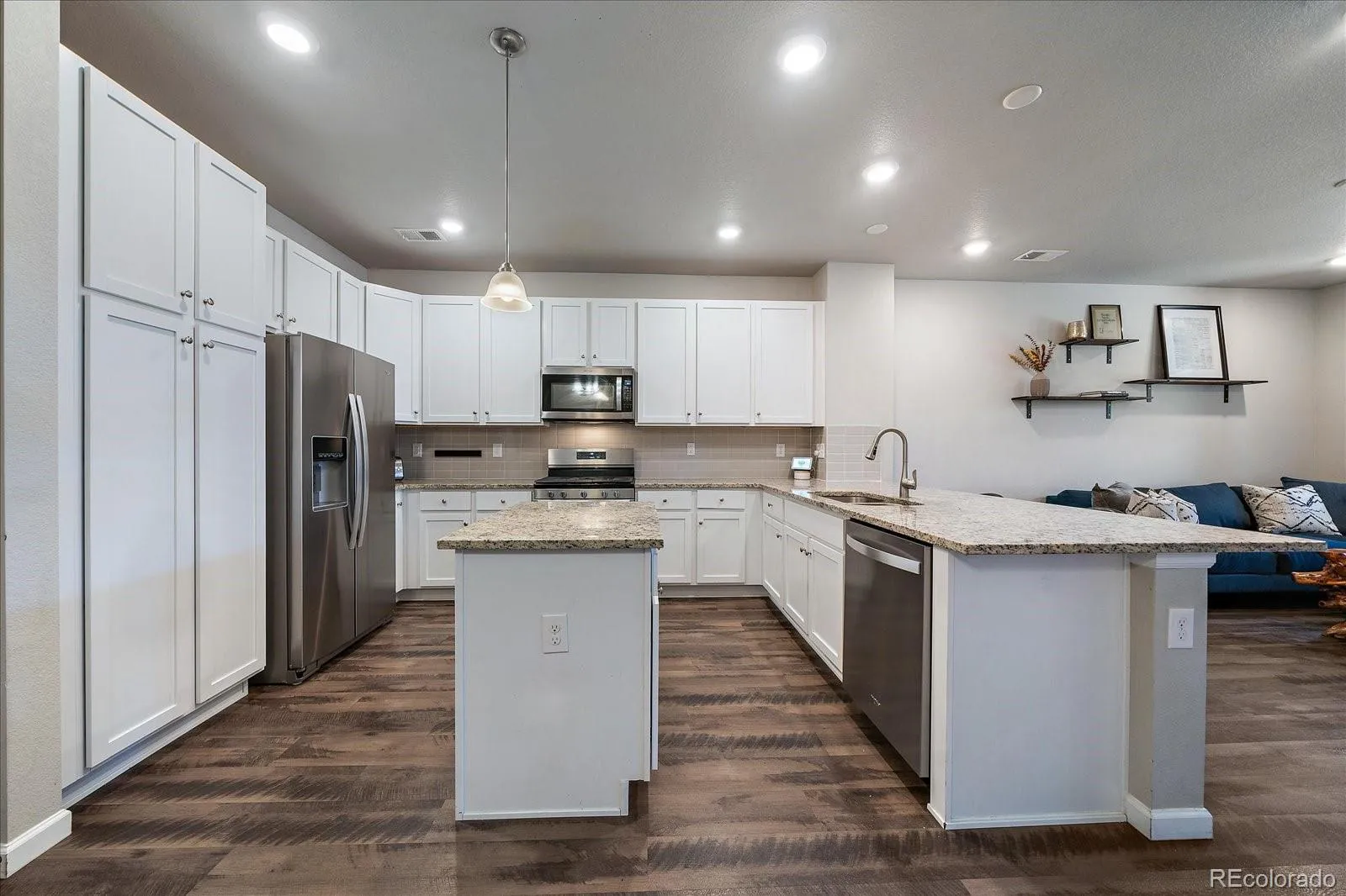 Don’t miss this “like-new” luxury townhome in highly sought-after Belleview Place! This stylish 2-story offers a bright, open floor plan perfect for modern living. The spacious family room with sleek linear fireplace flows seamlessly into a true chef’s kitchen featuring stainless appliances, gas range, 42-inch white cabinetry, oversized granite island, pantry, and adjoining dining area.