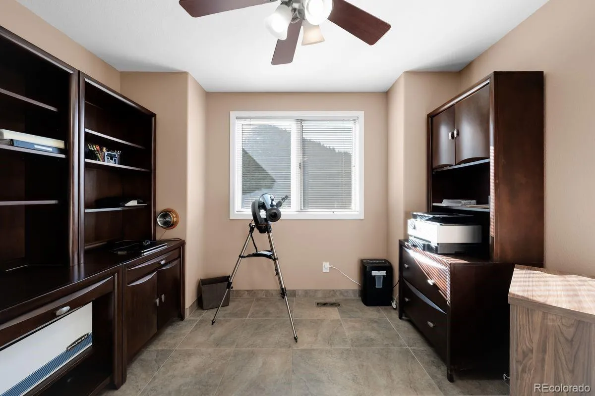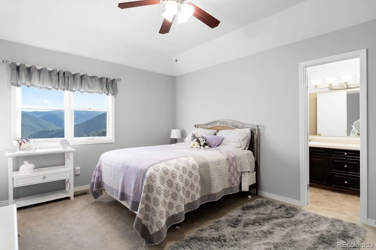 Nestled on 35 pristine acres adjacent to Pike National Forest, this residence offers a rare blend of privacy, views, and timeless design. The main level is anchored by a welcoming living room with heated tile floors and a gas fireplace, seamlessly connected to the kitchen. A sitting room provides an additional retreat, while the formal dining room, powder room, and office with French doors enhance the thoughtful layout. The main level also features a laundry room with sink and access to the deck.