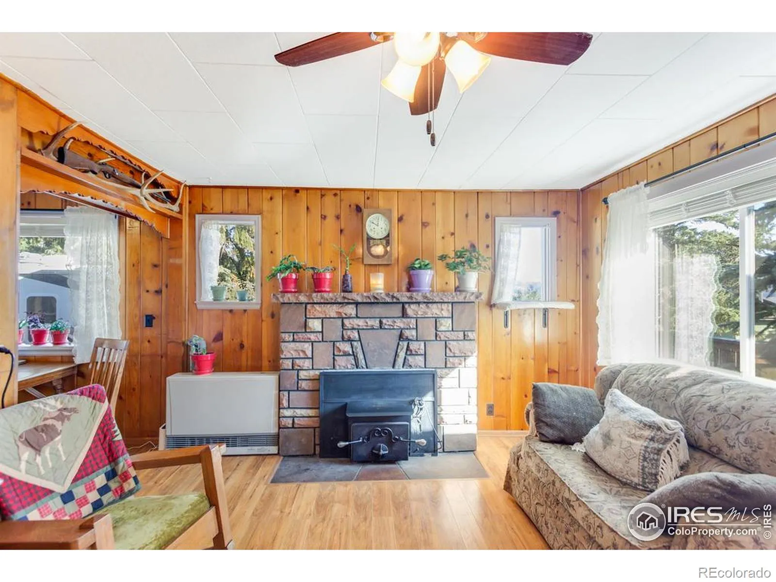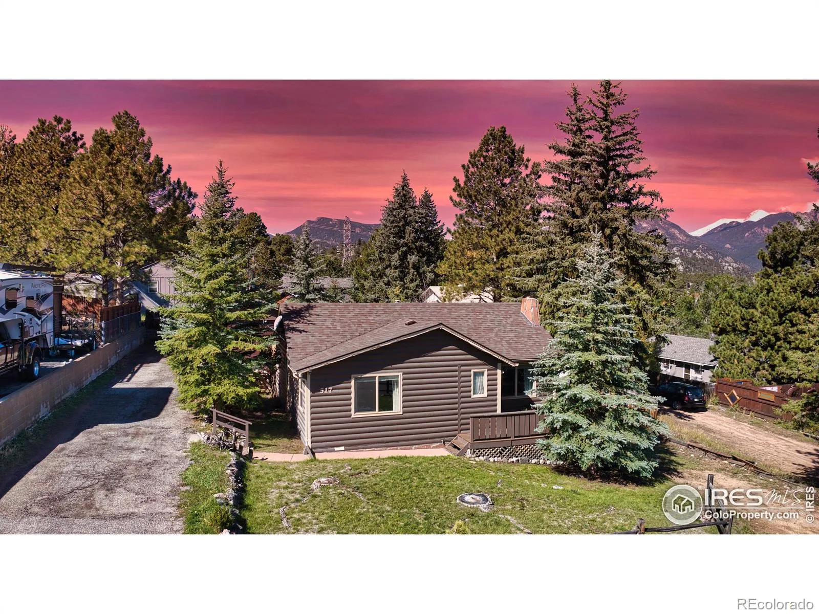 Charming mountain retreat just minutes from downtown Estes Park. This well-cared-for home offers the perfect blend of comfort, function, and Colorado lifestyle, with thoughtful spaces inside and out for family living and entertaining. Step into a warm and inviting living area with wood-paneled walls, natural light, and cozy gathering spaces that flow easily into the dining room and kitchen. The galley-style kitchen features ample counter space, modern appliances, and efficient design, connecting seamlessly to a spacious laundry and mudroom for everyday convenience. Two comfortable bedrooms and a full bath provide restful retreats, while the flexible floor plan makes it easy to adapt to your lifestyle. Outside, enjoy mountain views from the deck, evenings around the firepit, or gardening in the fenced yard. The oversized detached garage and additional shed offer excellent storage for vehicles, tools, or outdoor gear. With extra parking for an RV or trailer, this property is designed for adventure seekers and those who value space to spread out. Surrounded by mature trees and framed by mountain peaks, the setting is private yet connected, offering a rare opportunity to enjoy small-town living with big mountain views. Whether as a year-round home, vacation retreat, or investment property, this is a true Estes Park gem.