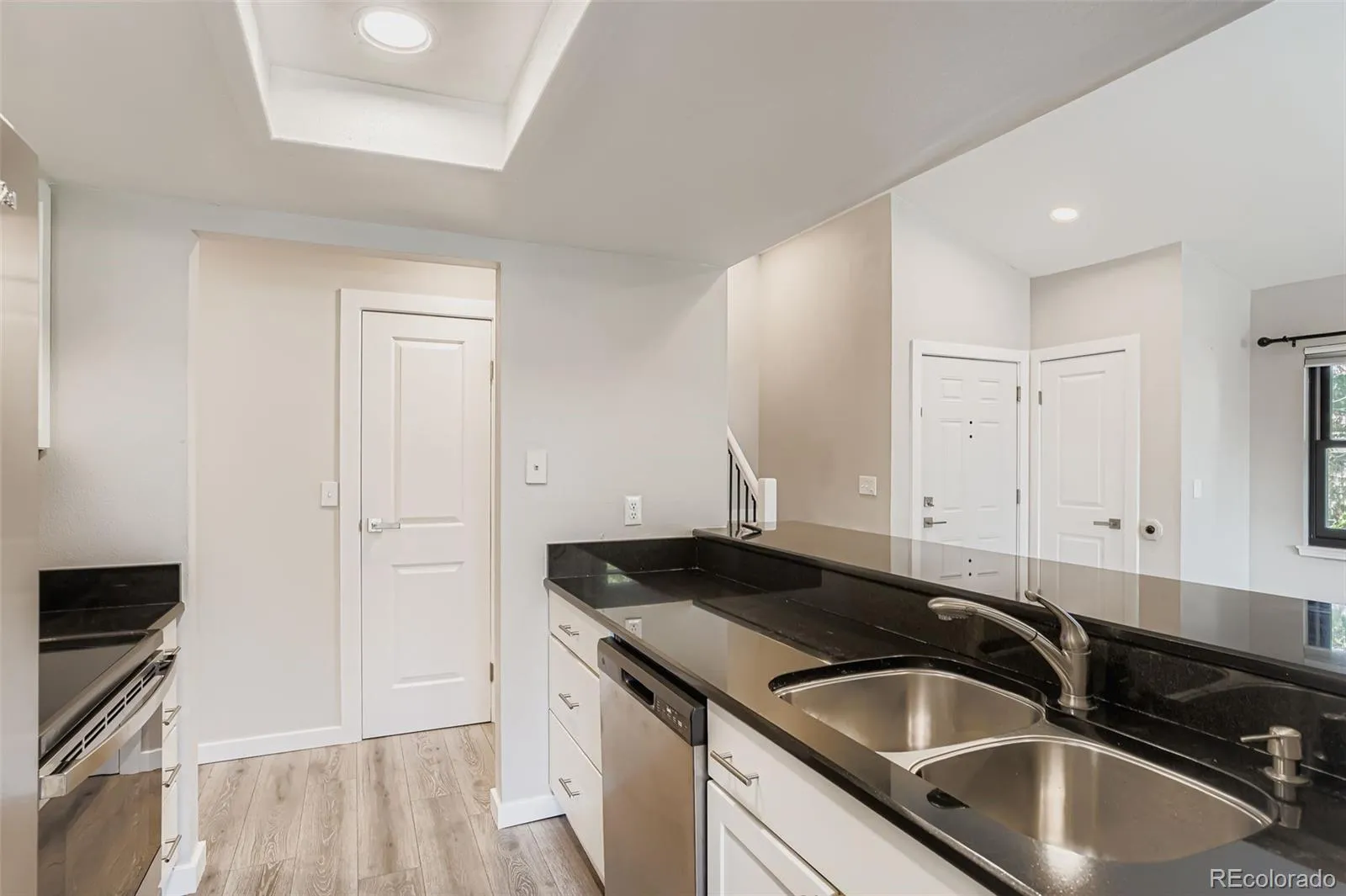 Beautifully updated and move-in ready, this two-story condo has been fully remodeled with top-of-the-line upgrades throughout. Every detail has been thoughtfully designed, including Anderson windows and Anderson balcony sliding doors, a brand buyers recognize for exceptional quality and value. The home features soaring vaulted ceilings and a bright, open layout with luxury vinyl plank flooring, a spacious living room with a cozy wood-burning fireplace, and a dining area filled with natural light. The kitchen is a showpiece with quartz countertops, stainless steel appliances, custom cabinetry, a designer backsplash, and a breakfast bar perfect for entertaining. A walk-in pantry is tucked under the staircase for added storage.