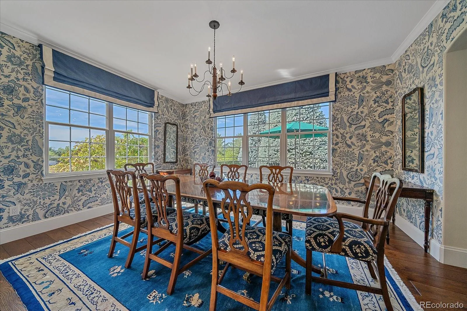 The open, airy floor plan is bathed in natural light and showcases an oversized chef’s kitchen with 42-inch cabinetry, slab granite counters, stainless appliances, & a generous center island. The kitchen flows seamlessly into the vaulted family room with a cozy gas fireplace & sliding doors that open to an expanded Trex deck—the perfect spot to relax or entertain while overlooking the serene pond, greenbelt, & the majestic pines of Cherry Hills with mountain views beyond.